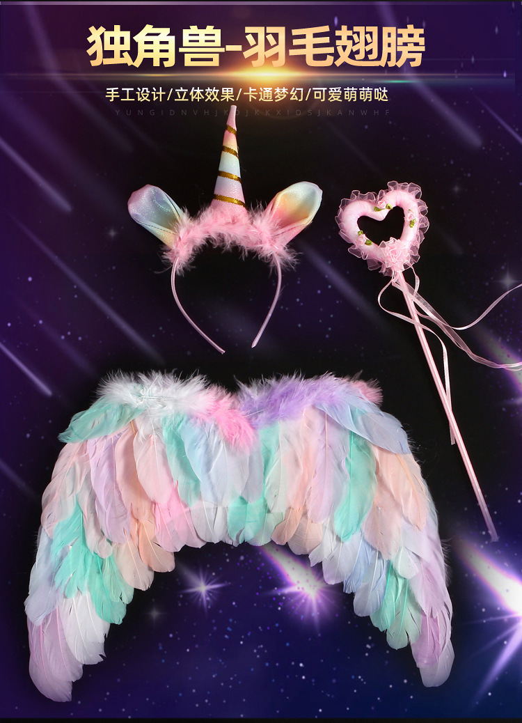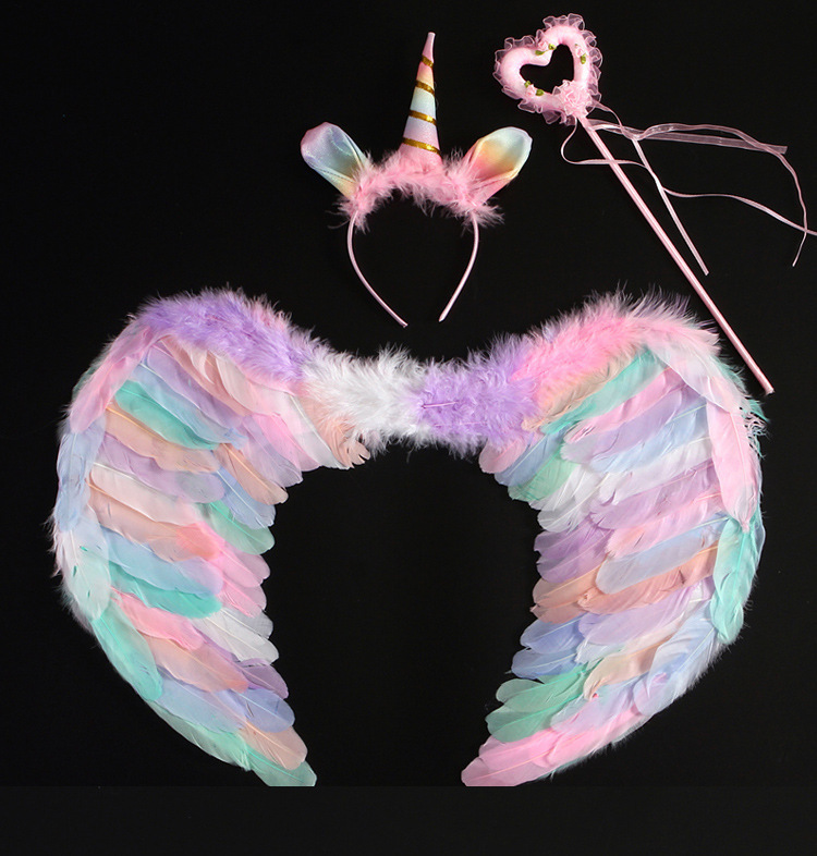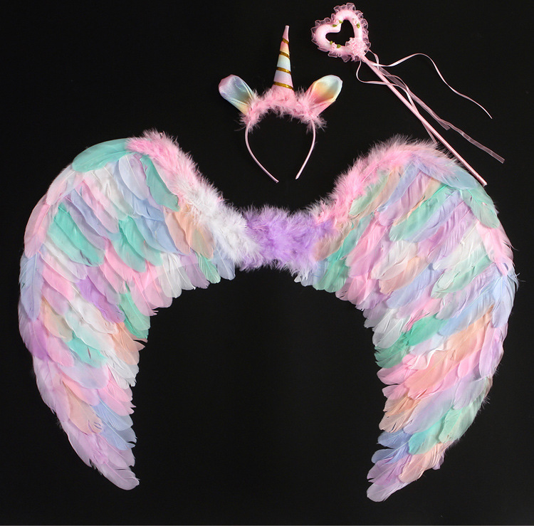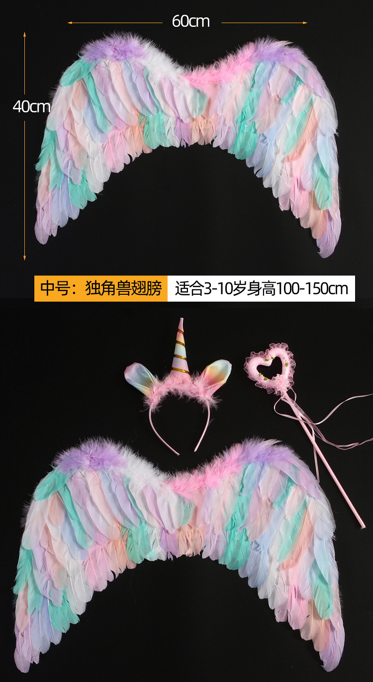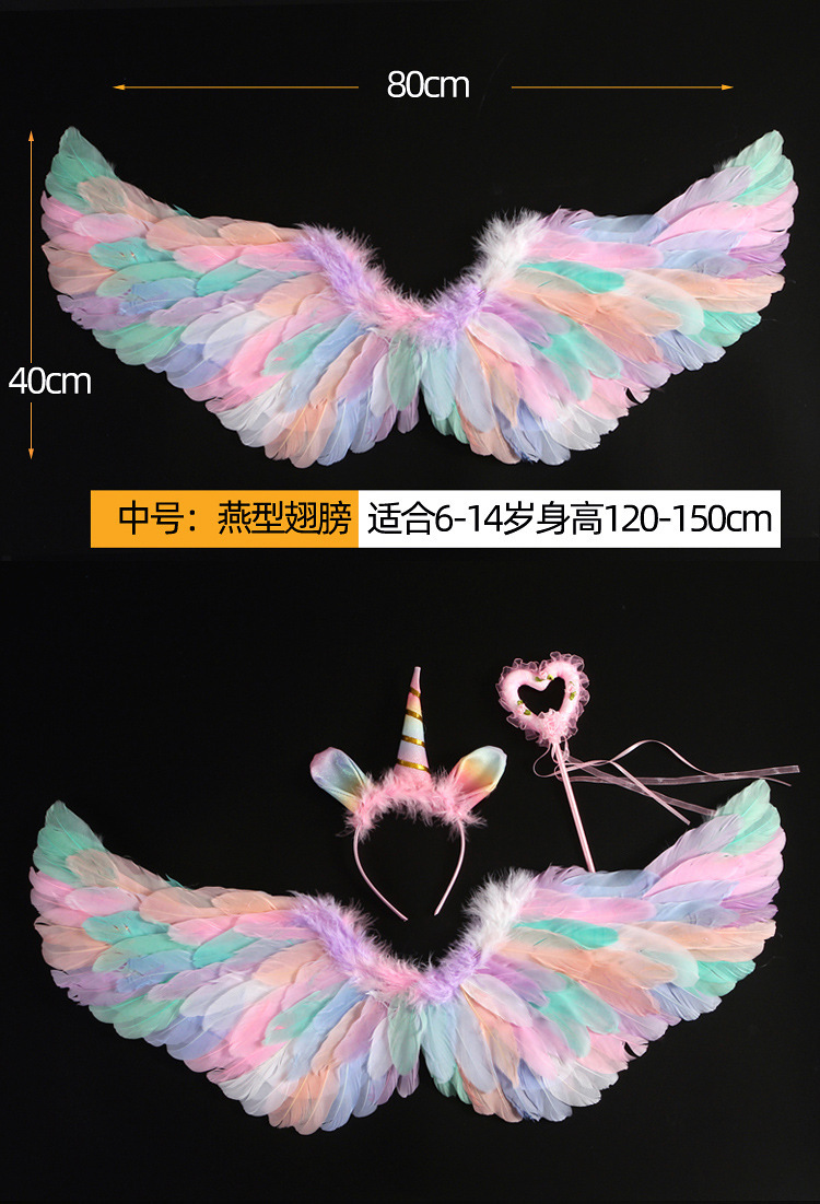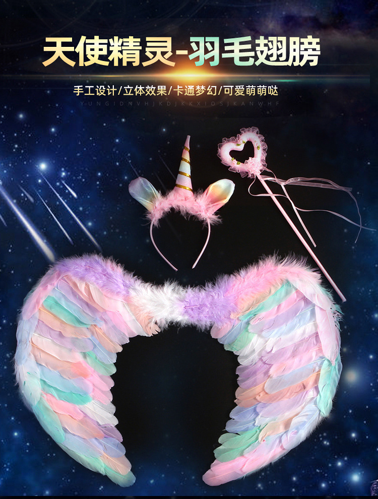 批发彩色天使羽毛翅膀成人儿童装扮精灵仙子六一万圣节舞台道具