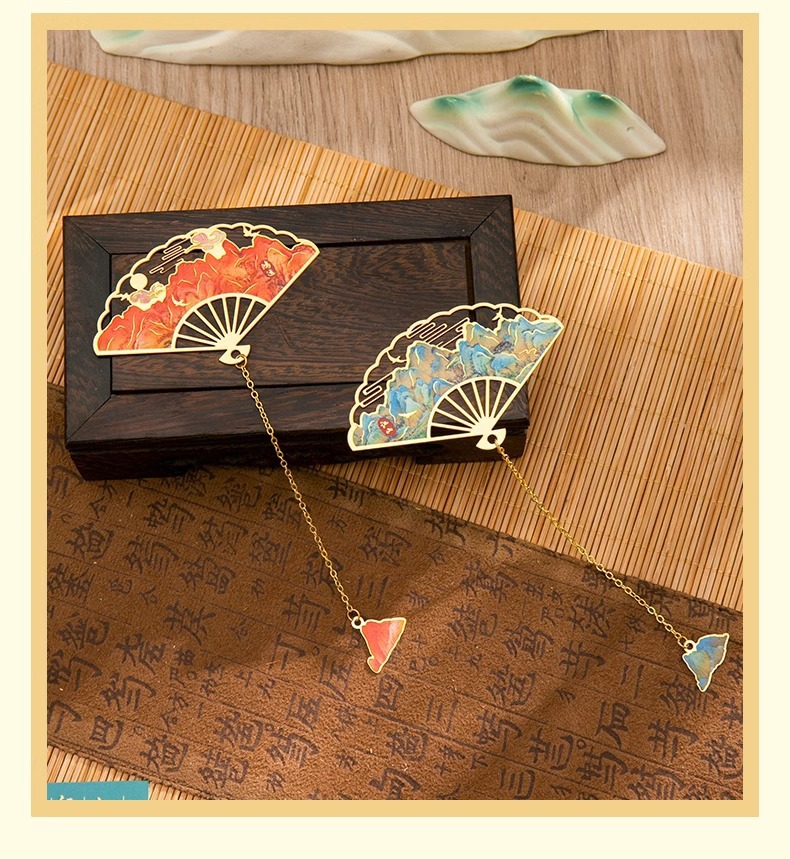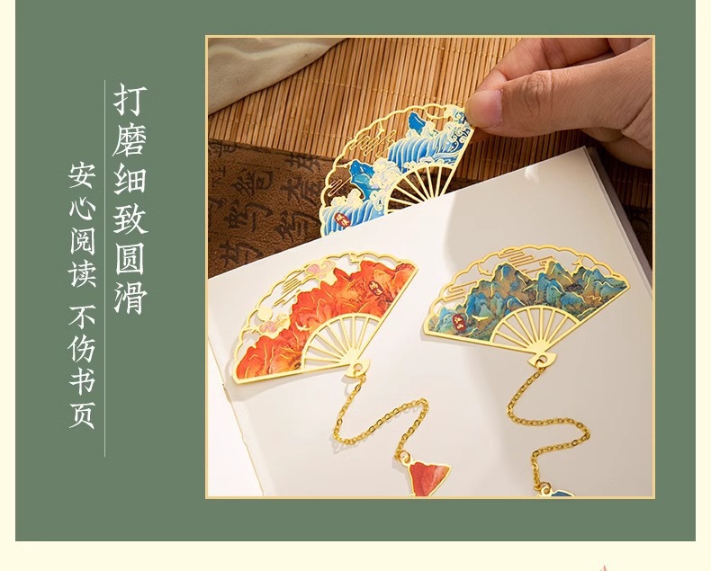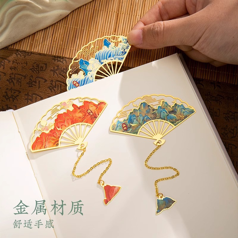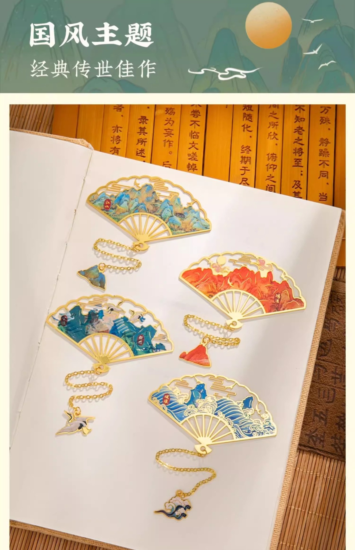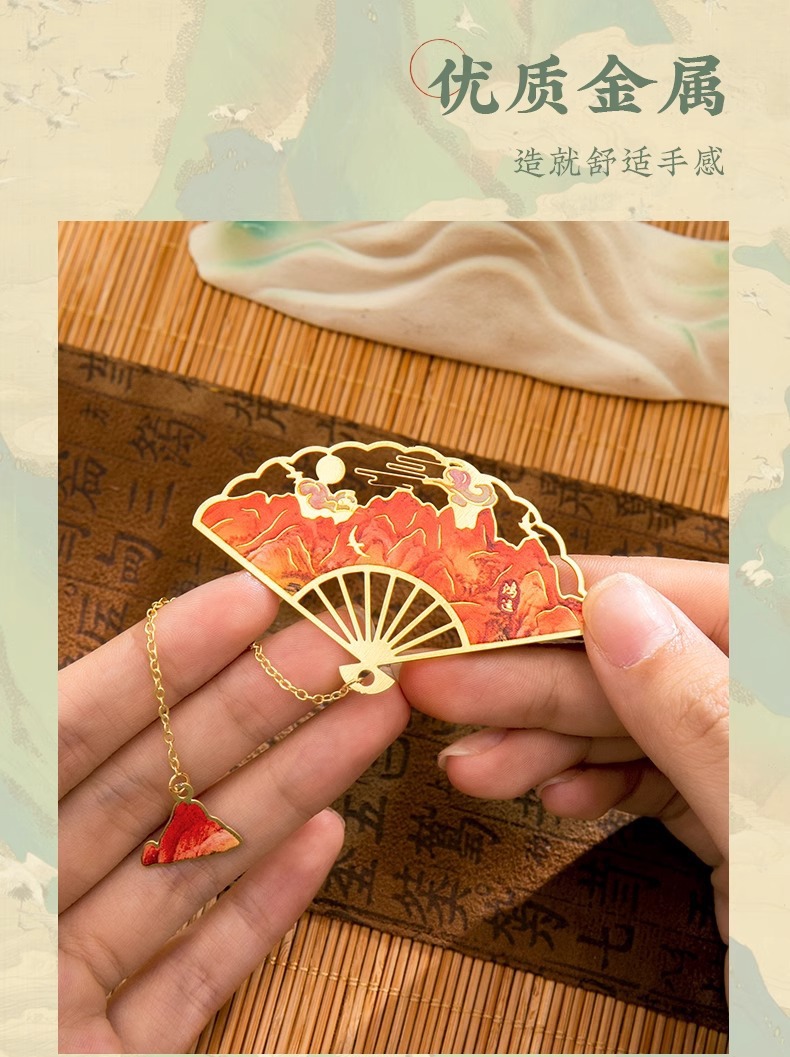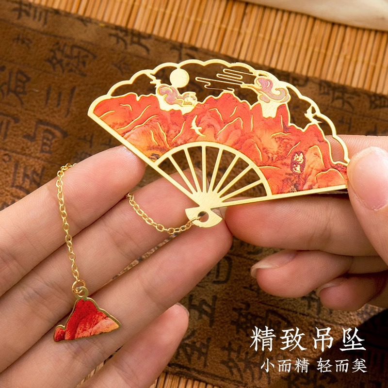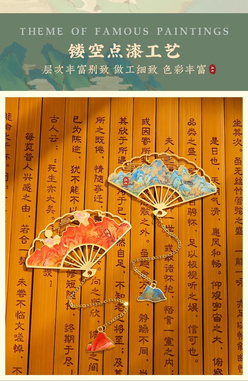 千里江山图金属镂空书签古典国风扇子黄铜纪念品书签精致学生礼物