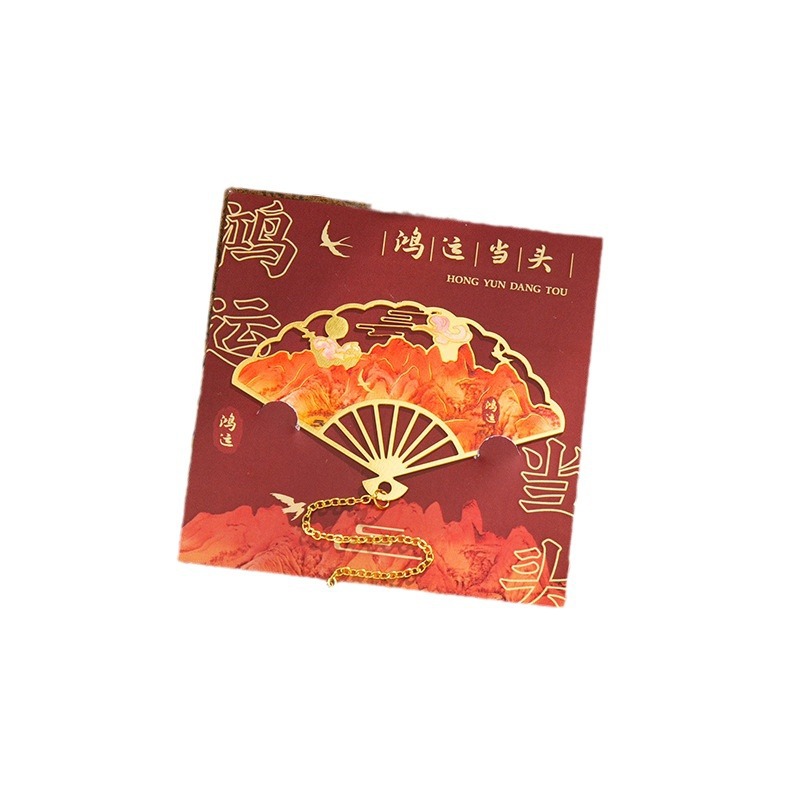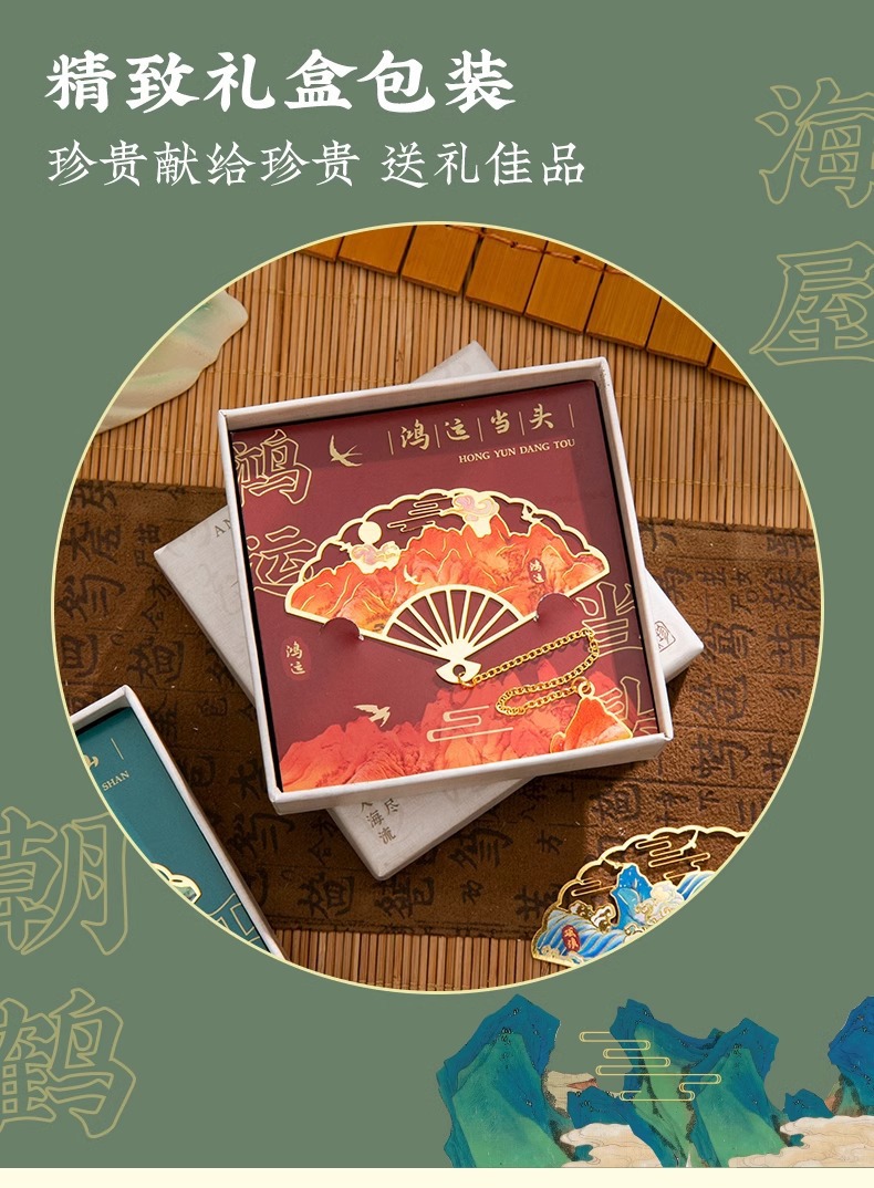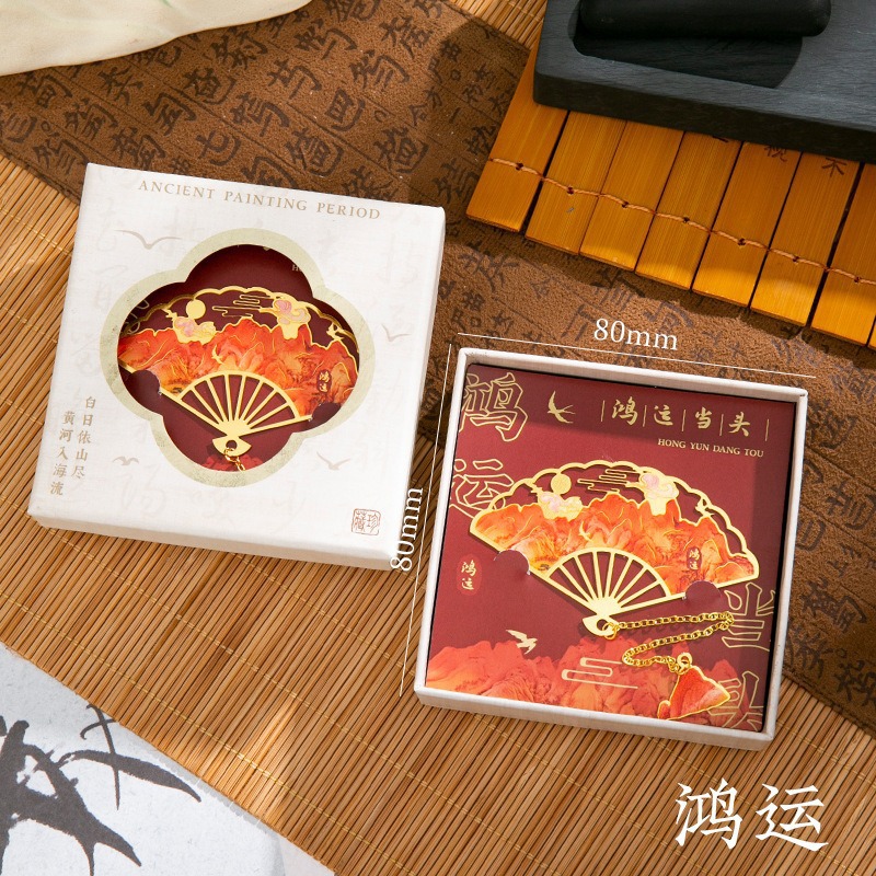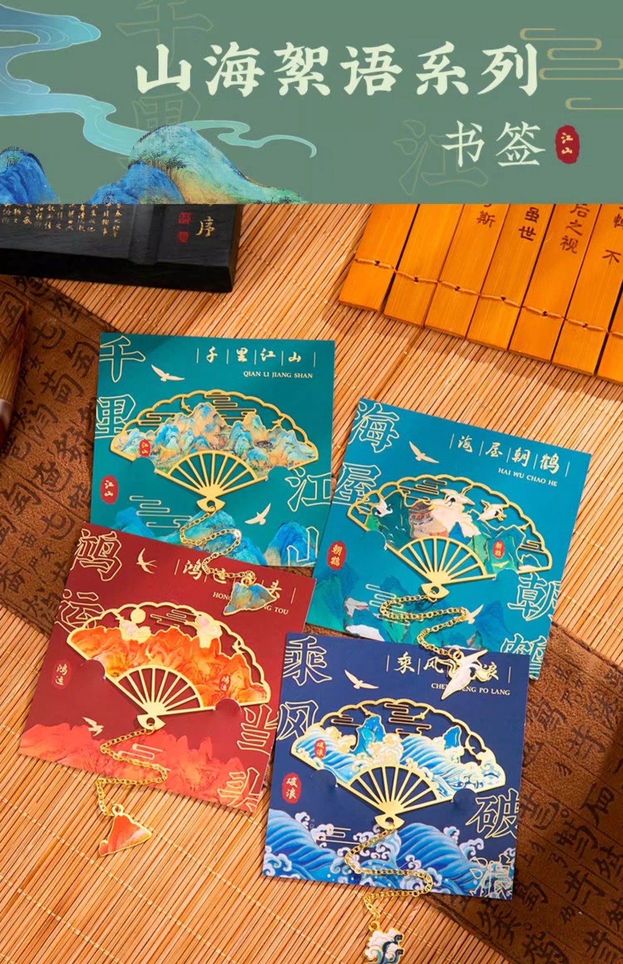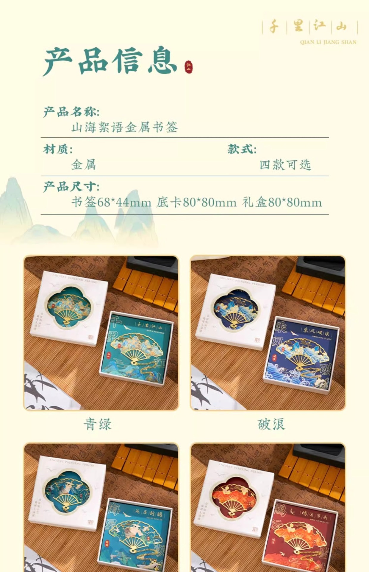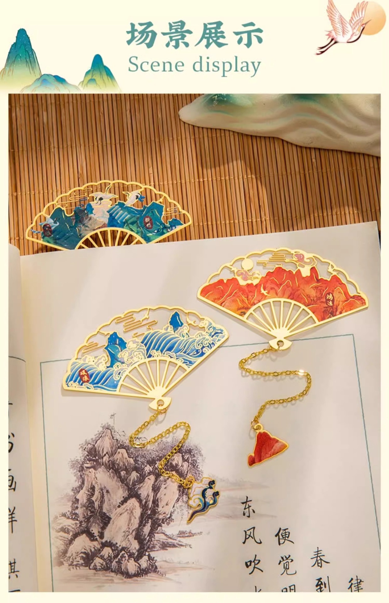 千里江山图金属镂空书签古典国风扇子黄铜纪念品书签精致学生礼物