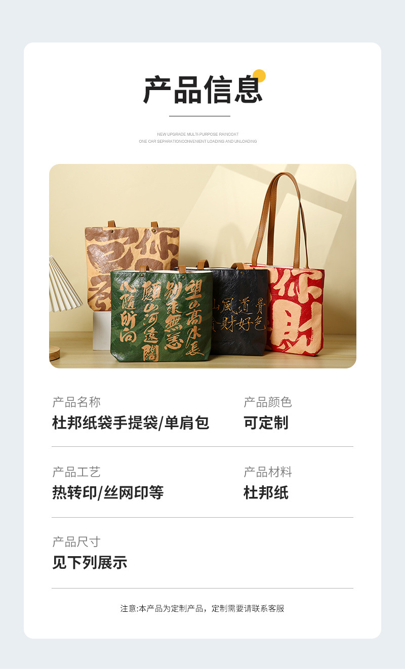 杜邦纸袋定制可水洗耐撕单肩复古手提杜邦纸包你发财礼品购物袋