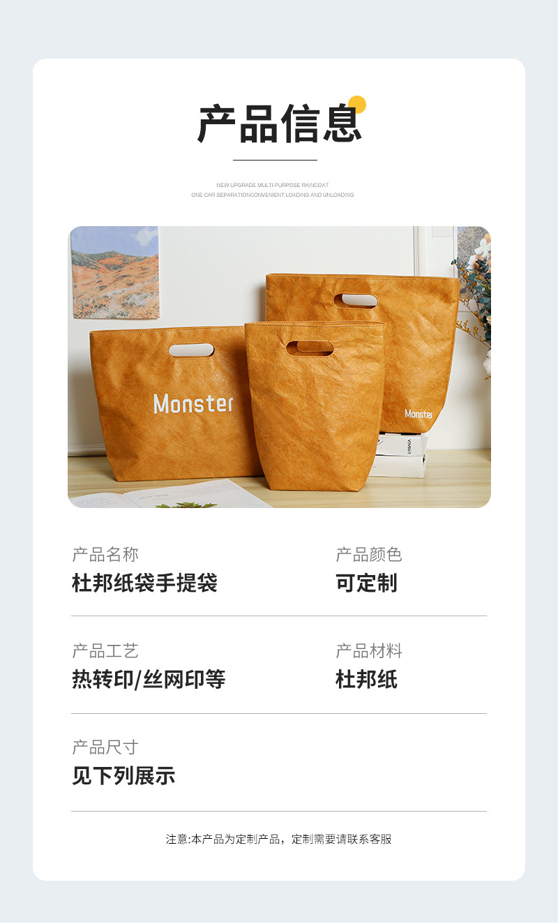 杜邦纸袋复古牛皮纸袋日常手提袋印刷LOGO大容量斜挎牛皮杜邦纸包