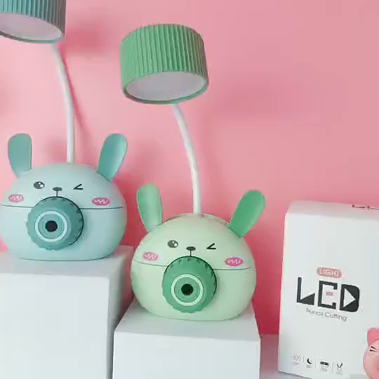 新款卡通带卷笔刀笔筒小台灯带小夜灯桌面学生学习LED灯创意便携