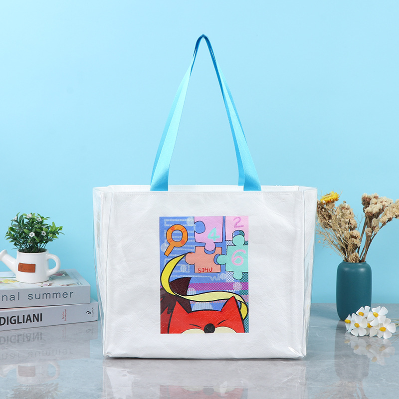 pvc杜邦纸袋批发水洗耐撕复合牛皮纸包装广告购物单肩手提袋纸袋