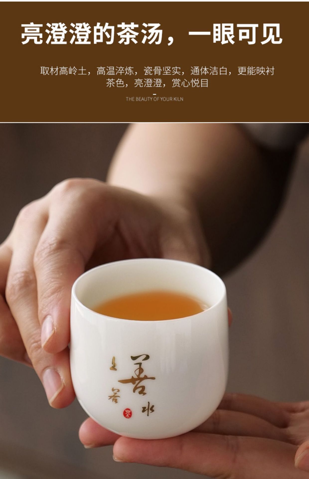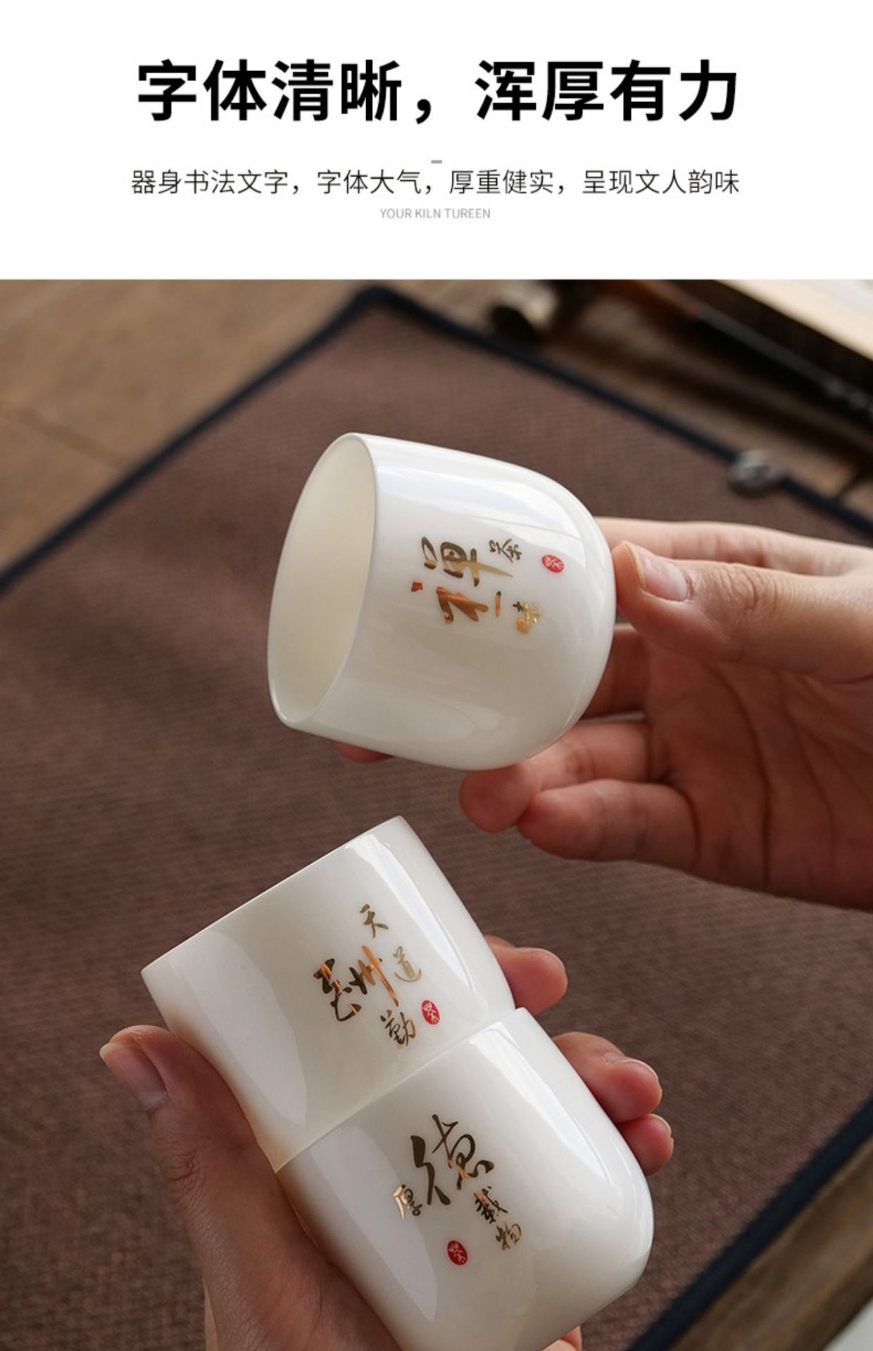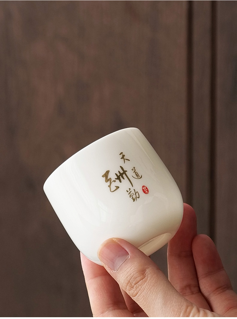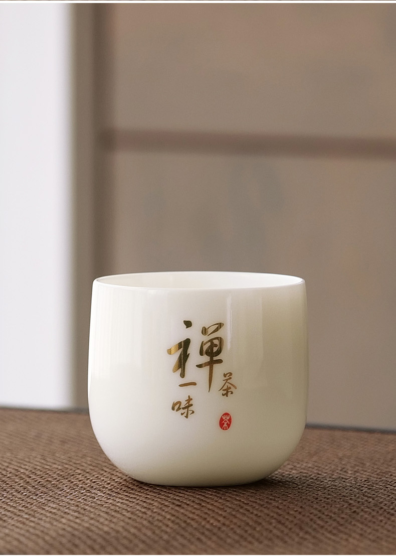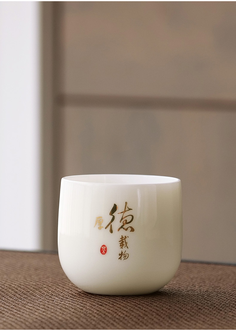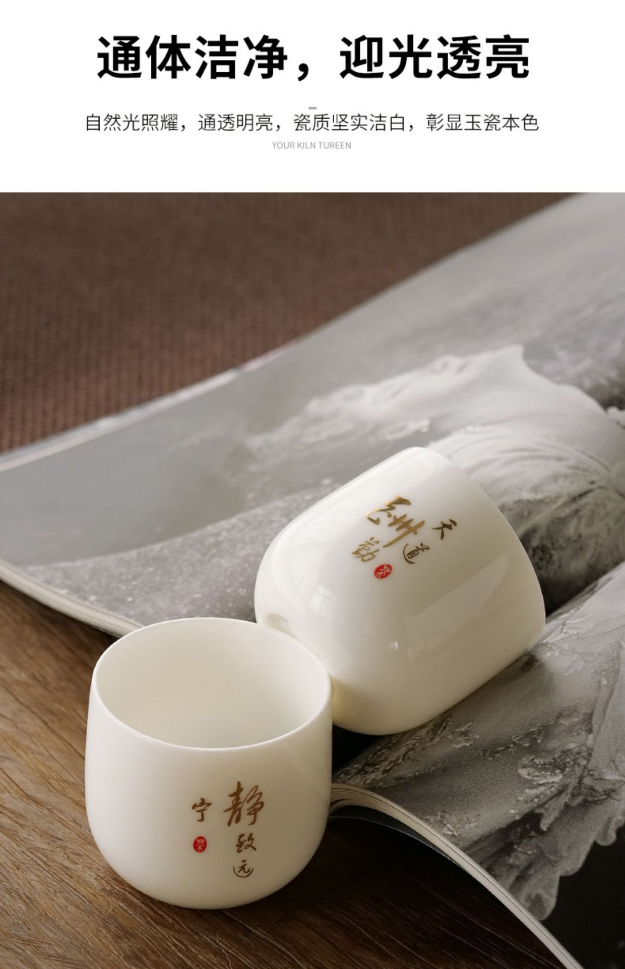 德化羊脂玉瓷品茗杯家用简约茶杯套装功夫茶具白瓷主人杯书法茶盏