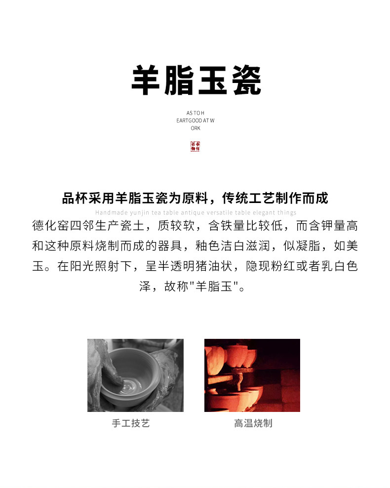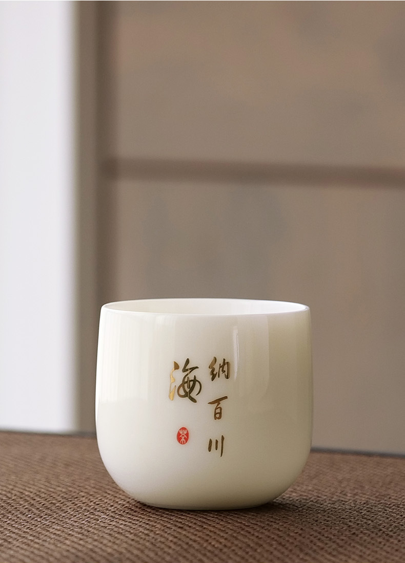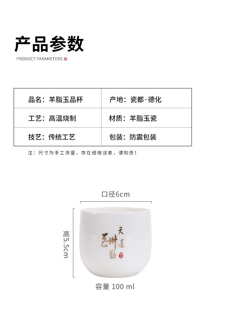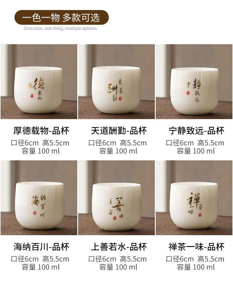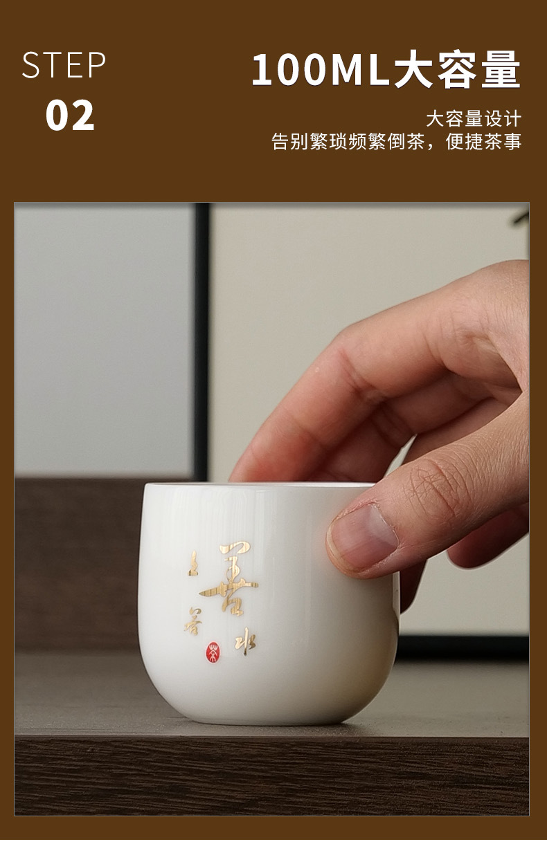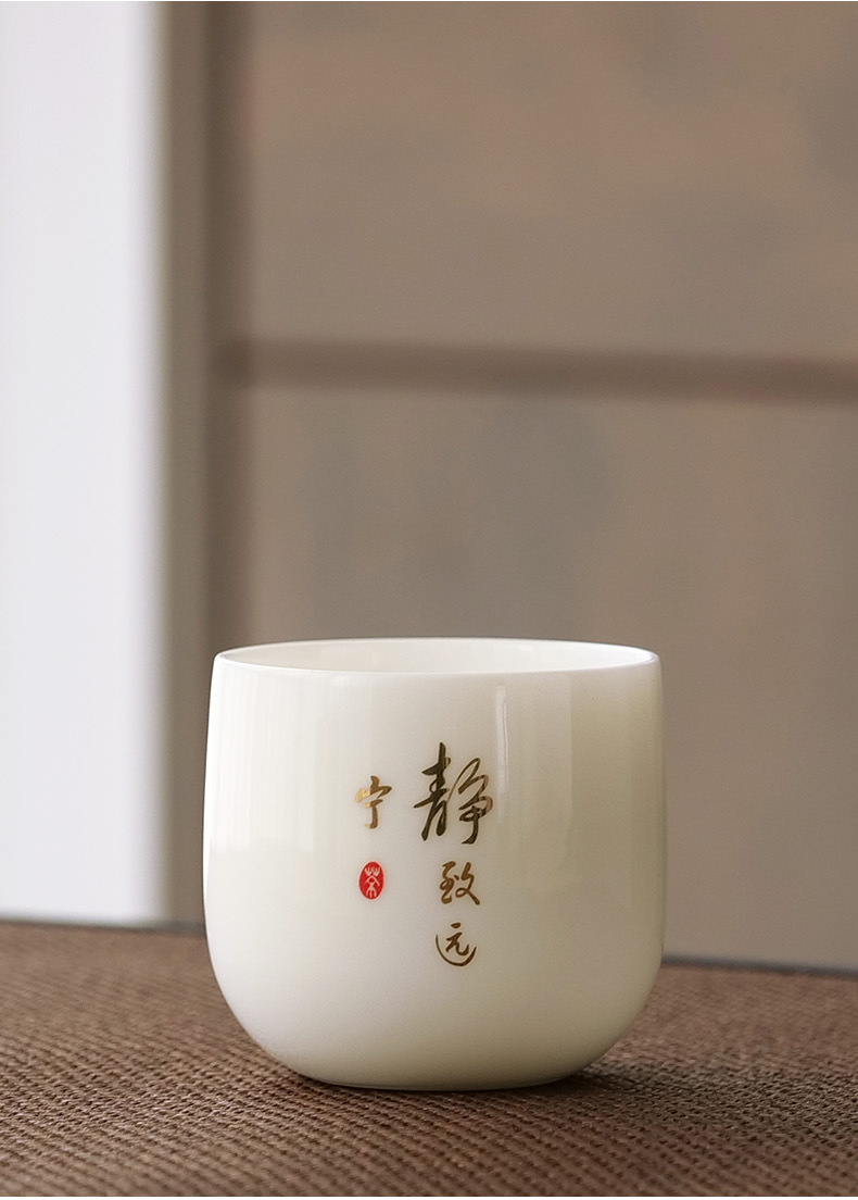 德化羊脂玉瓷品茗杯家用简约茶杯套装功夫茶具白瓷主人杯书法茶盏