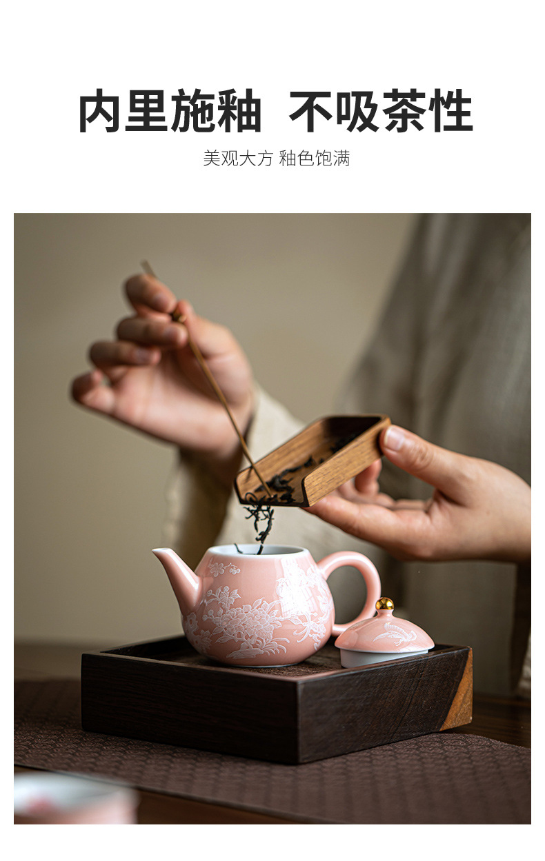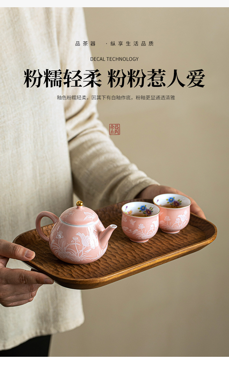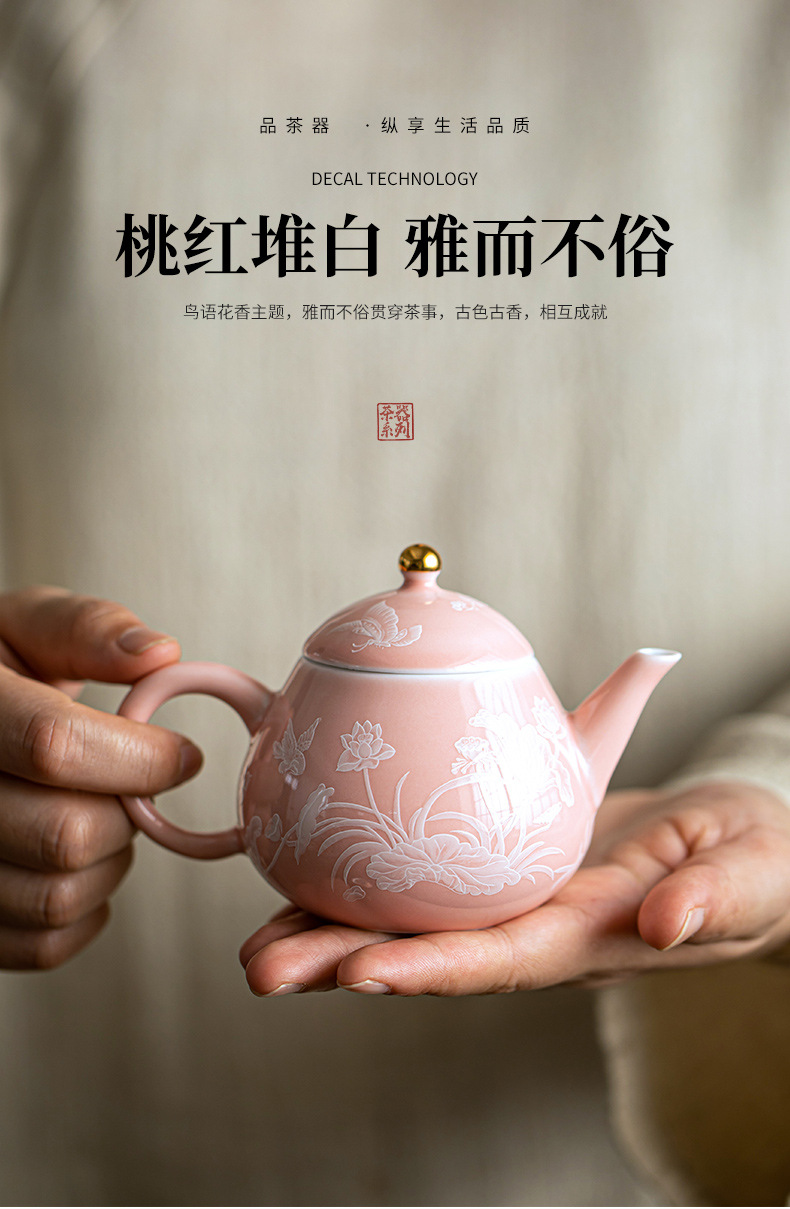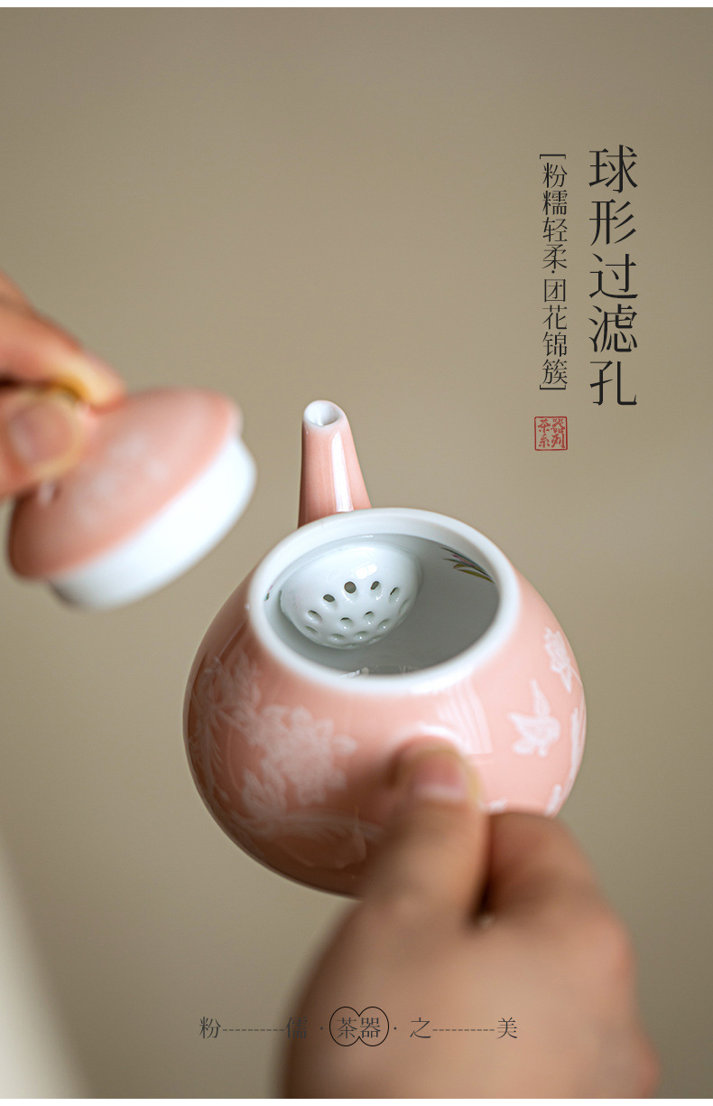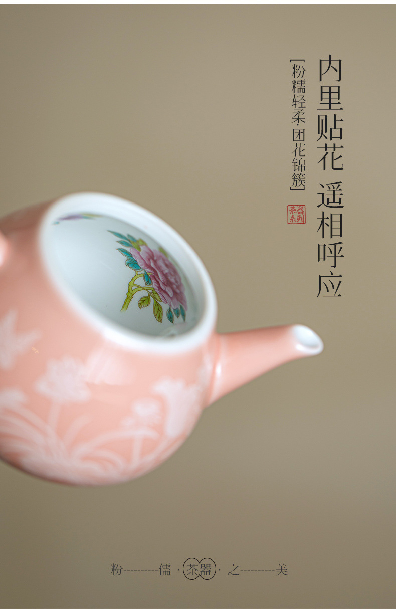 白瓷锦上添花龙蛋壶粉色带内绘茶壶茶杯 家用陶瓷功夫茶具 泡茶壶