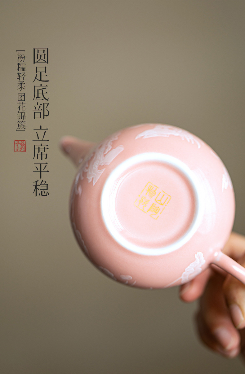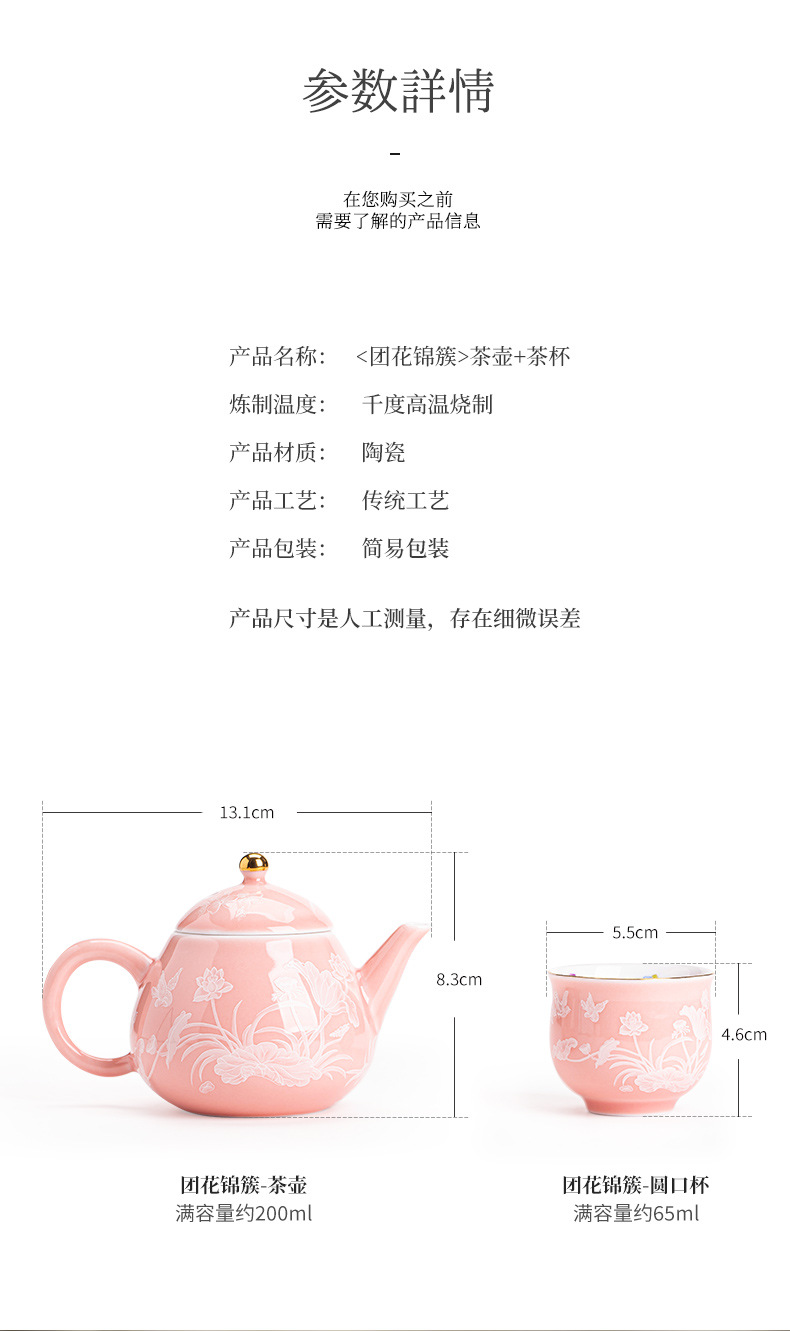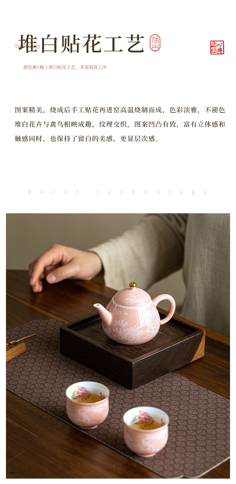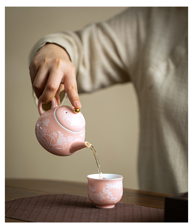 白瓷锦上添花龙蛋壶粉色带内绘茶壶茶杯 家用陶瓷功夫茶具 泡茶壶