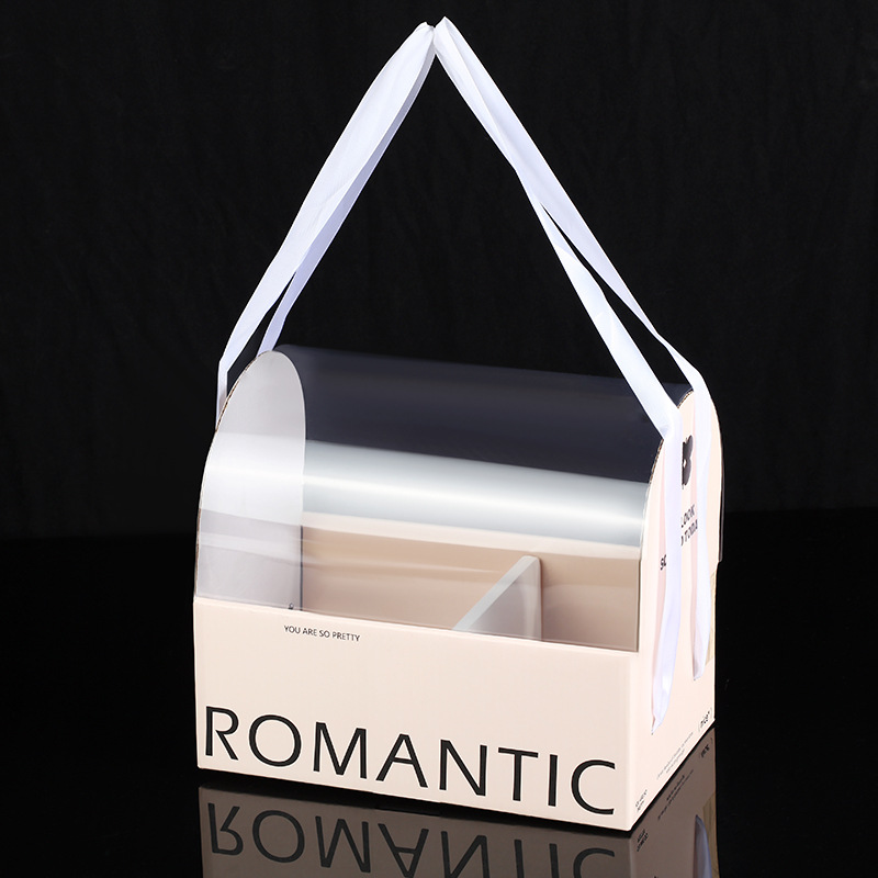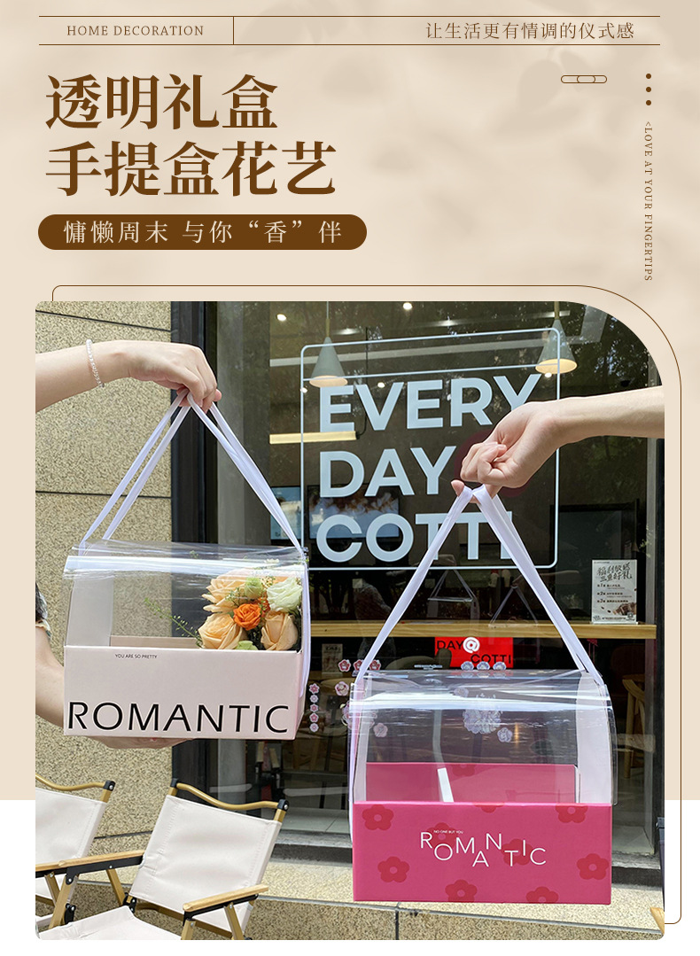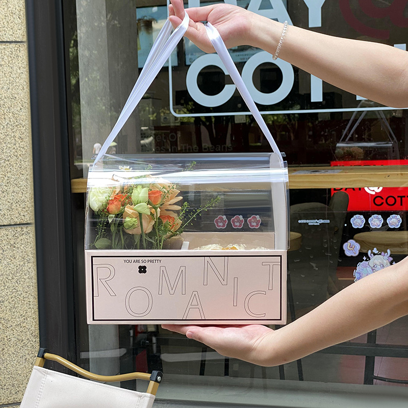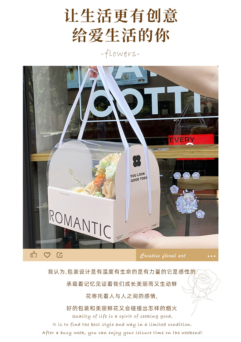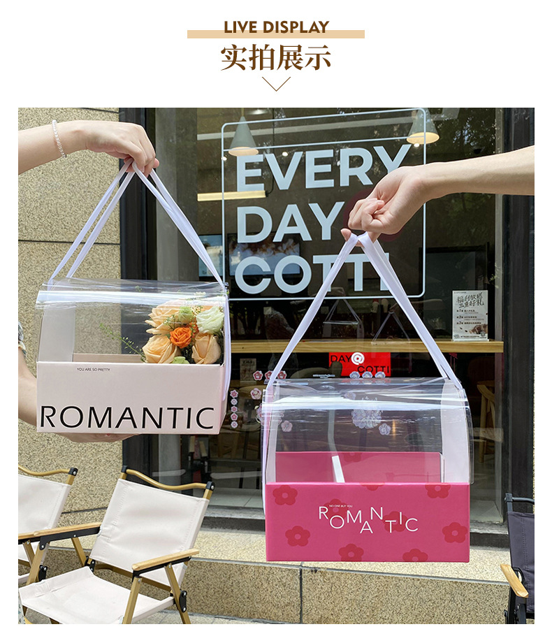 情人节私家花园玫瑰礼盒手提鲜花蛋糕盒PVC折叠花盒花艺包装空盒