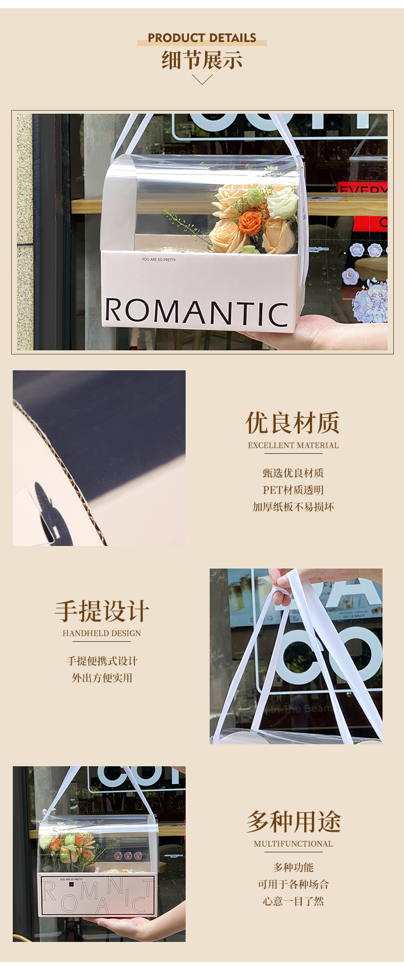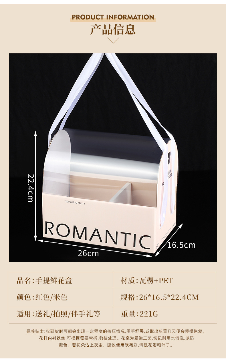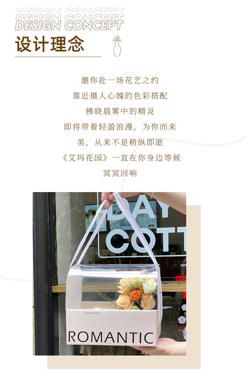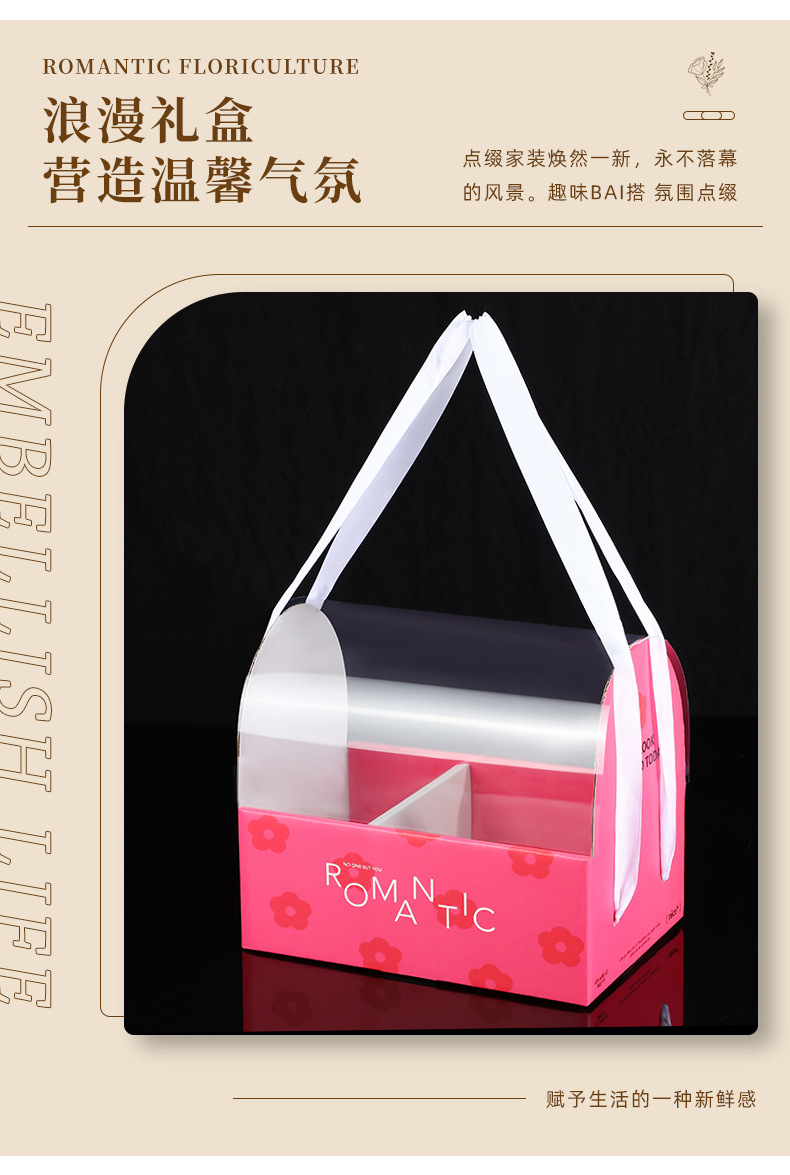 情人节私家花园玫瑰礼盒手提鲜花蛋糕盒PVC折叠花盒花艺包装空盒