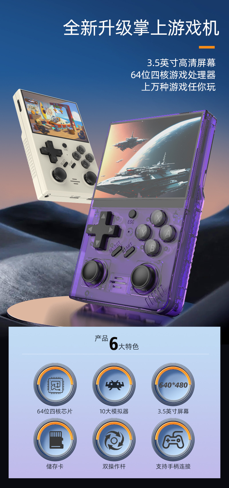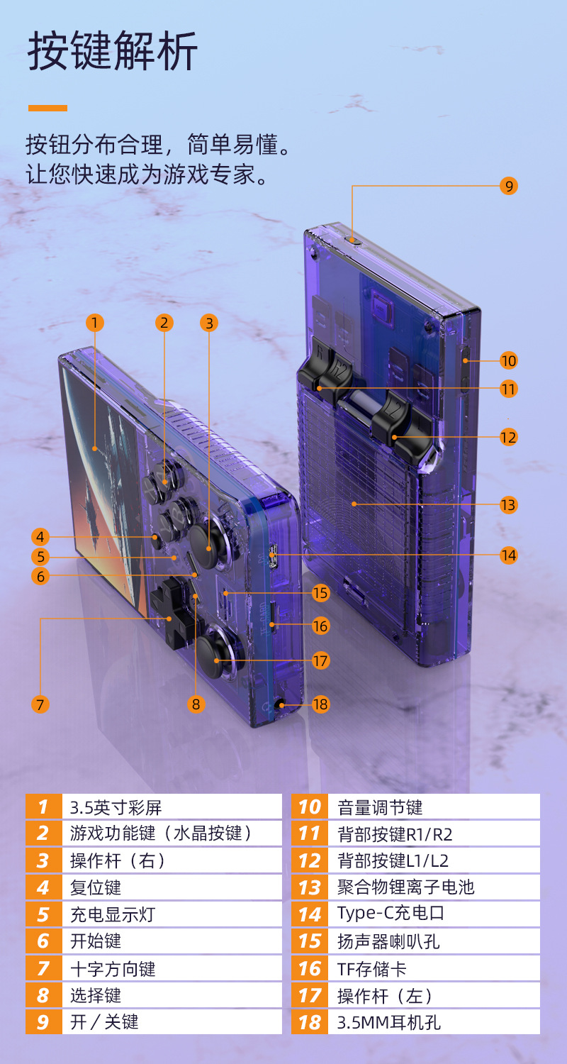 新款游戏机linux系统跨境GBA摇杆街机游戏复古怀旧掌机便携式迷你