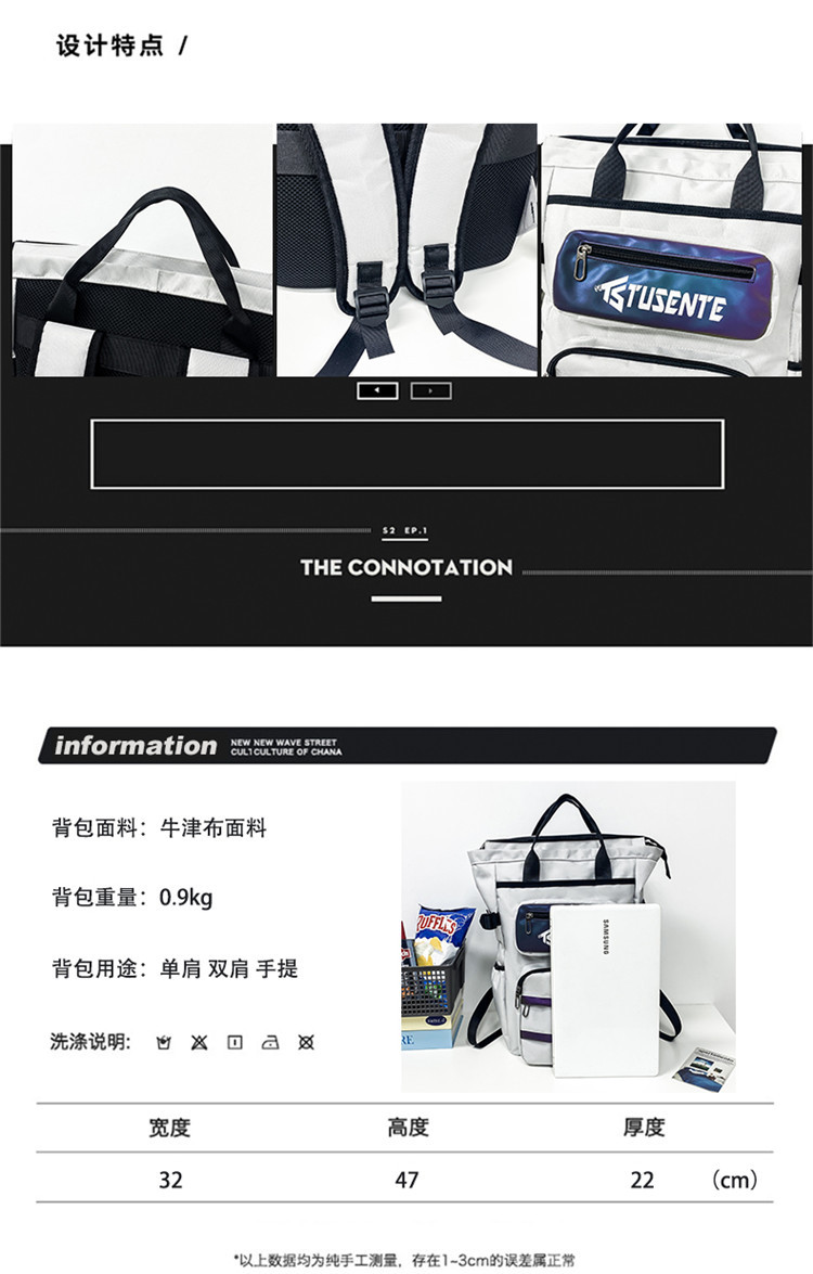 新款时尚潮酷男士双肩包旅游度假行李包高品质大学生书包
