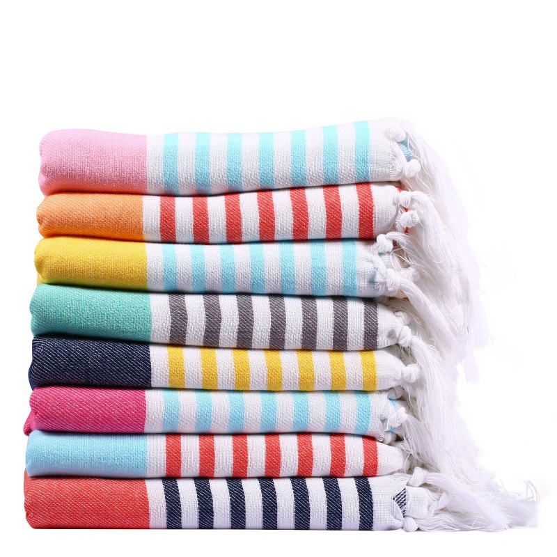 厂家现货土耳其沙滩浴巾跨境流苏沙滩巾条纹全棉 8色可选 100X180