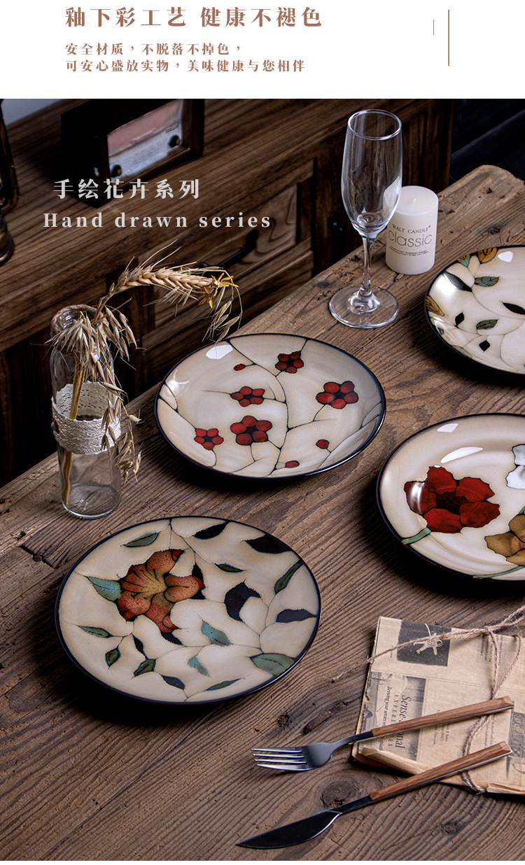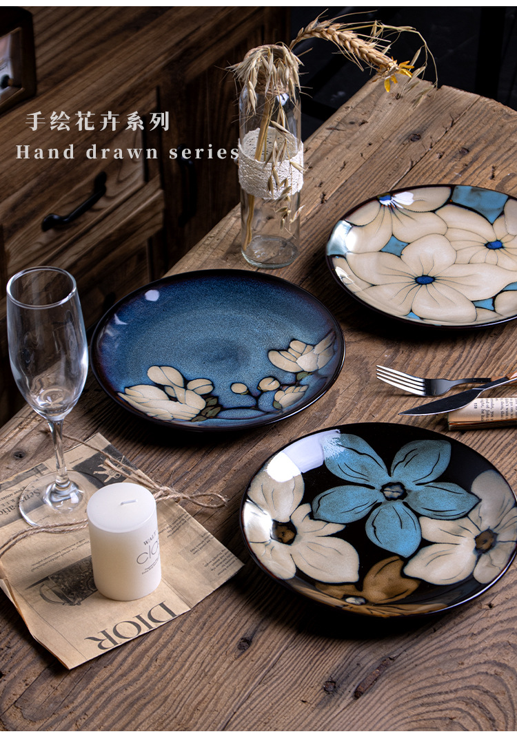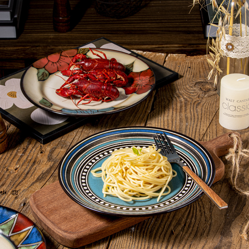 创意窑变釉西餐盘牛排盘家用菜盘陶瓷盘子釉下彩意面盘早餐碟批发