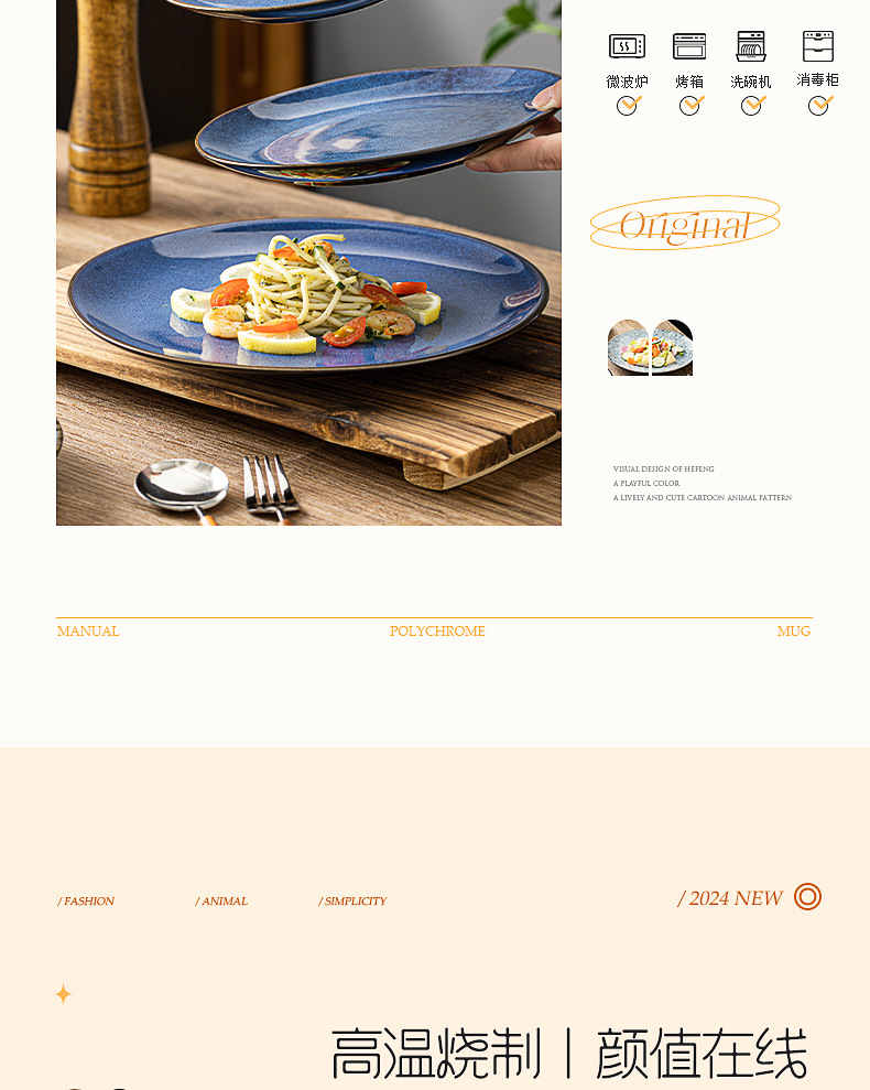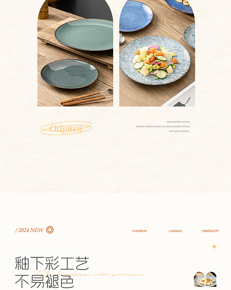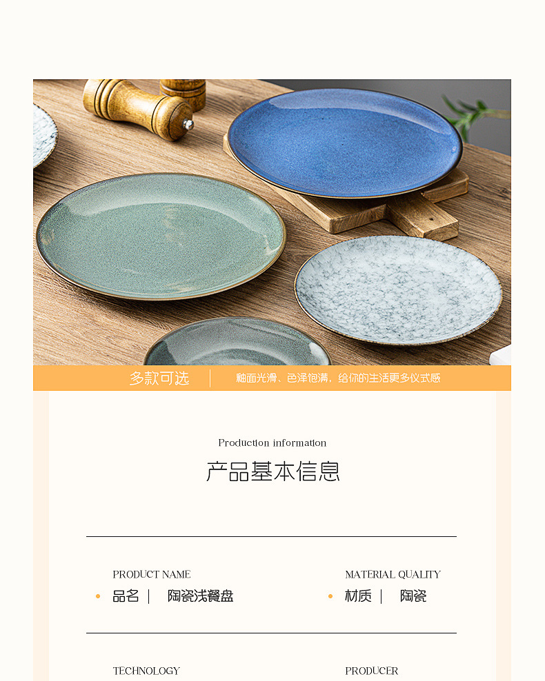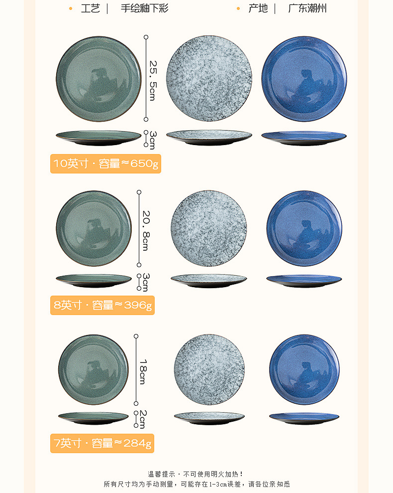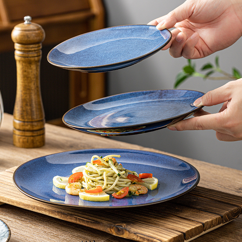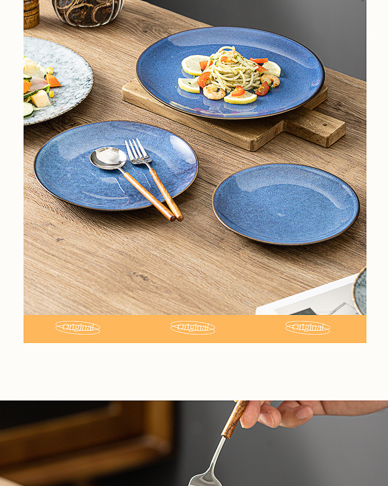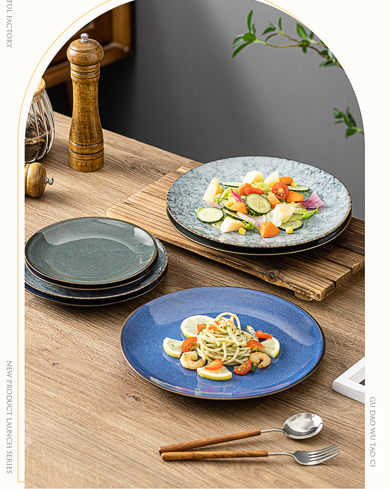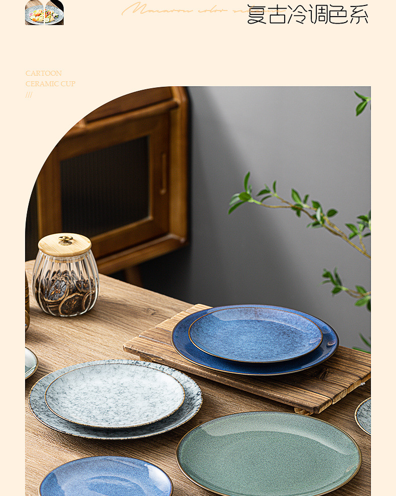 7英寸日式窑变复古创意餐盘釉下彩家用菜盘平盘ins高颜值陶瓷盘子