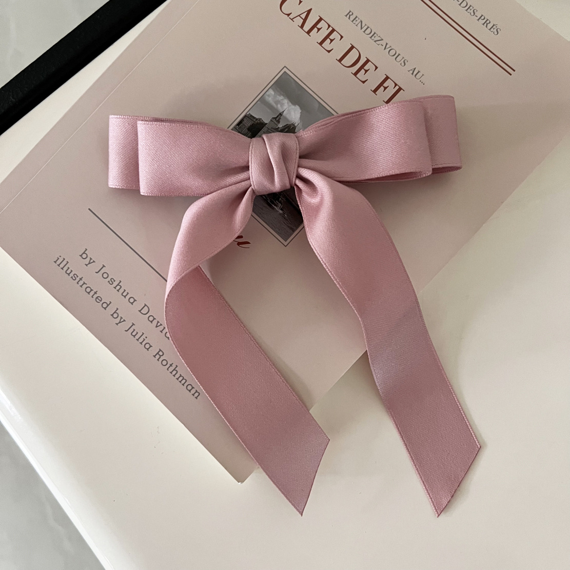 纯色缎面蝴蝶结发夹新款网红后脑勺弹簧夹少女顶夹飘带发卡头饰