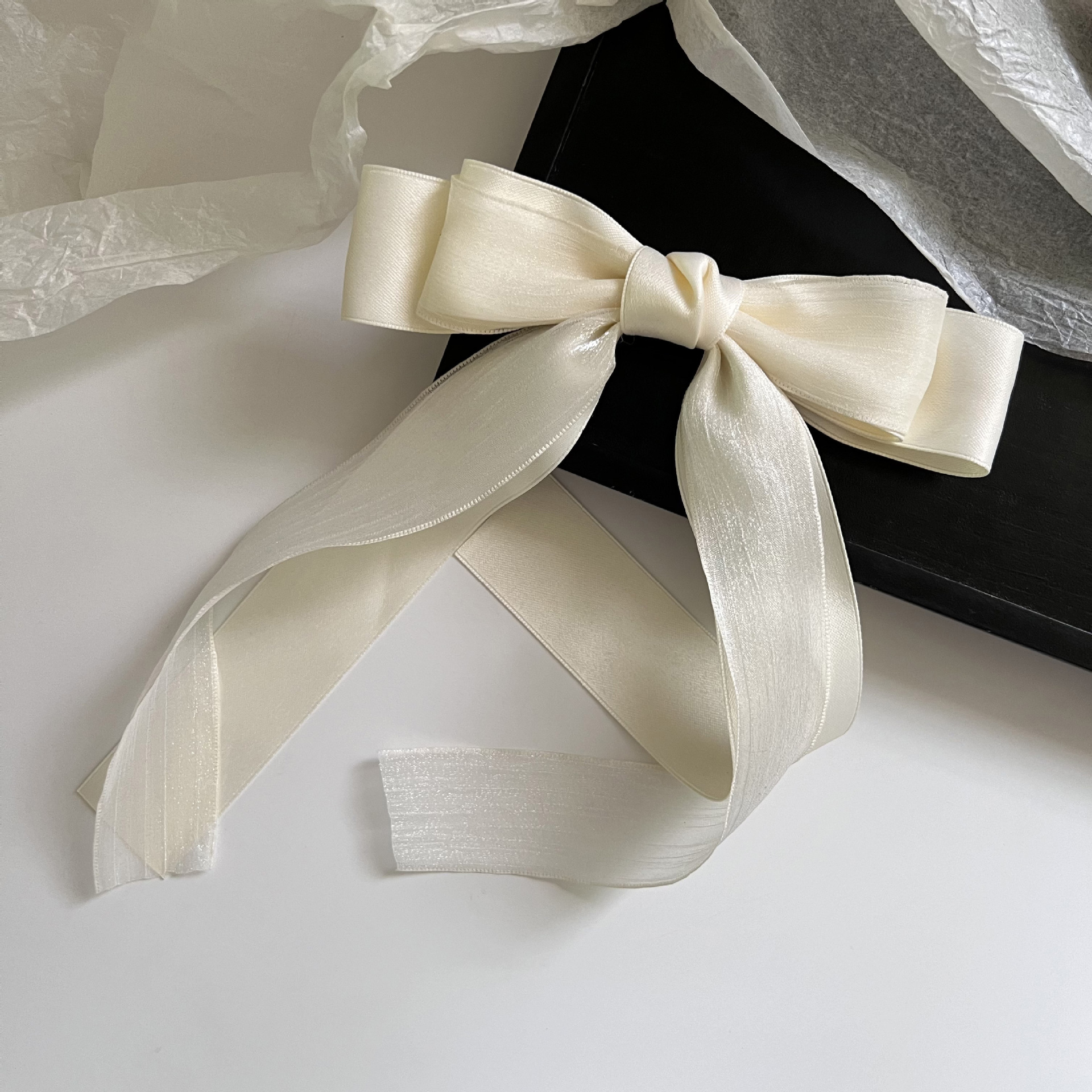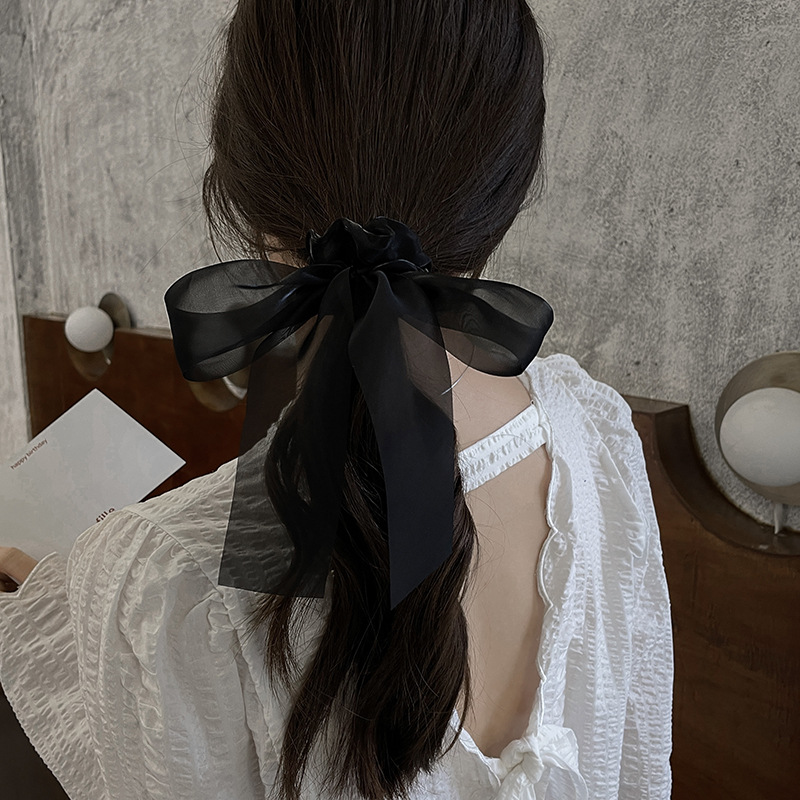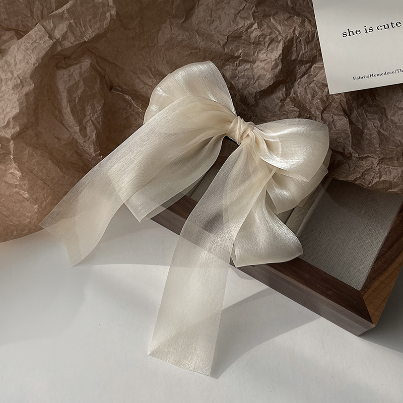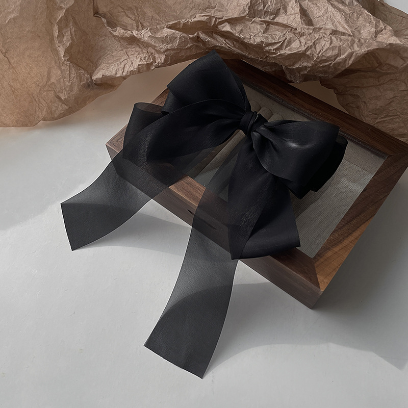 气质高级感黑纱蝴蝶结弹簧夹后脑勺盘发半夹网红一字夹发卡头饰女