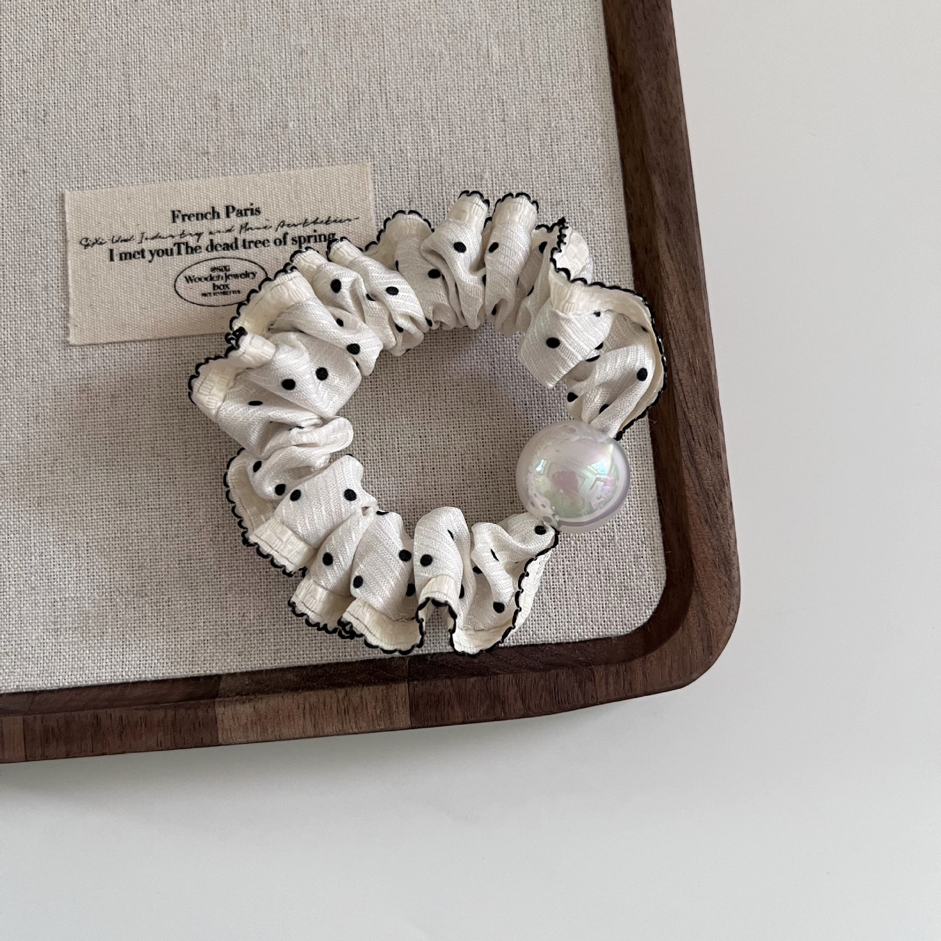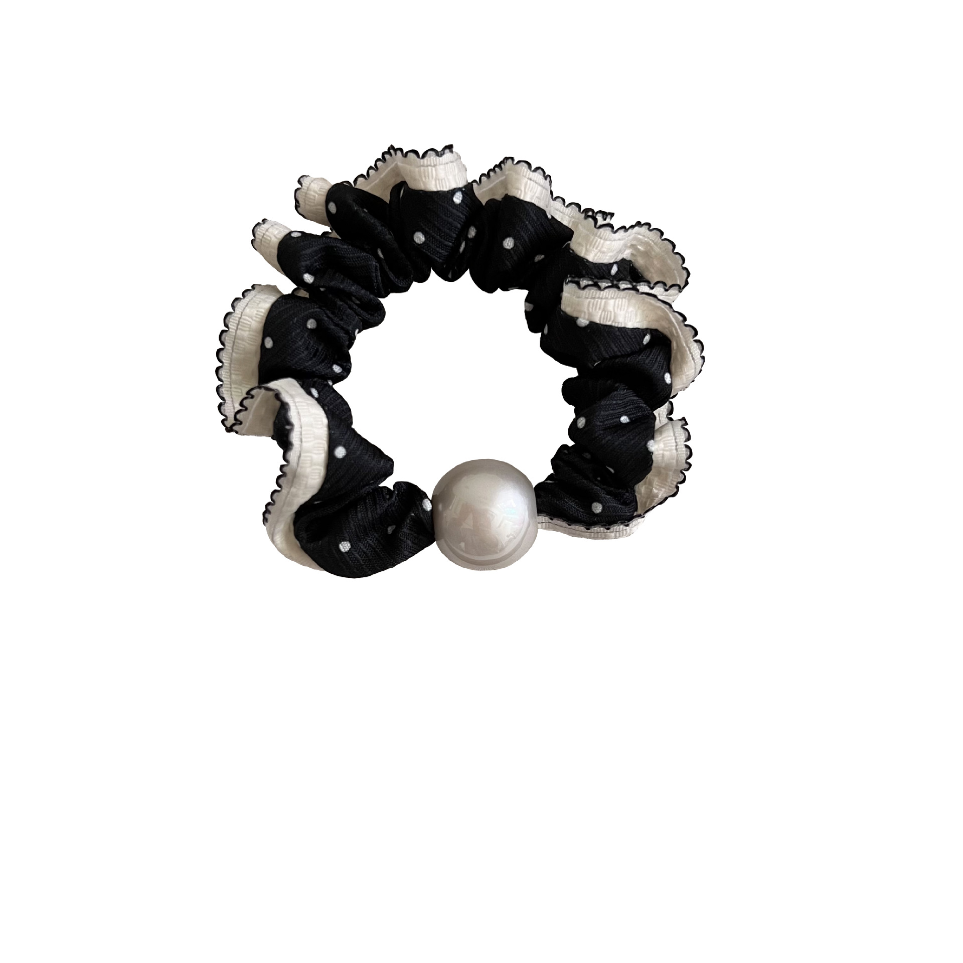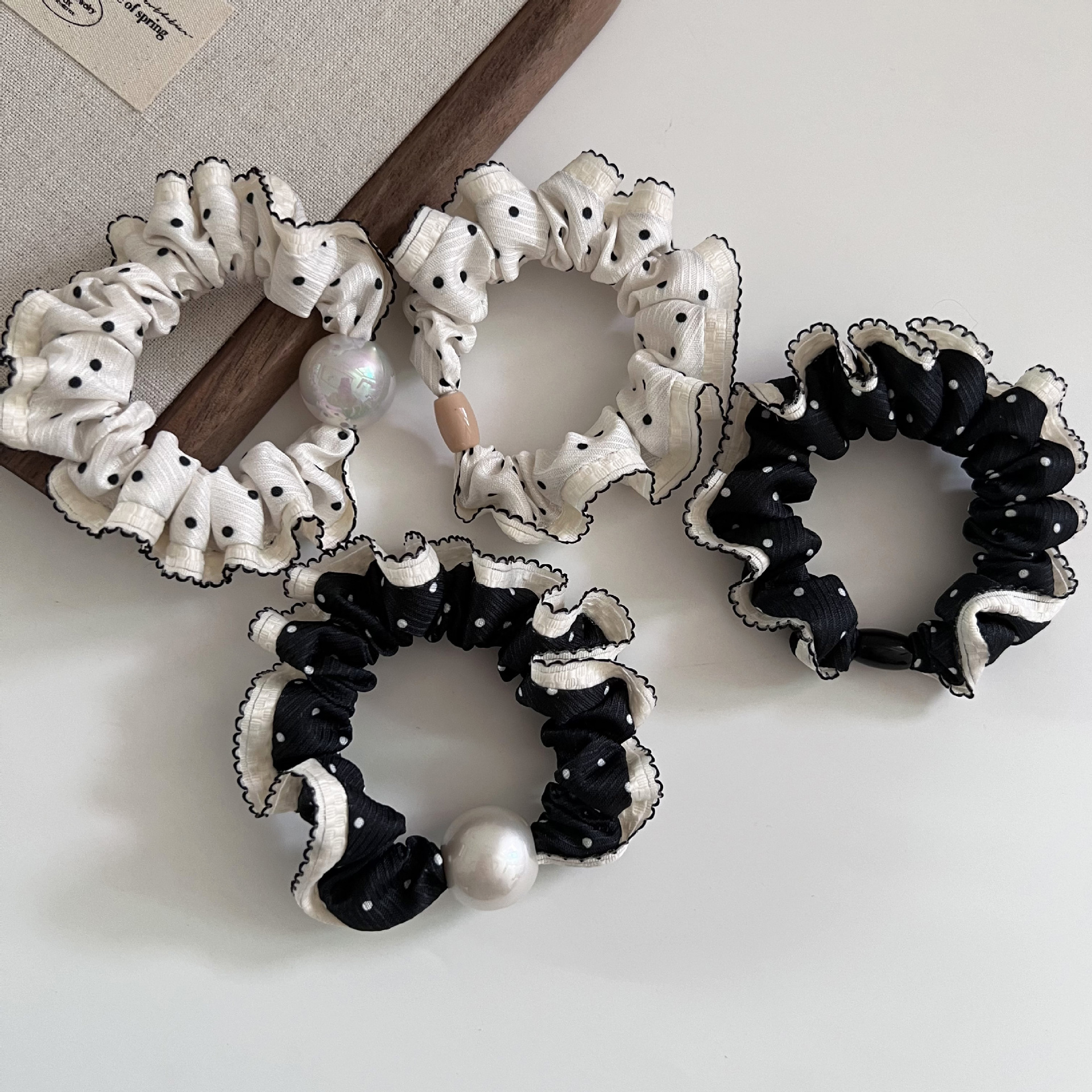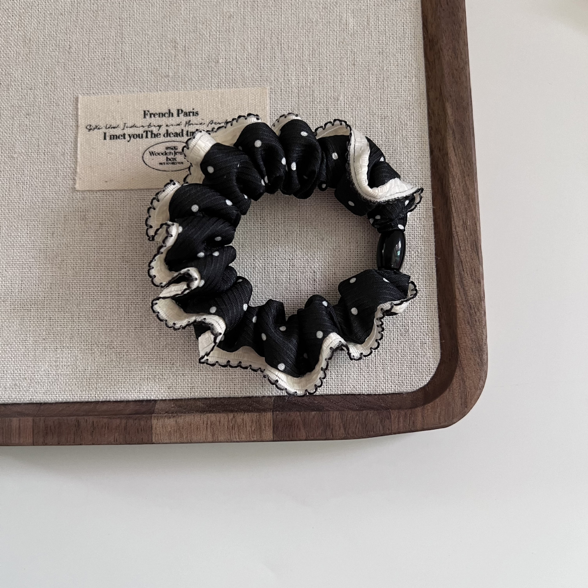 黑白波点蕾丝边珍珠小肠圈女气质马尾扎头发绳高弹力百搭头绳头饰