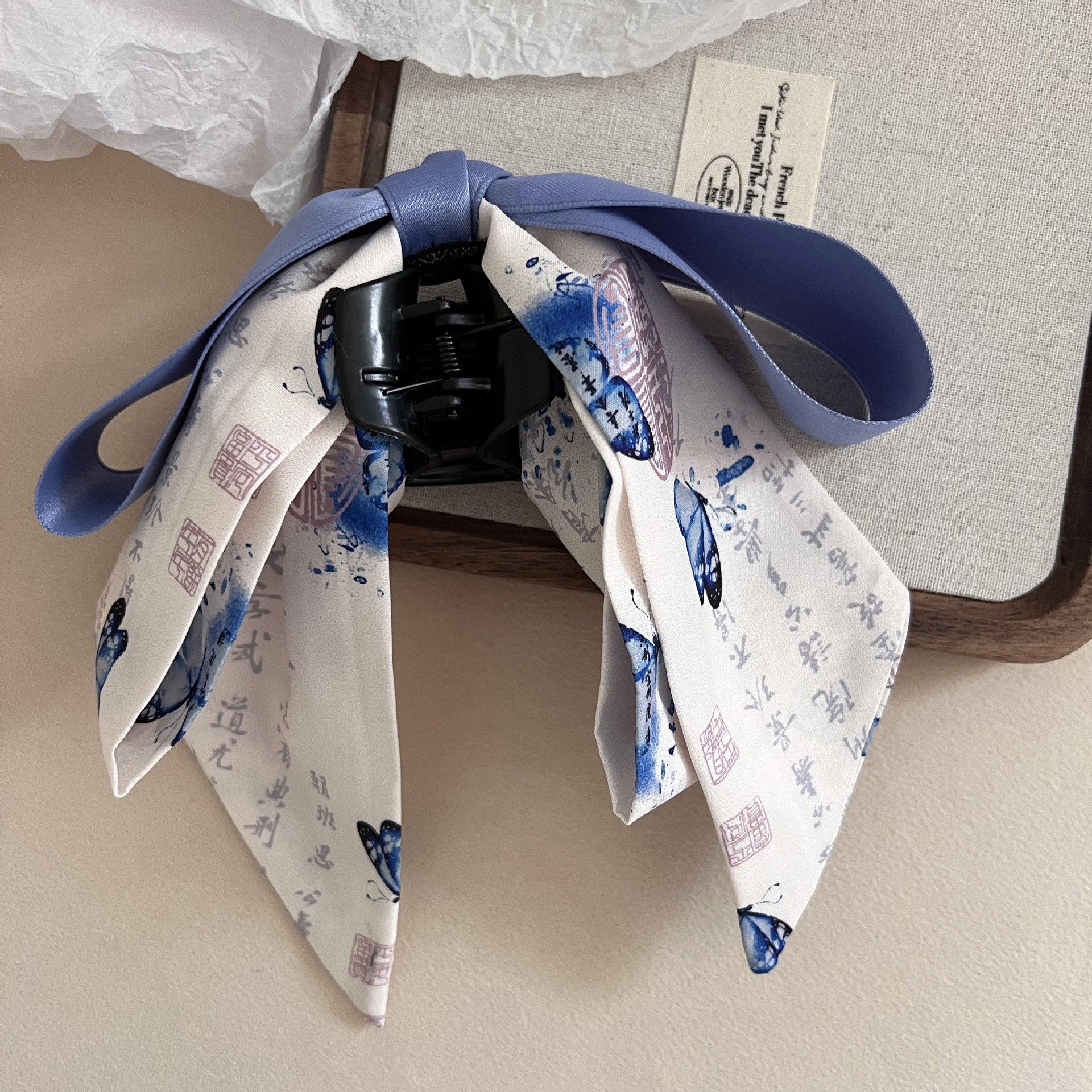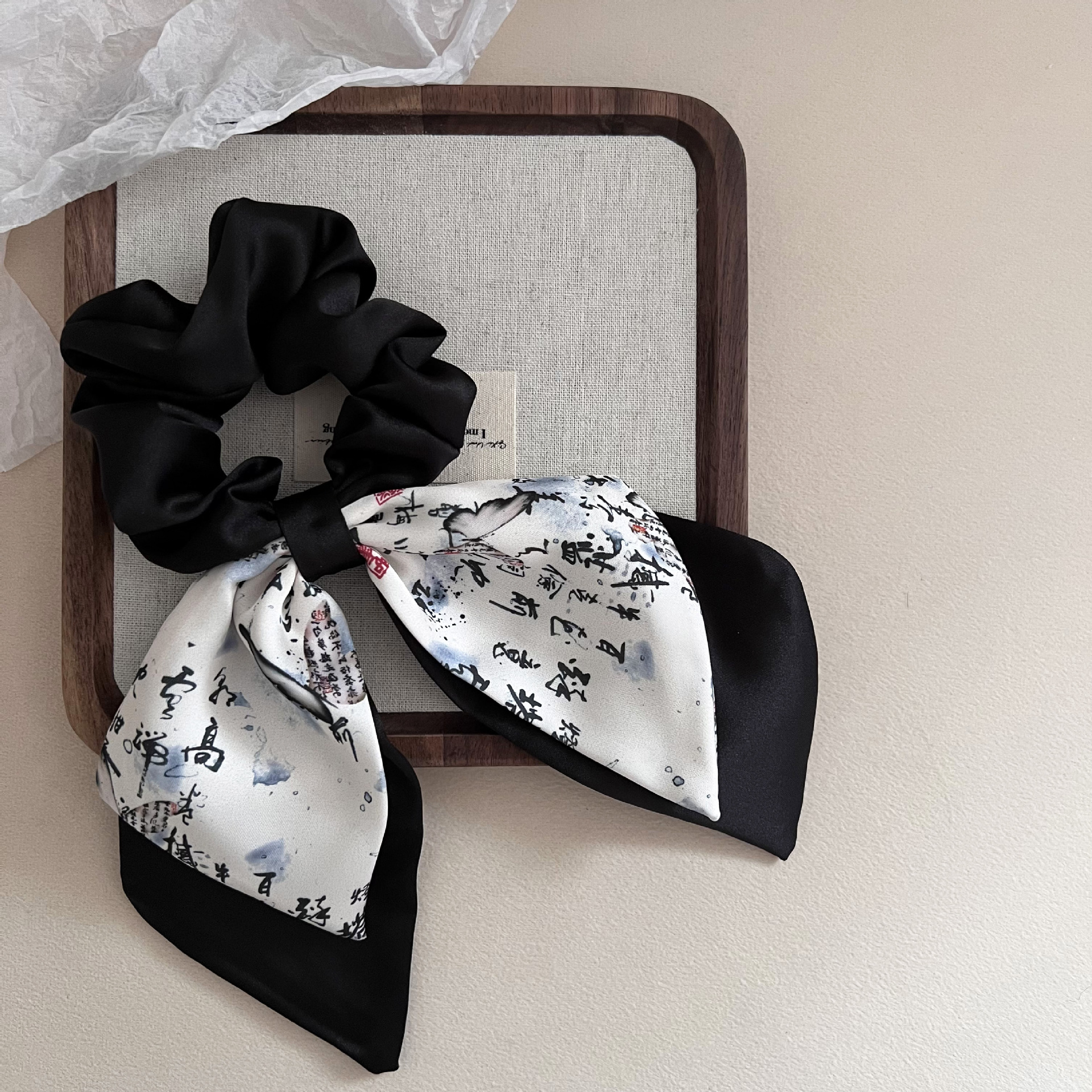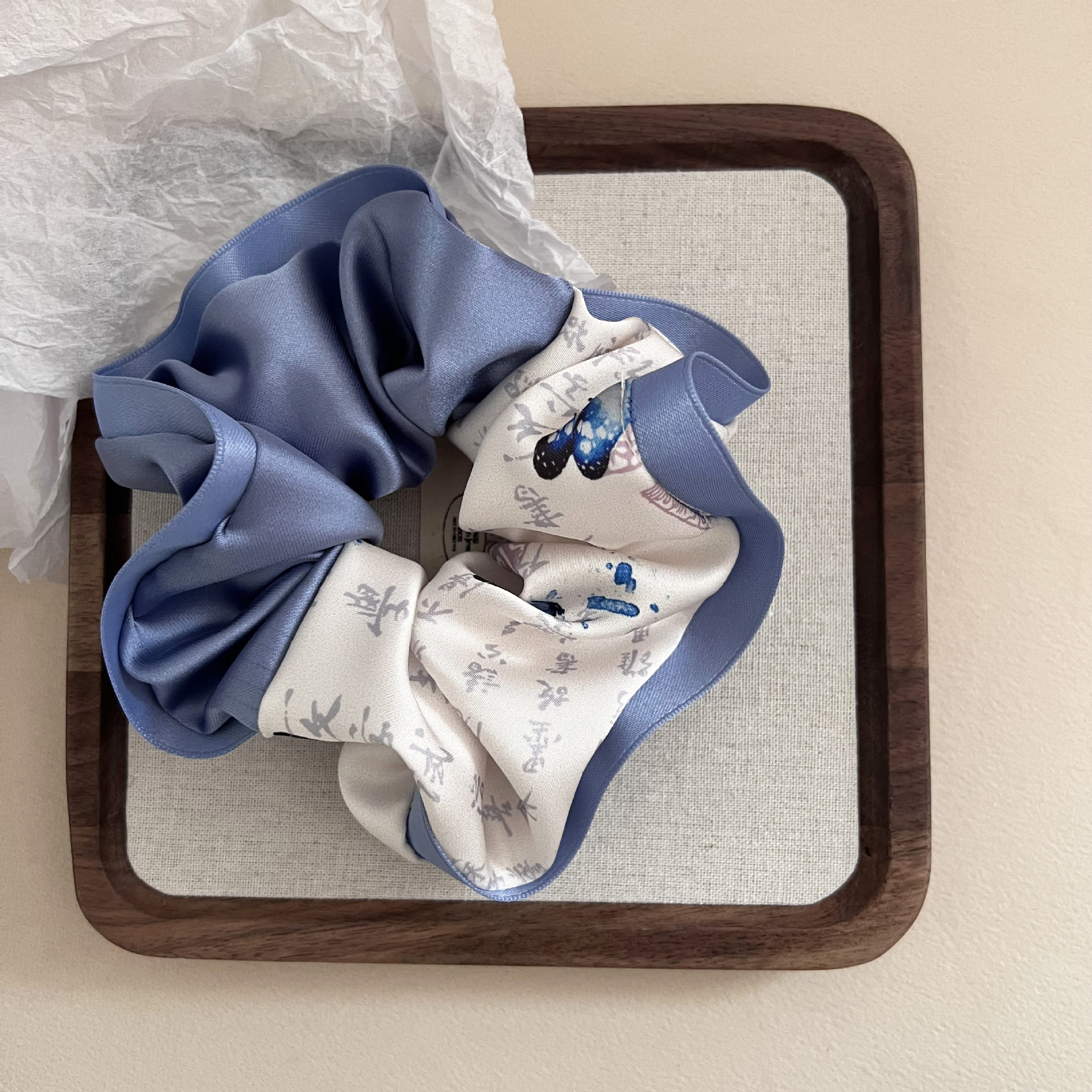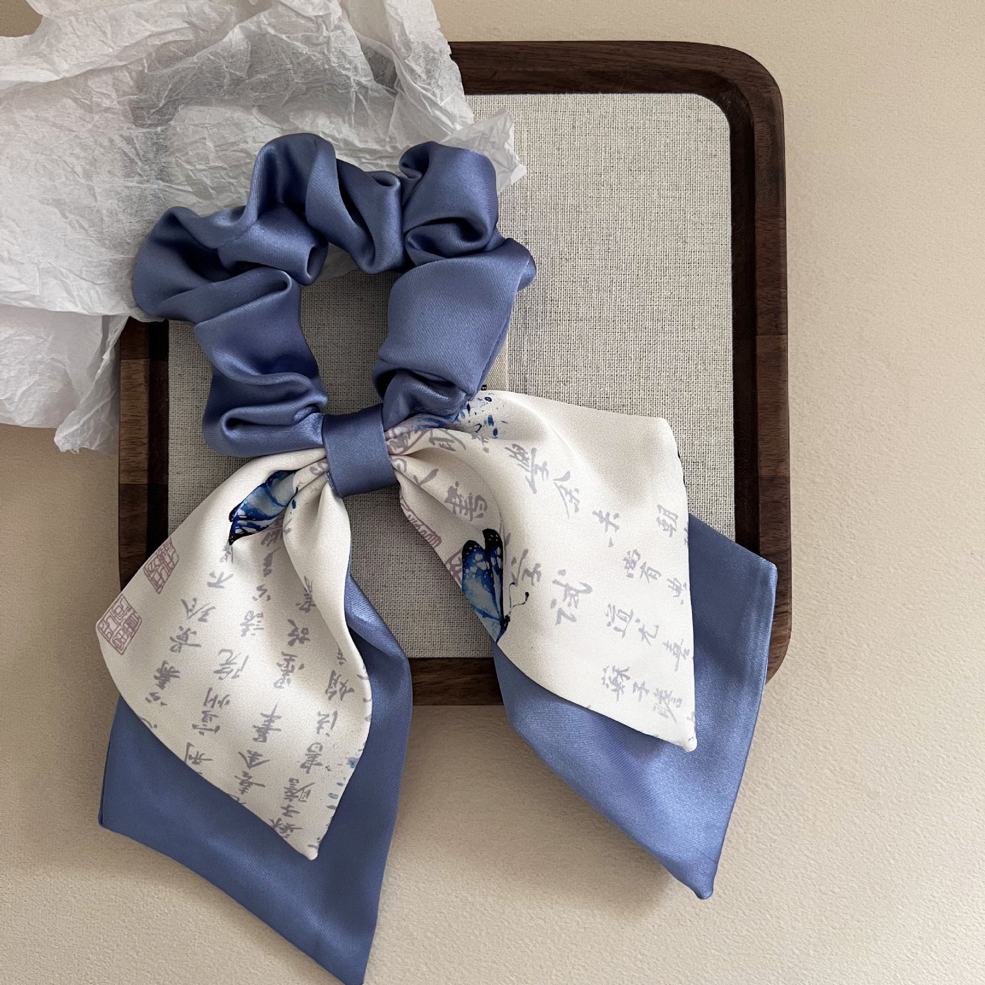 复古国风文墨蝴蝶飘带发圈女新中式古风后脑勺盘发发绳发夹头饰