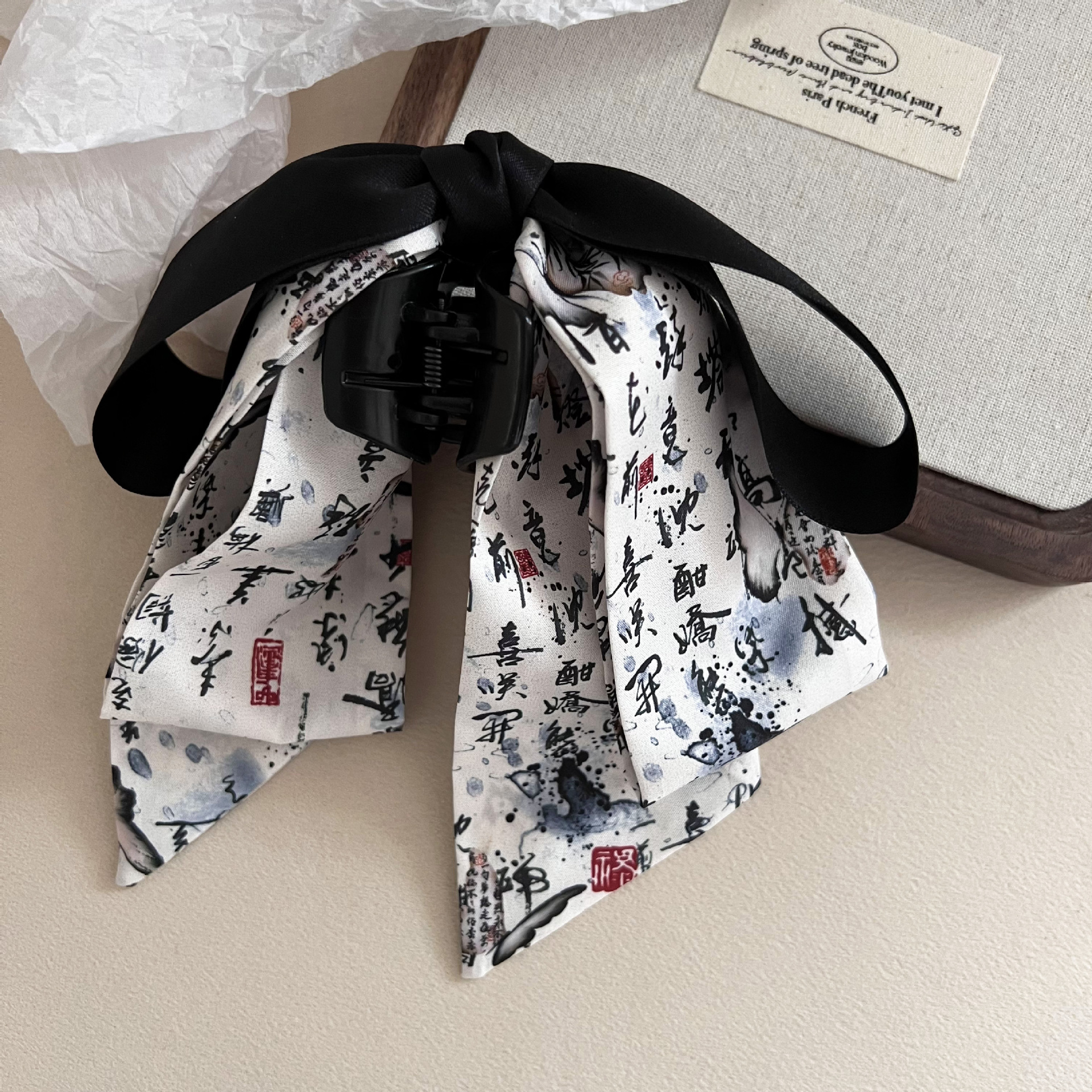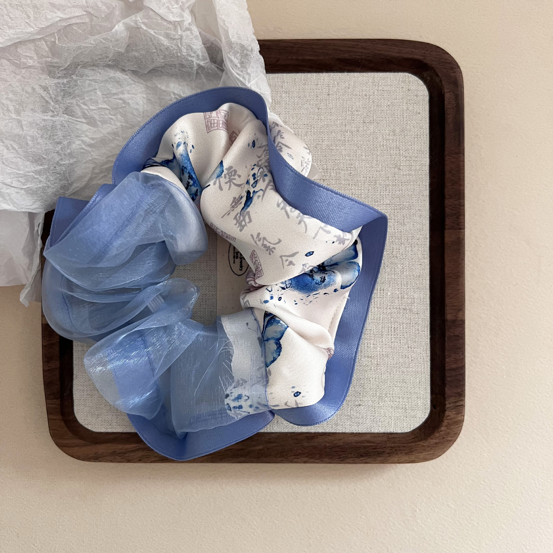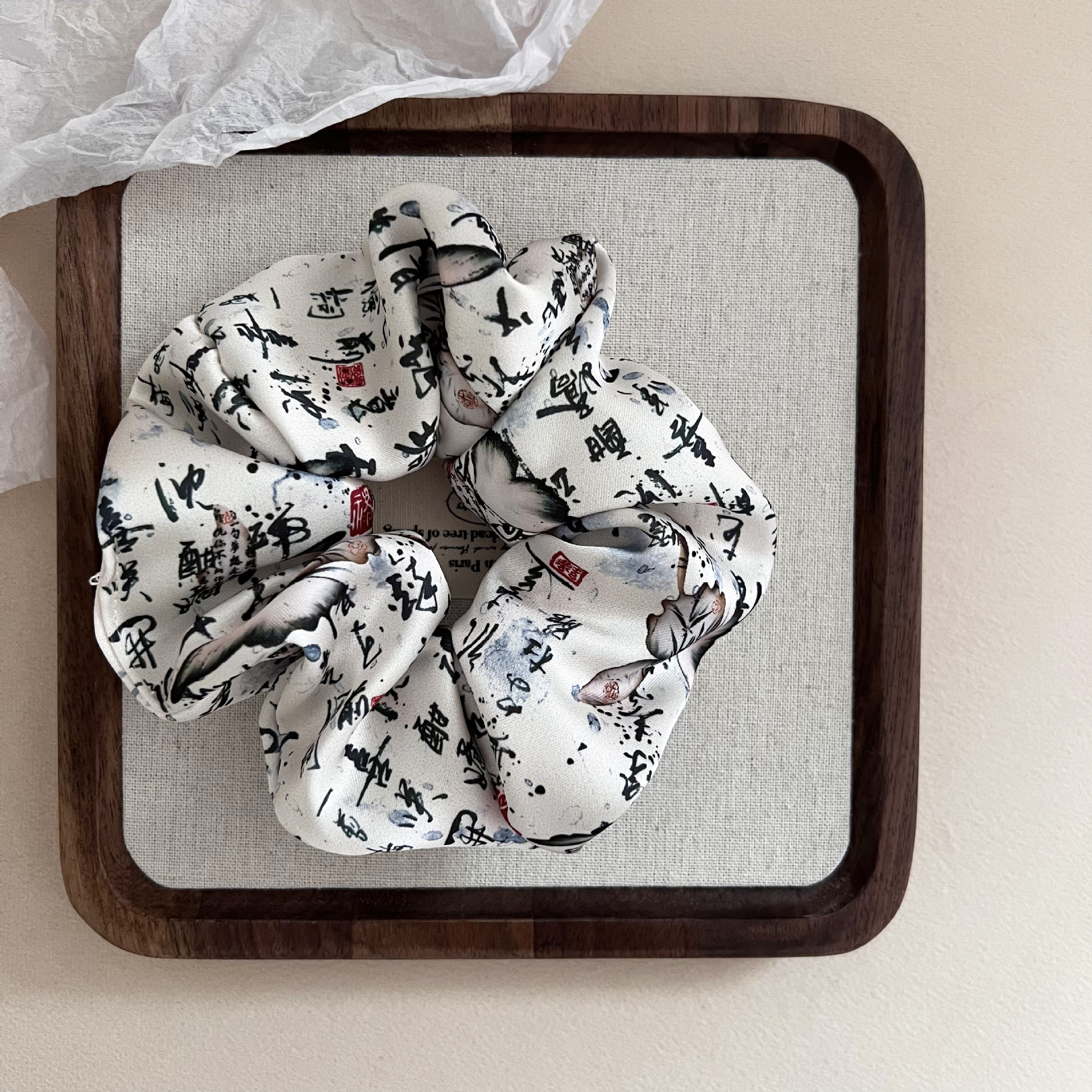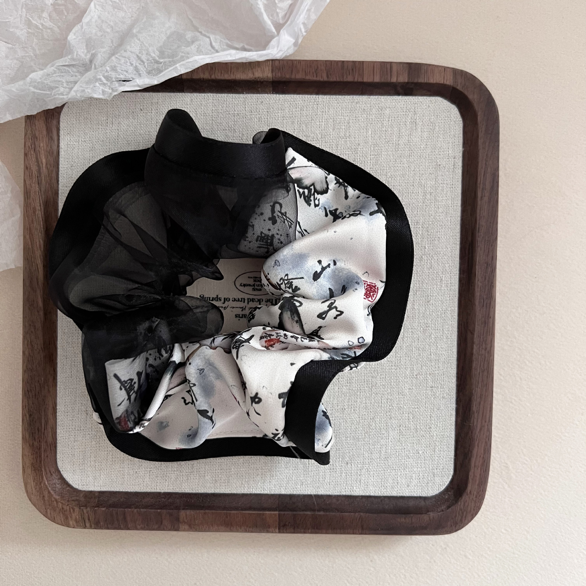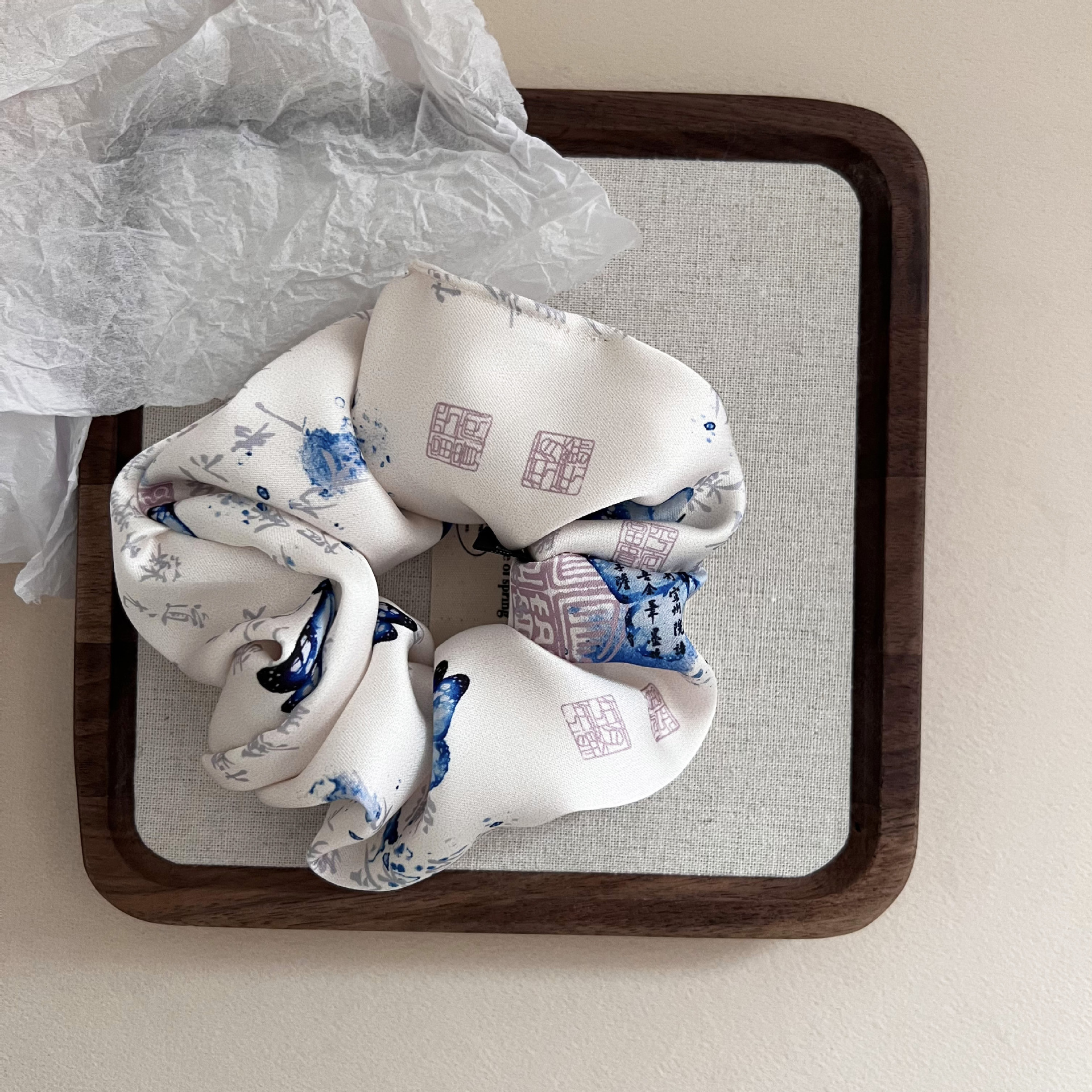 复古国风文墨蝴蝶飘带发圈女新中式古风后脑勺盘发发绳发夹头饰