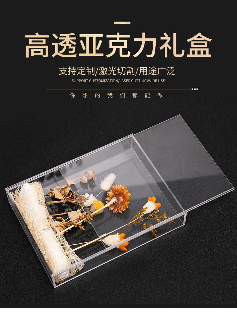亚克力花盒永生花玫瑰干花抽拉花盒伴手礼盒毕业送闺蜜生日礼物盒