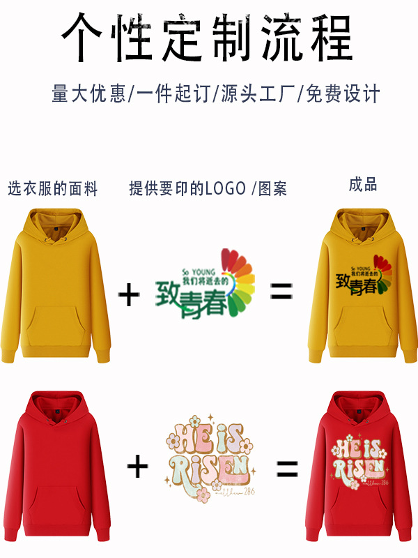 秋冬男女纯色卫衣来图印logo班服工作服印字连帽套头衫厚外套批发