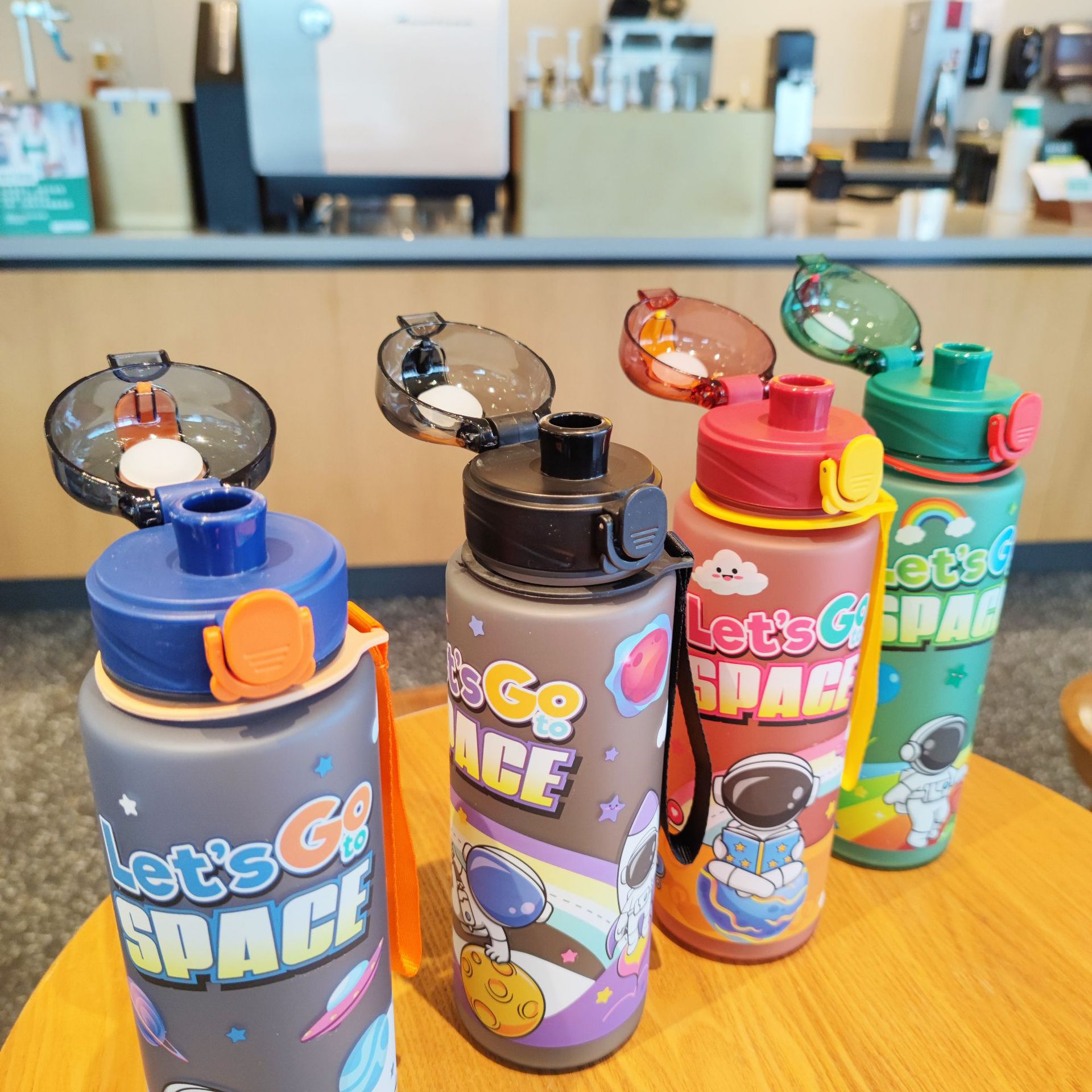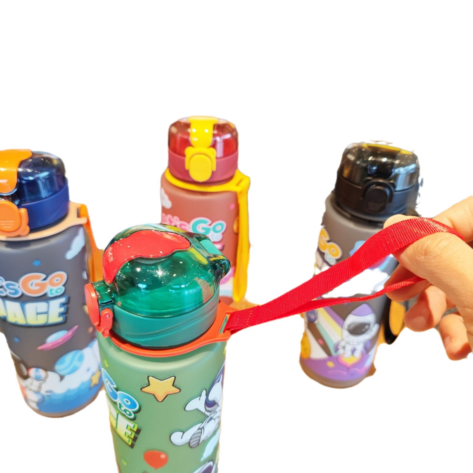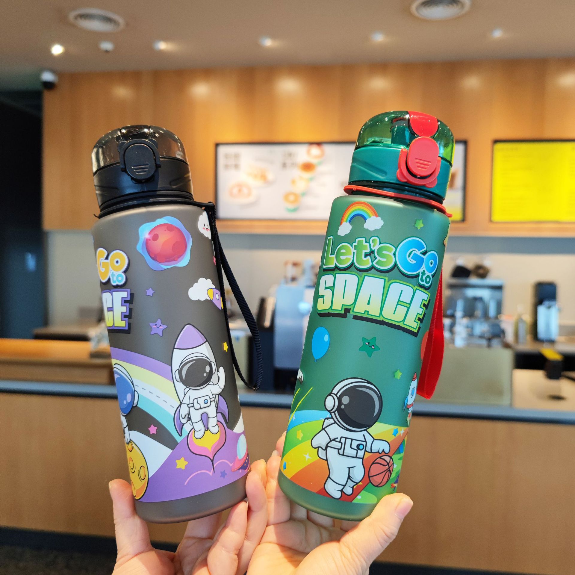 新款简约卡通水杯宇航员塑料杯提绳随行杯户外健身运动水杯