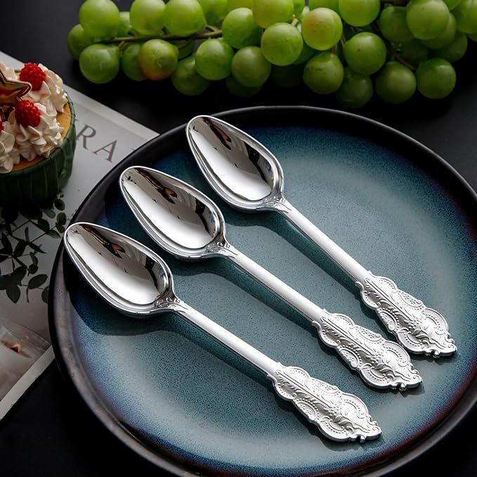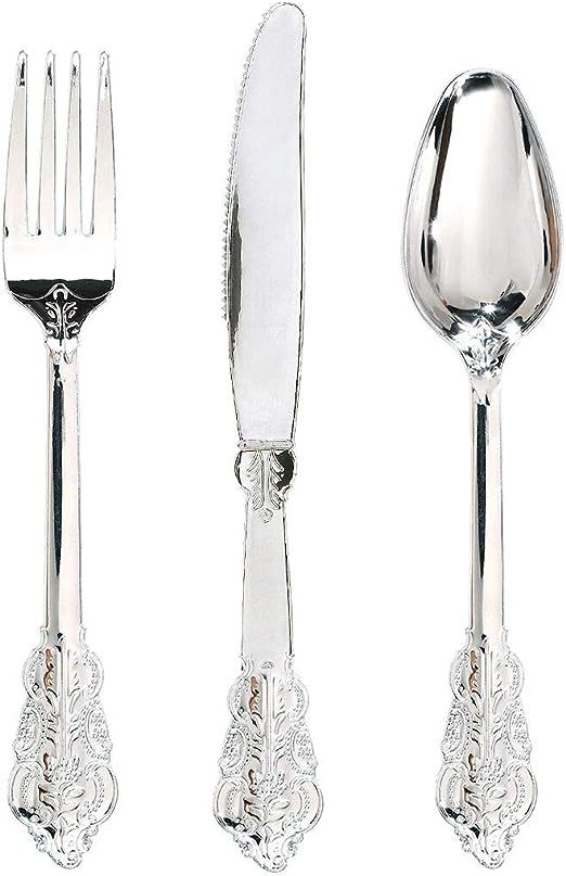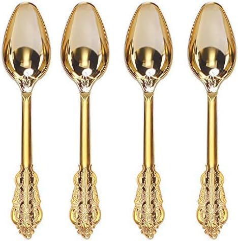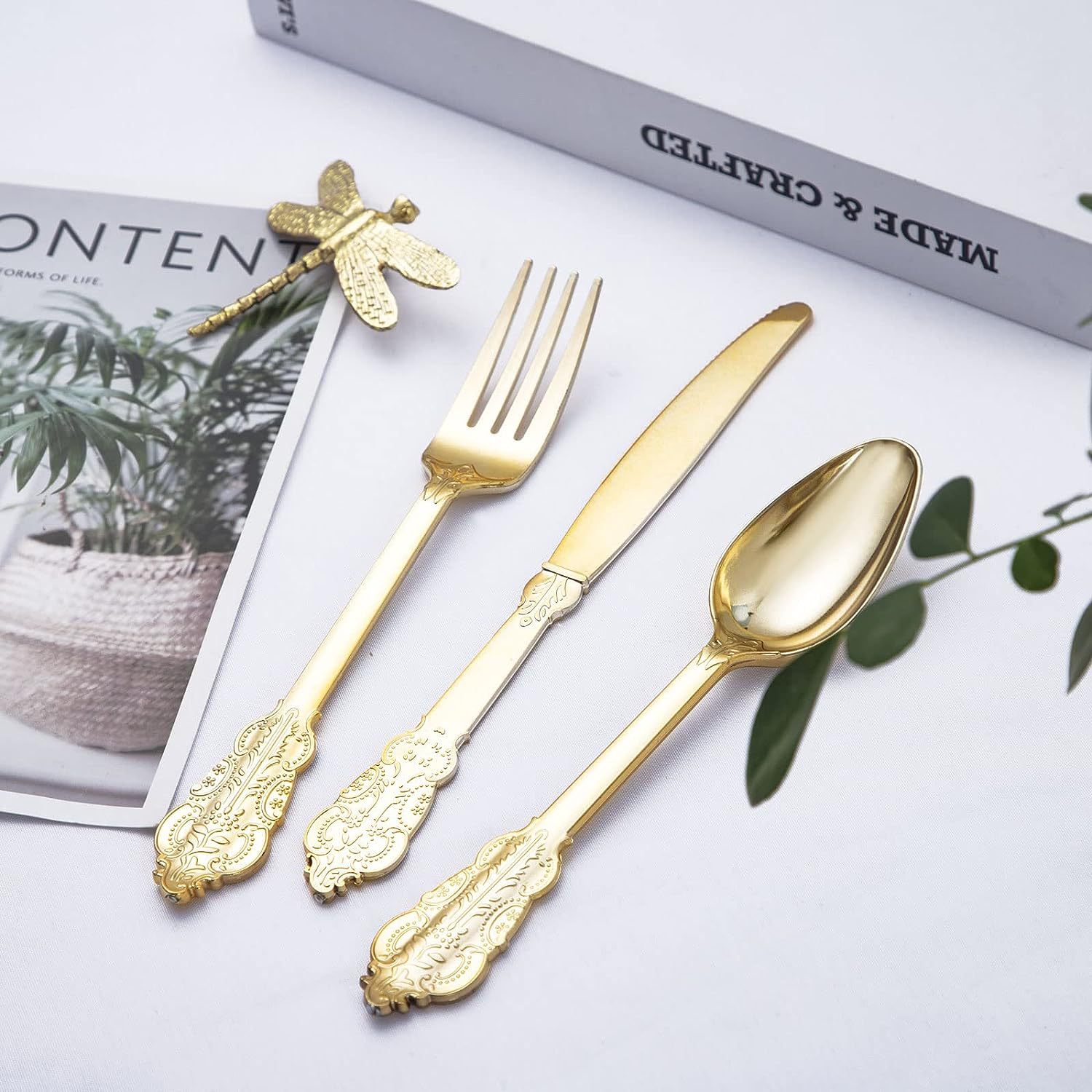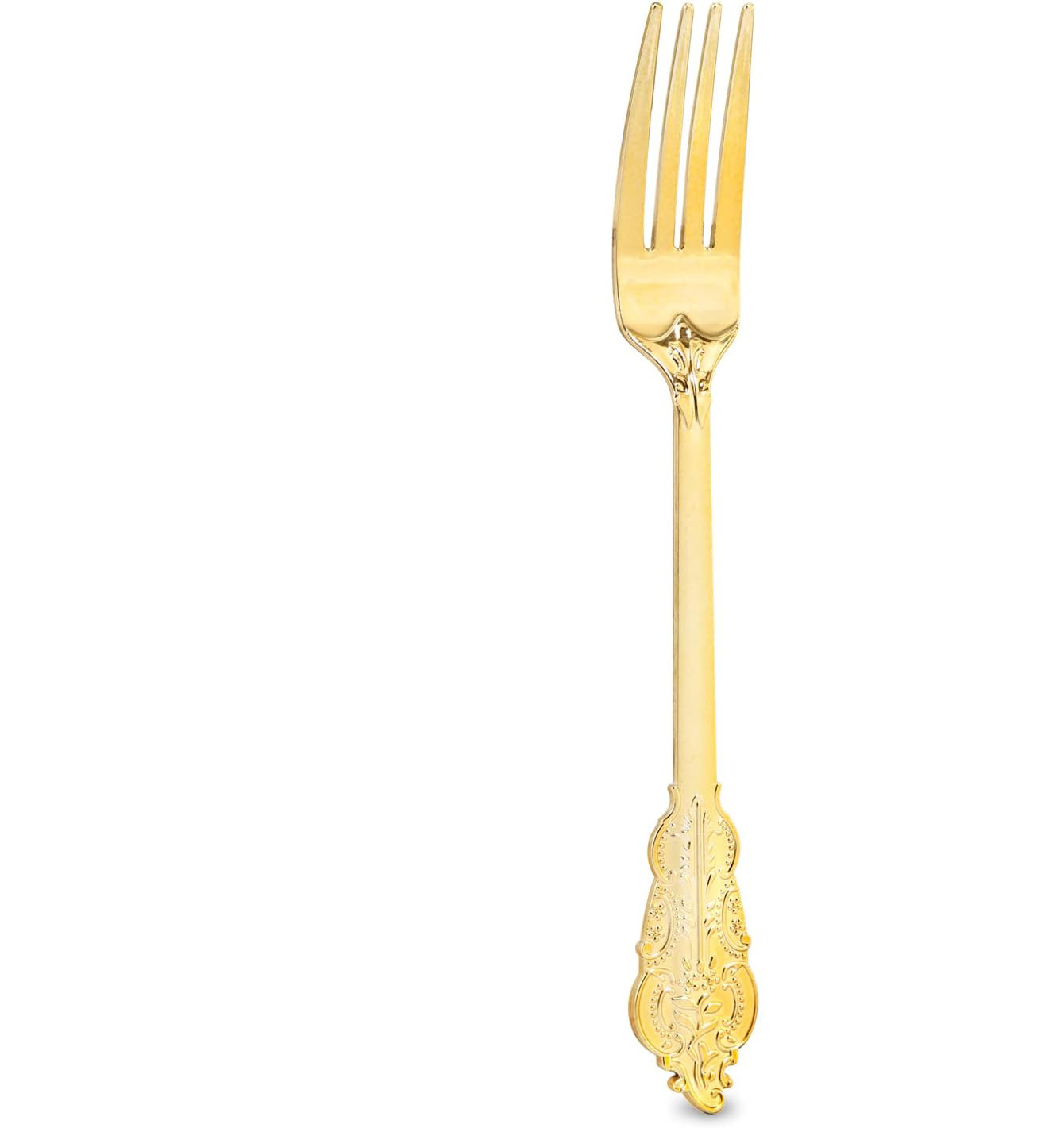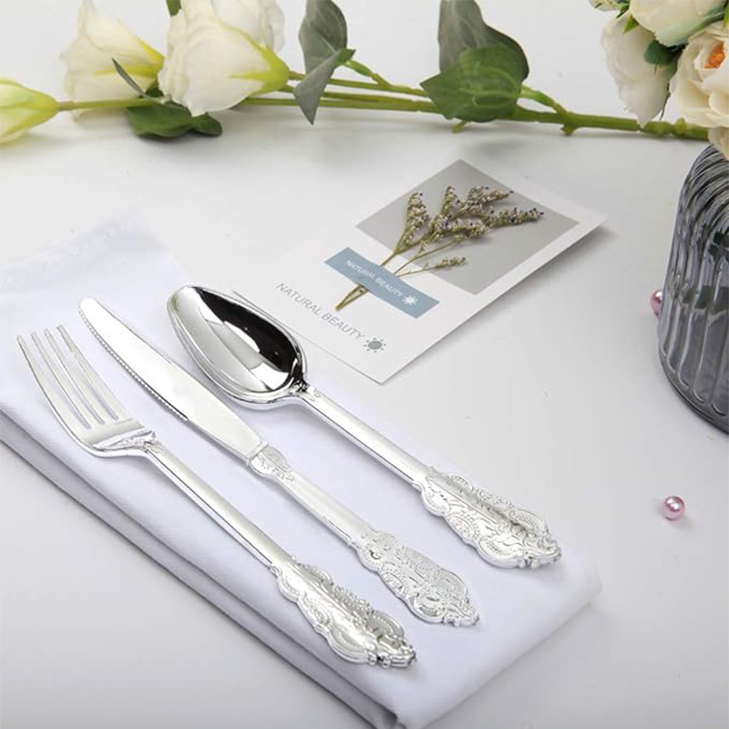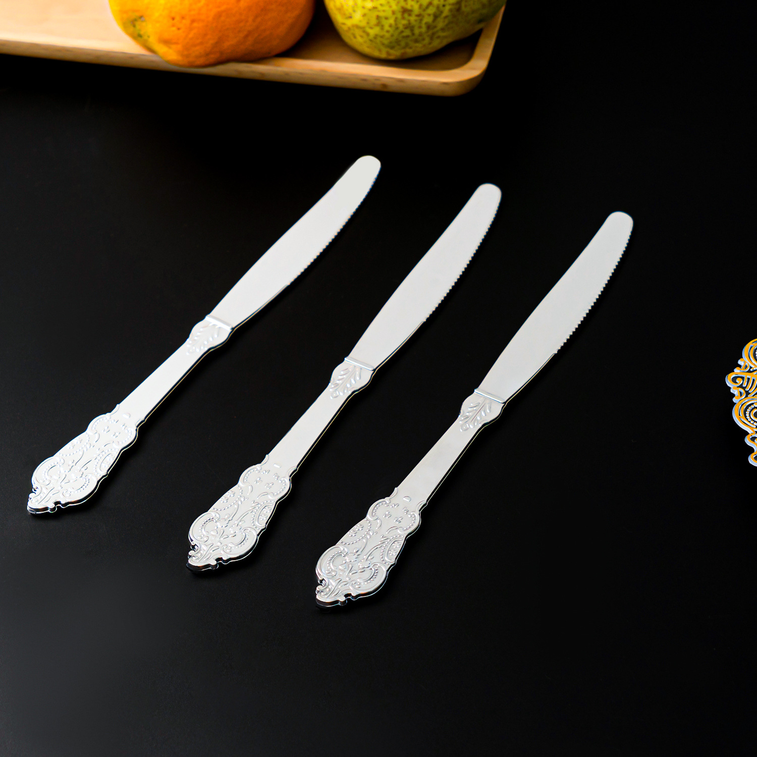 金色立体浮雕刀叉勺三件套PS玫瑰金银色仿不锈钢塑料西餐餐具套装
