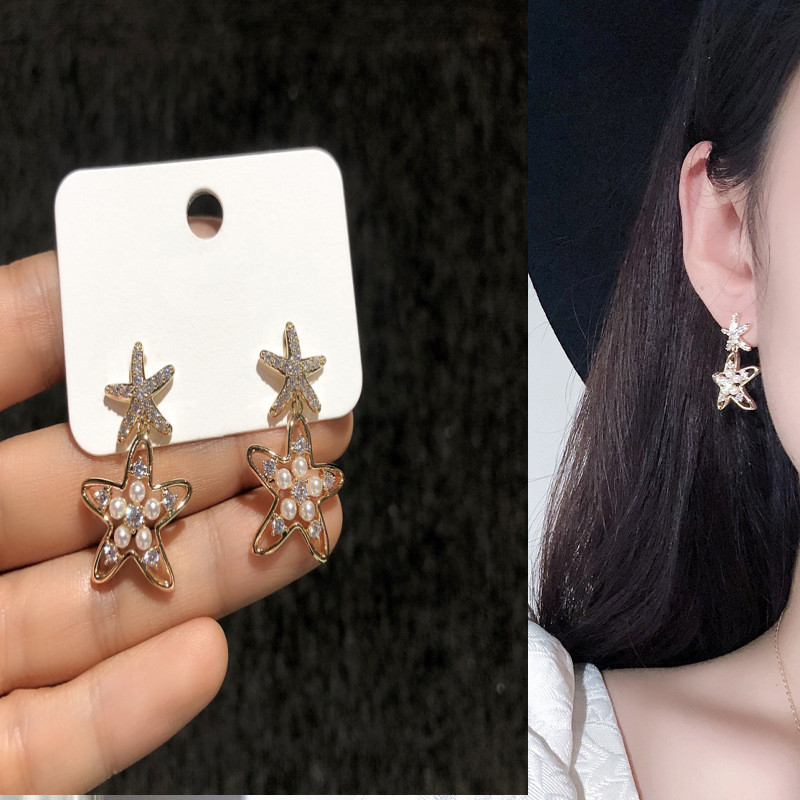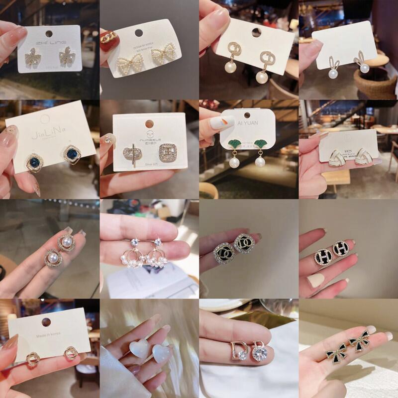 S925银针韩版新款花朵珍珠耳环女抖音同款简约气质设计感耳钉耳饰