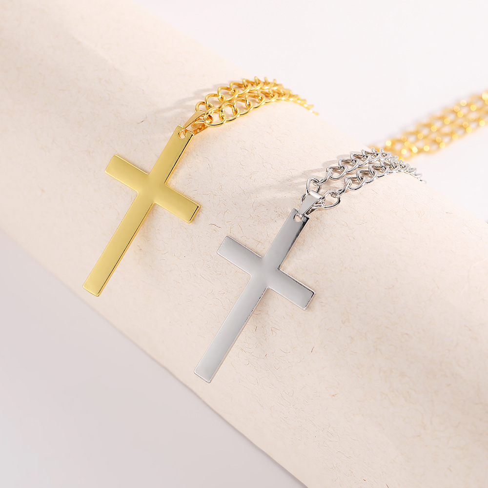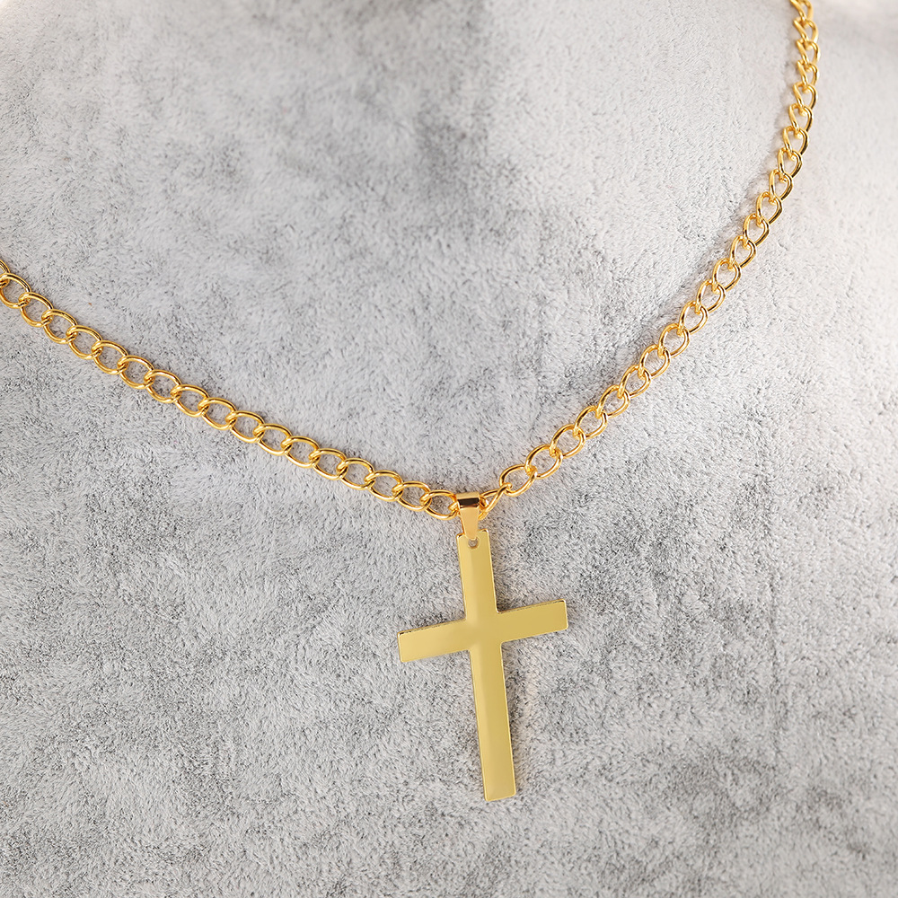 跨境新款男女金属金色麻花链简约十字架项链钛钢不掉色项链饰品
