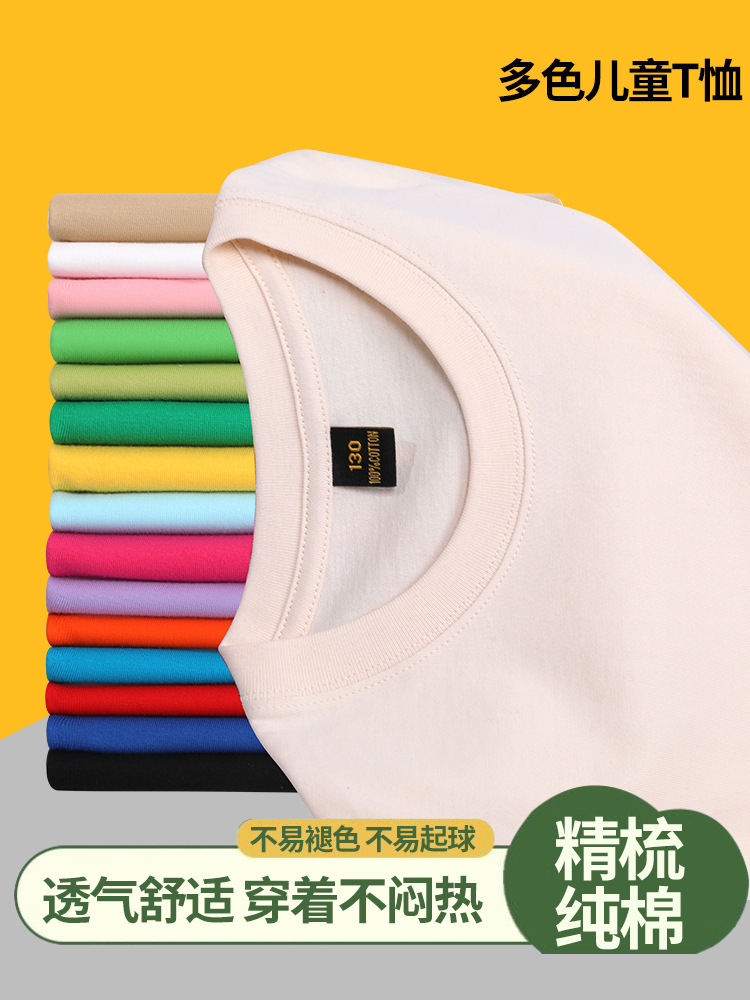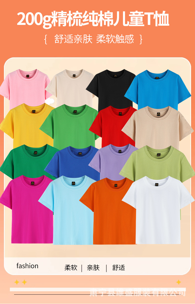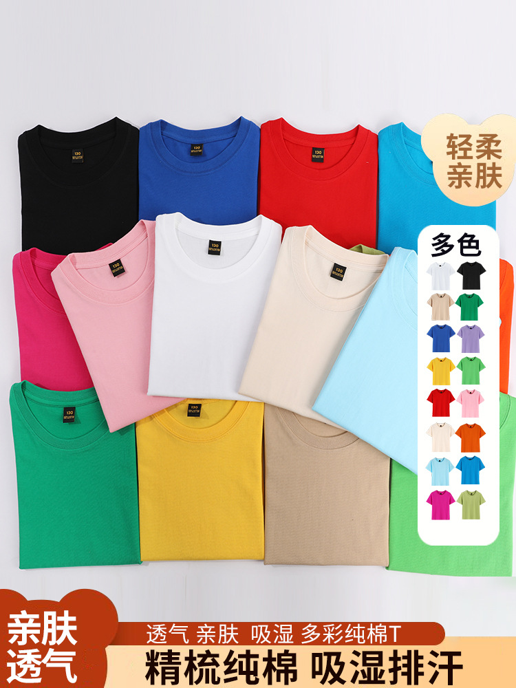纯棉t恤儿童短袖200g精梳棉定制班服亲子团体服t恤青少年短袖纯棉