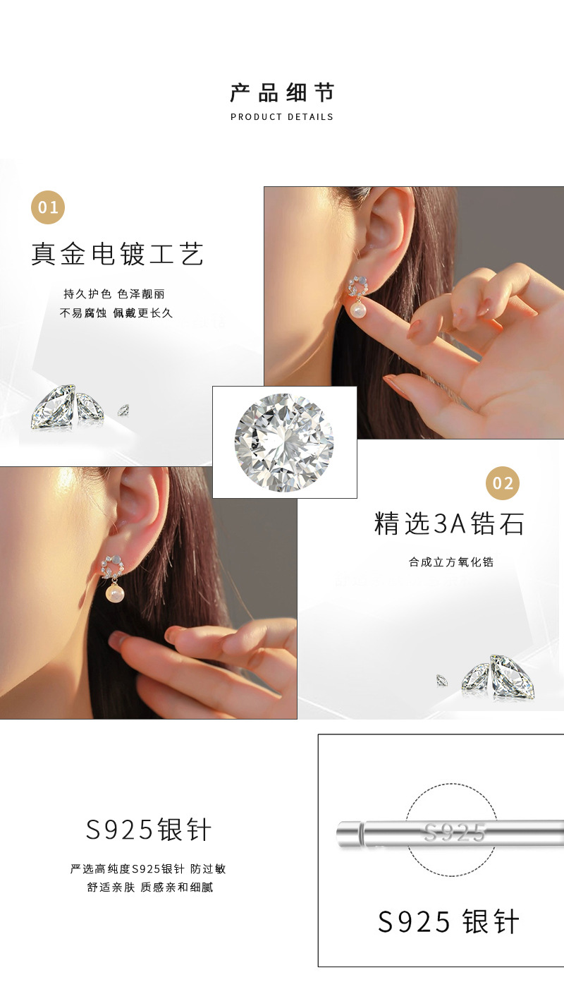 夏季新款潮气质耳钉女S925银针高级感人鱼姬耳饰简约百搭耳环批发