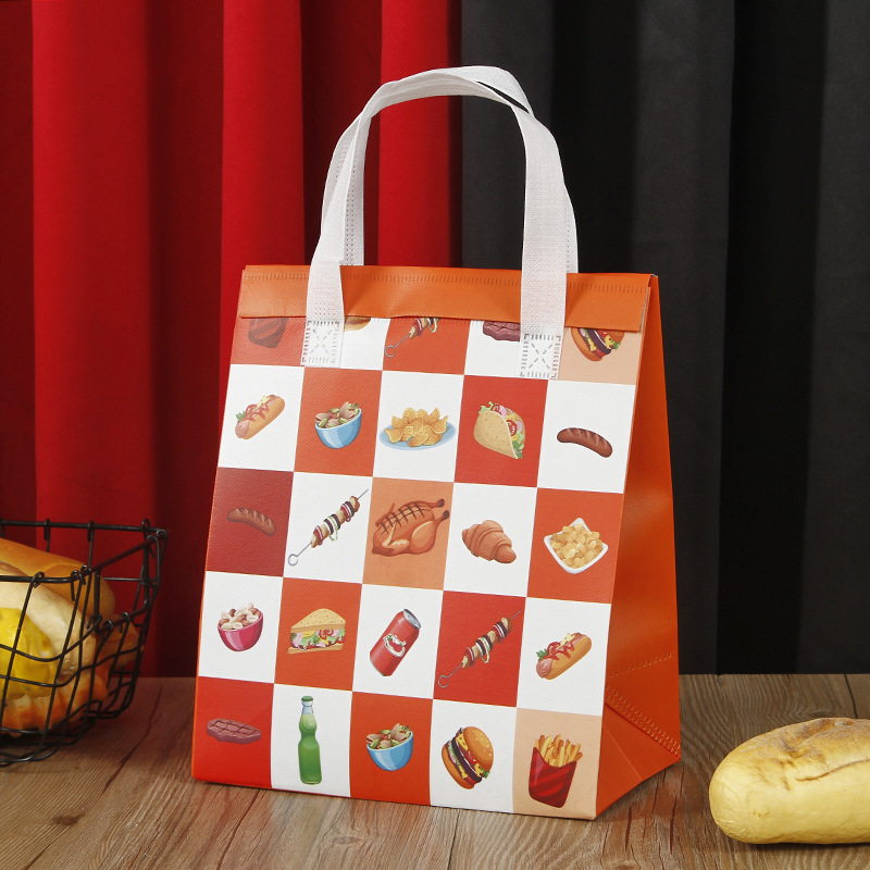 现货无纺布外卖保温袋覆膜奶茶蛋糕铝箔保冷手提袋餐饮打包袋印刷