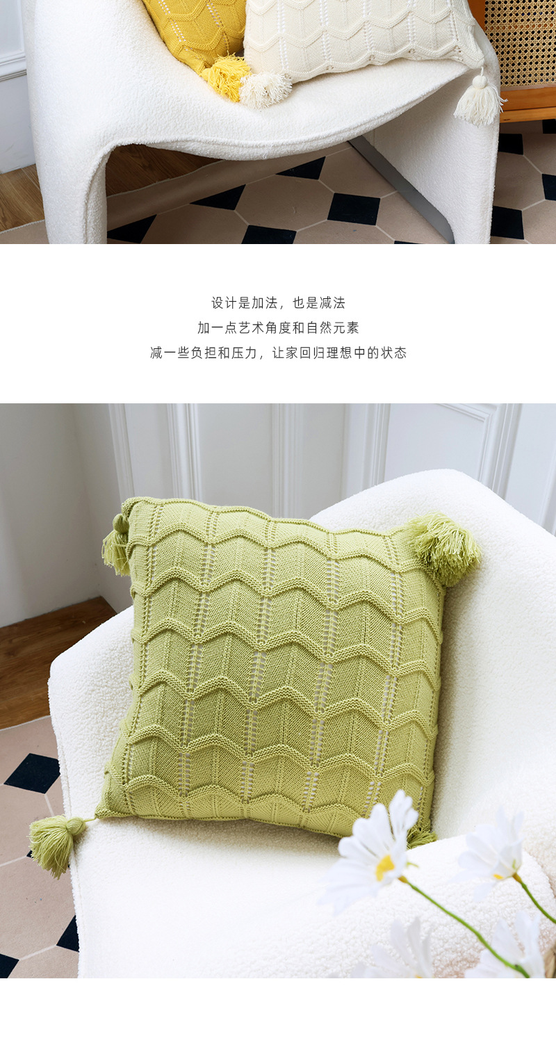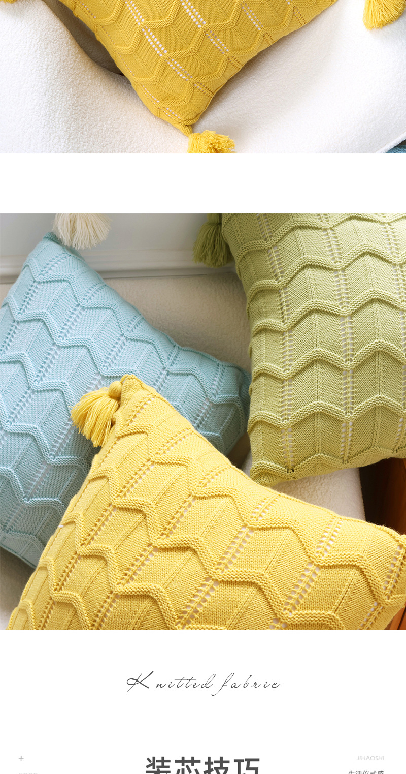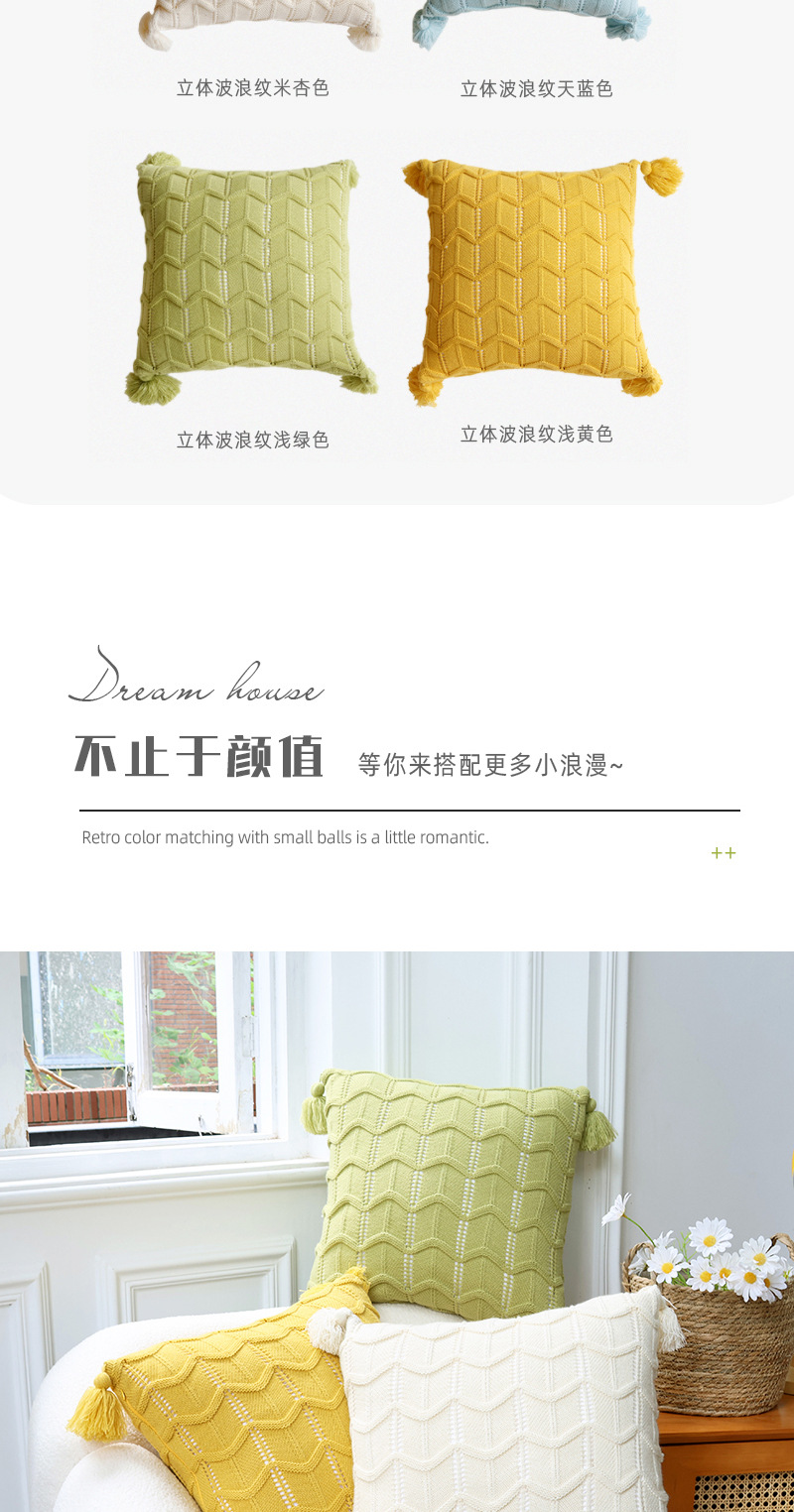 现代简约素色腈纶立体波浪纹流苏靠垫抱枕沙发客厅民宿床头靠枕套
