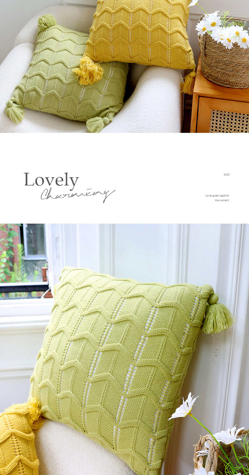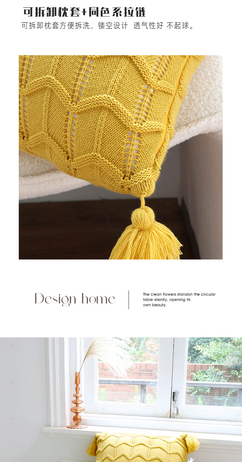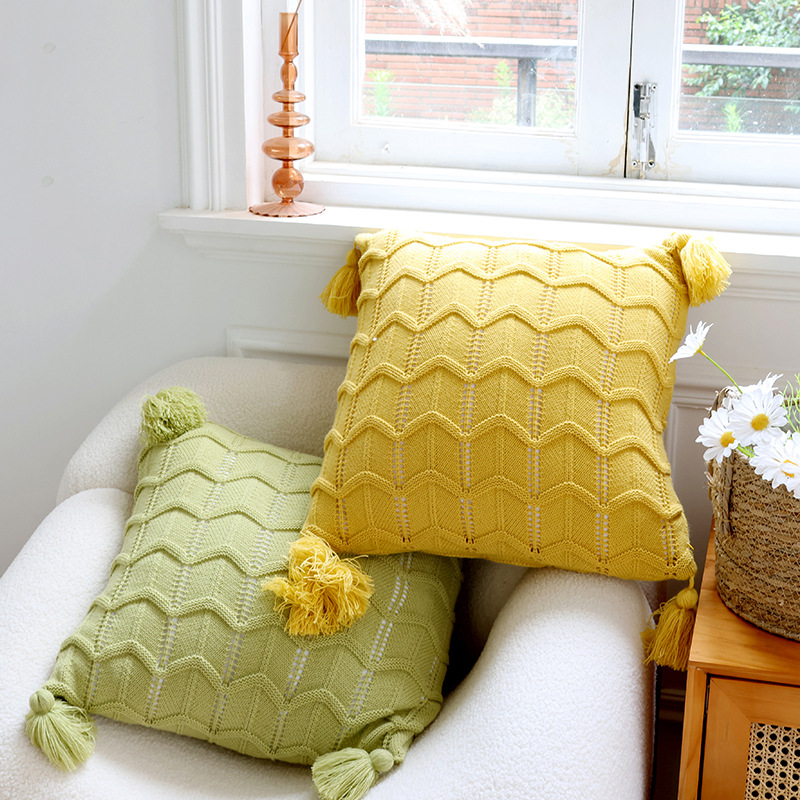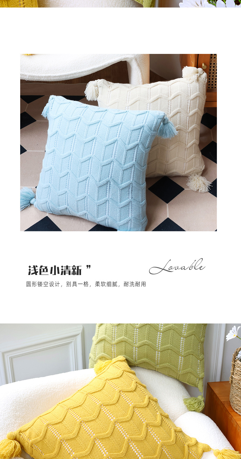 现代简约素色腈纶立体波浪纹流苏靠垫抱枕沙发客厅民宿床头靠枕套