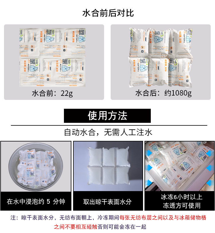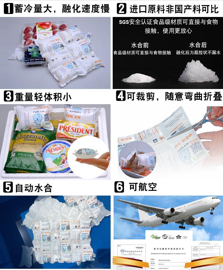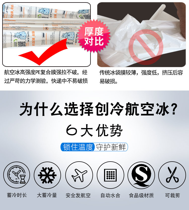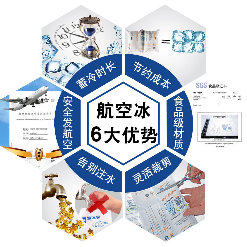 航空冰袋科技6大格食品保鲜快递一次性非注水合冷藏干冰包邮