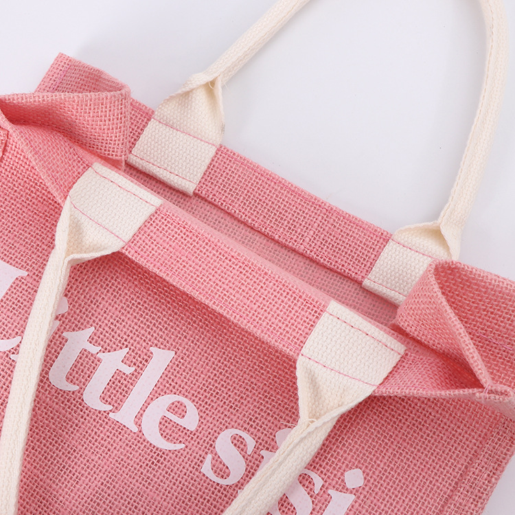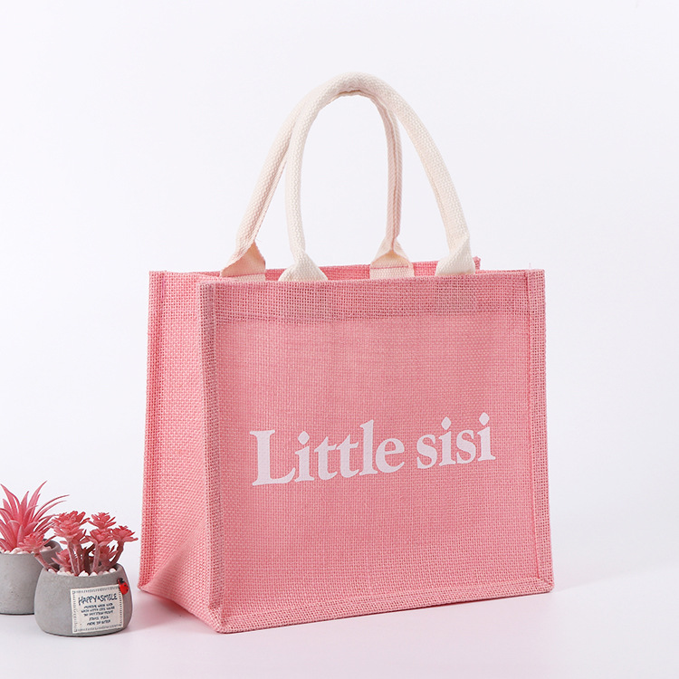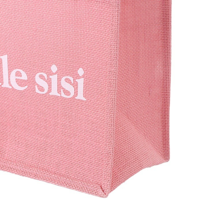 时尚粉色麻布手提袋黄麻麻布包服装购物袋伴手礼手提袋可印logo