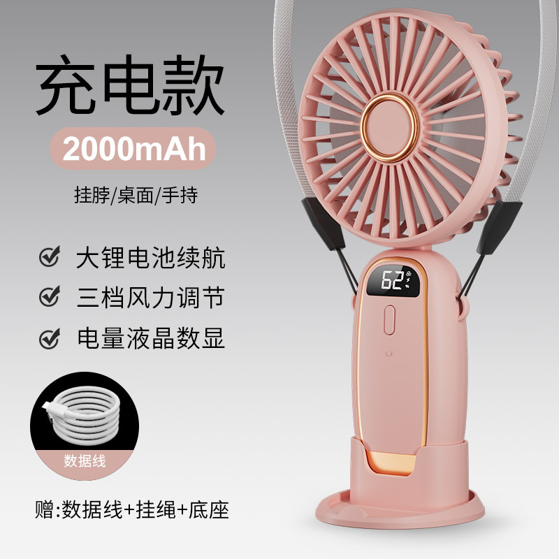 新款循环风扇家用户外露营便携式充电手持小风扇灯光桌面风扇跨境