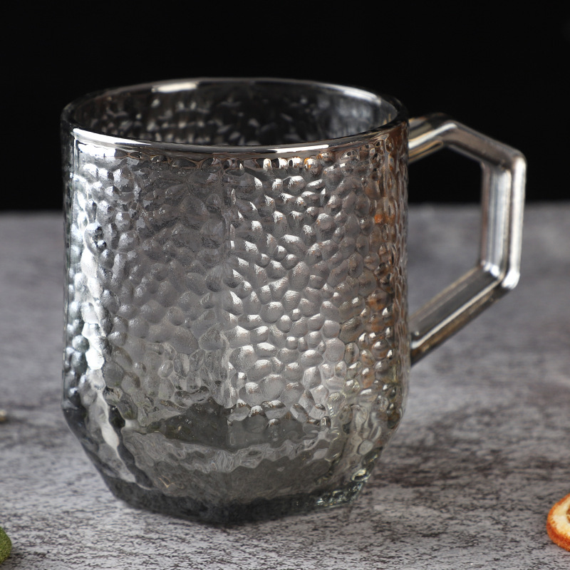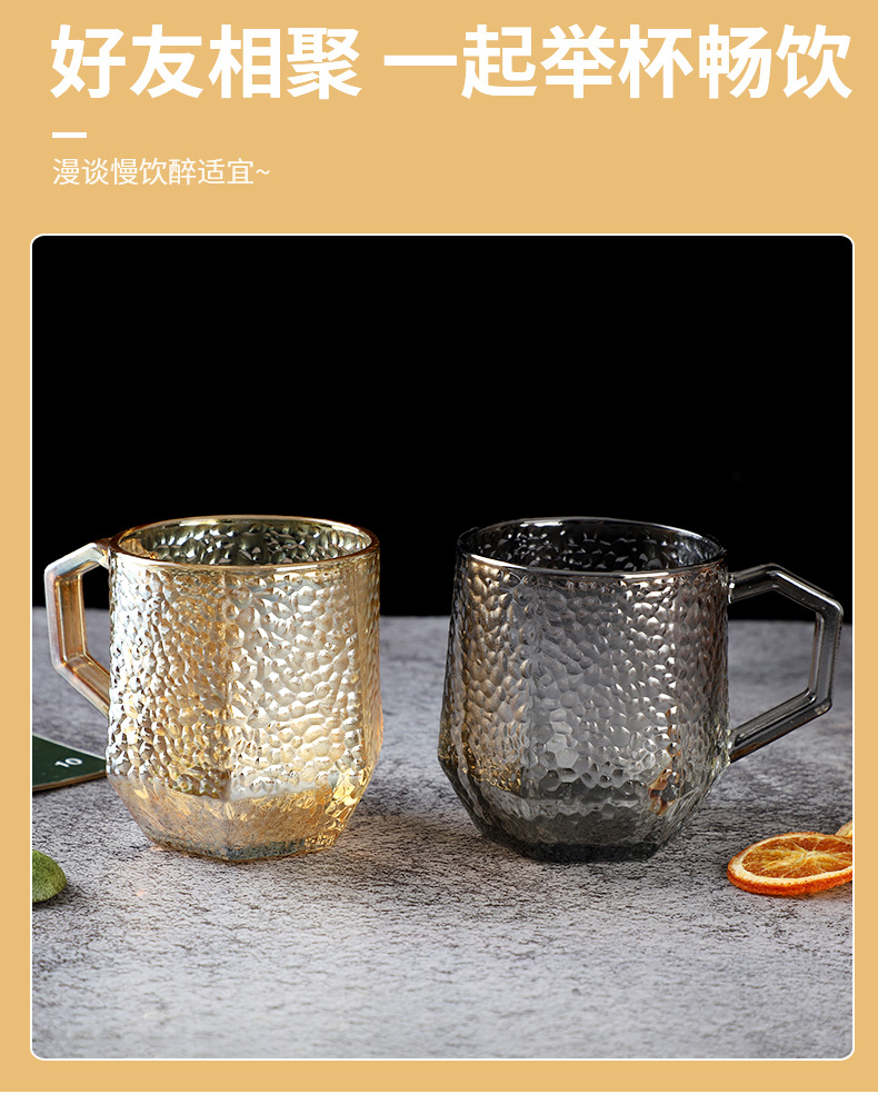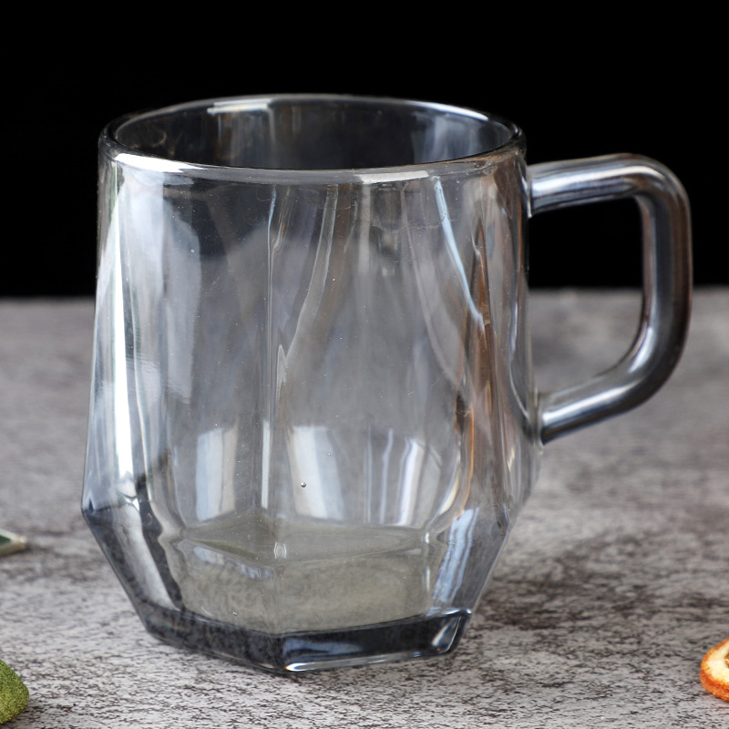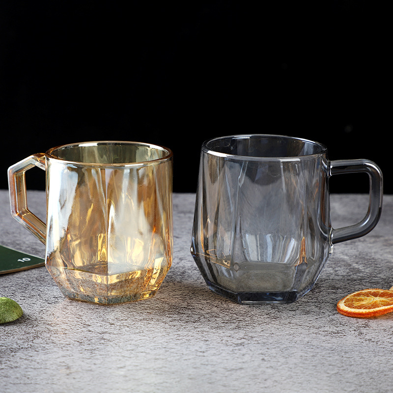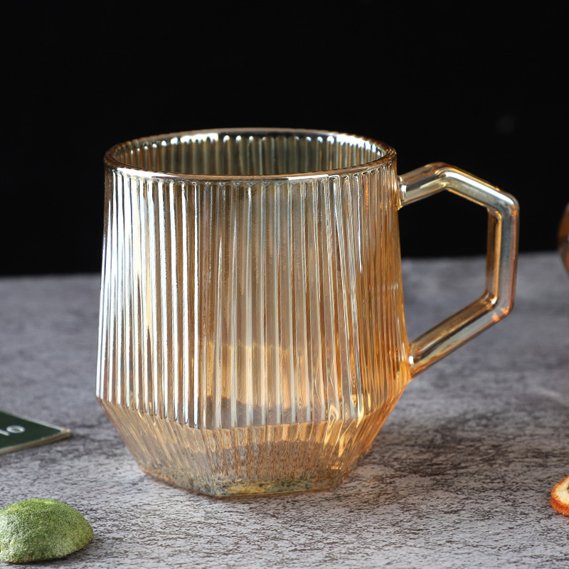 六角把玻璃杯外贸批发轻奢六角杯纹理玻璃杯 居家套装六角把杯