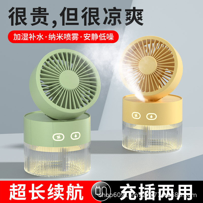 电动迷你桌面小风扇加水喷雾降温USB充电大风力续航加大加湿补水