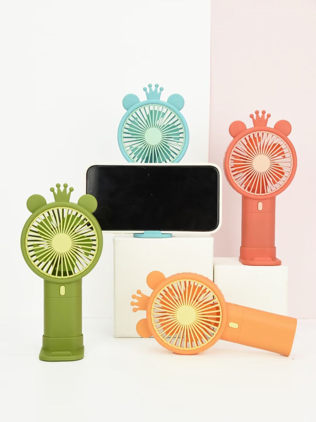 新品 皇冠卡通风扇手持便携式充电户外活动便携USB充电风扇订logo
