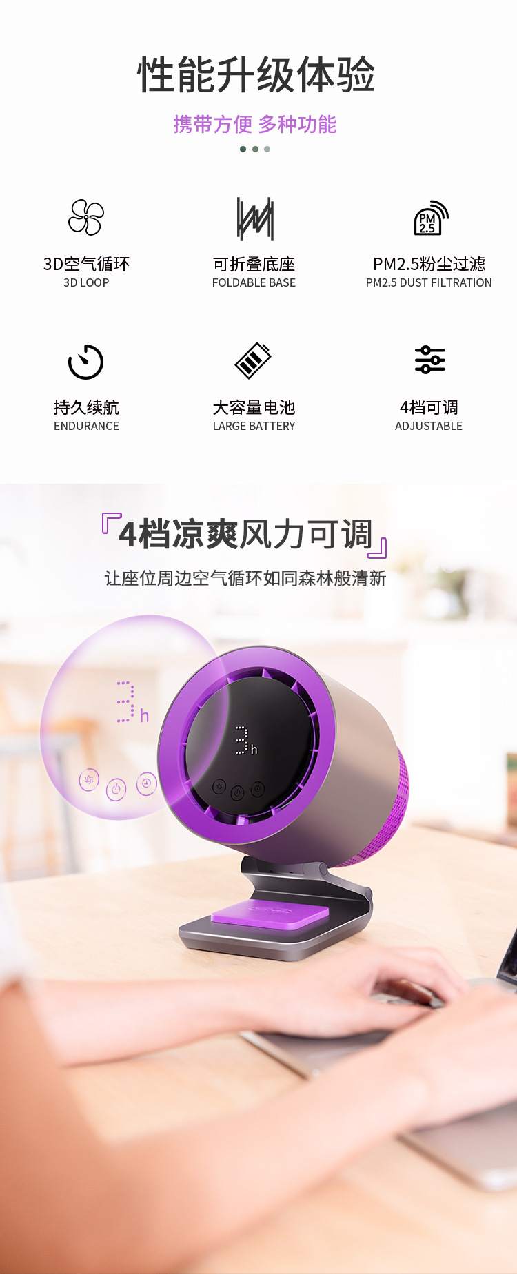 桌面风扇空气净化折叠2024新款跨境台式数显冷风机无叶迷你小风扇