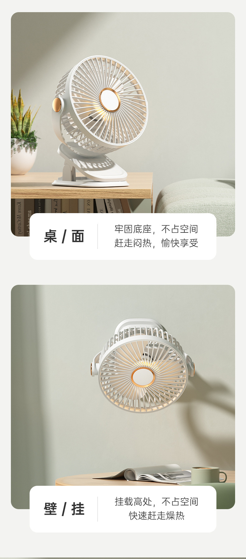 2024新款灯光夹扇多功能可夹可立桌面风扇USB户外办公小型电风扇