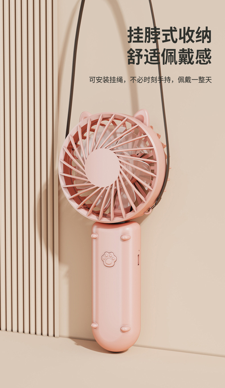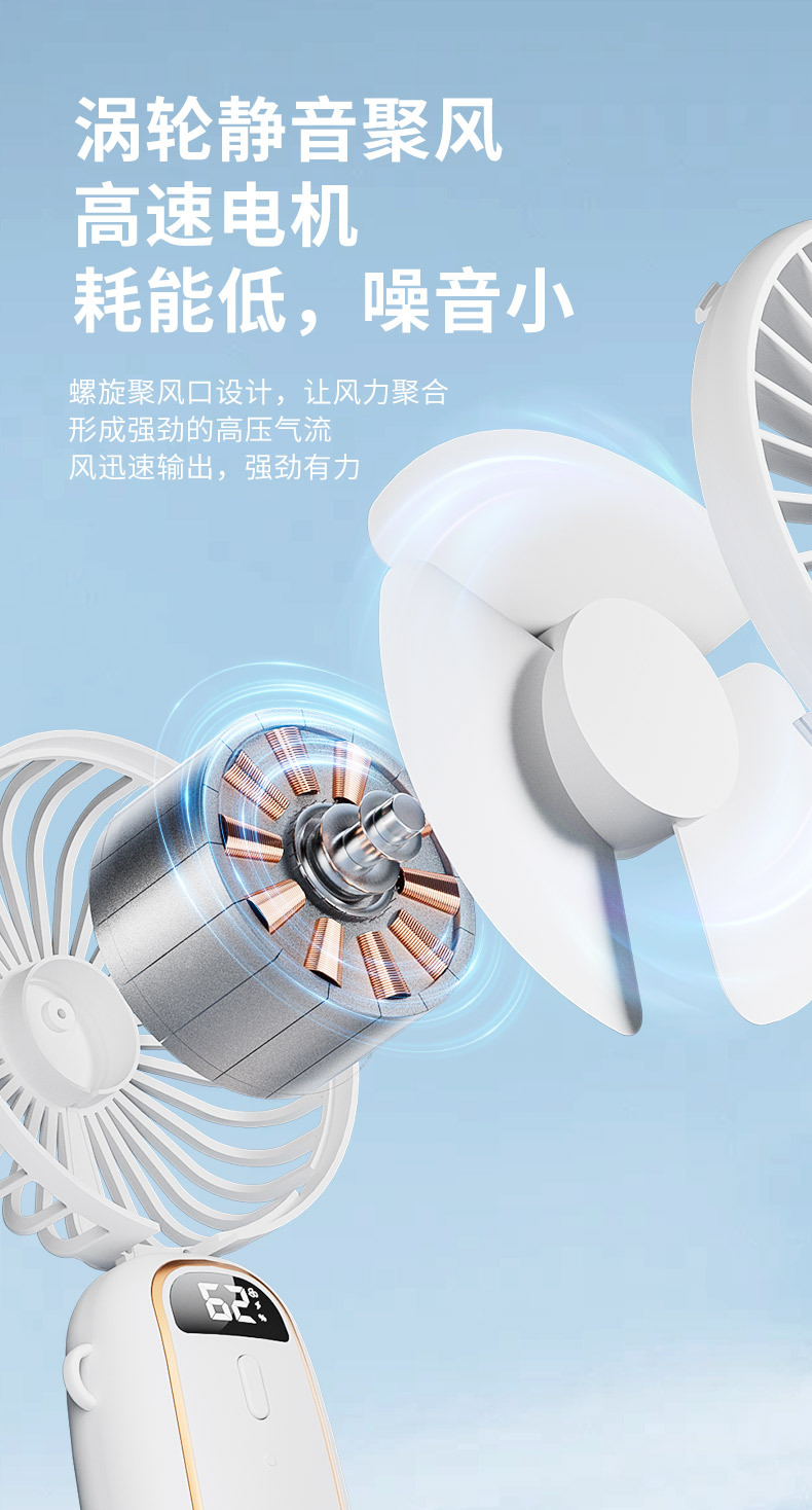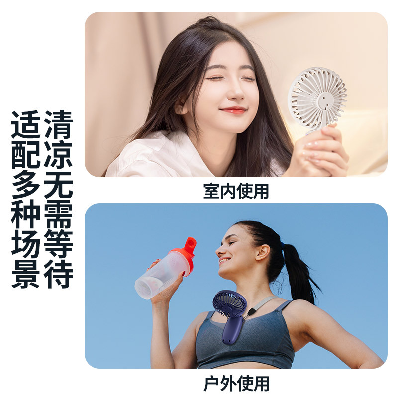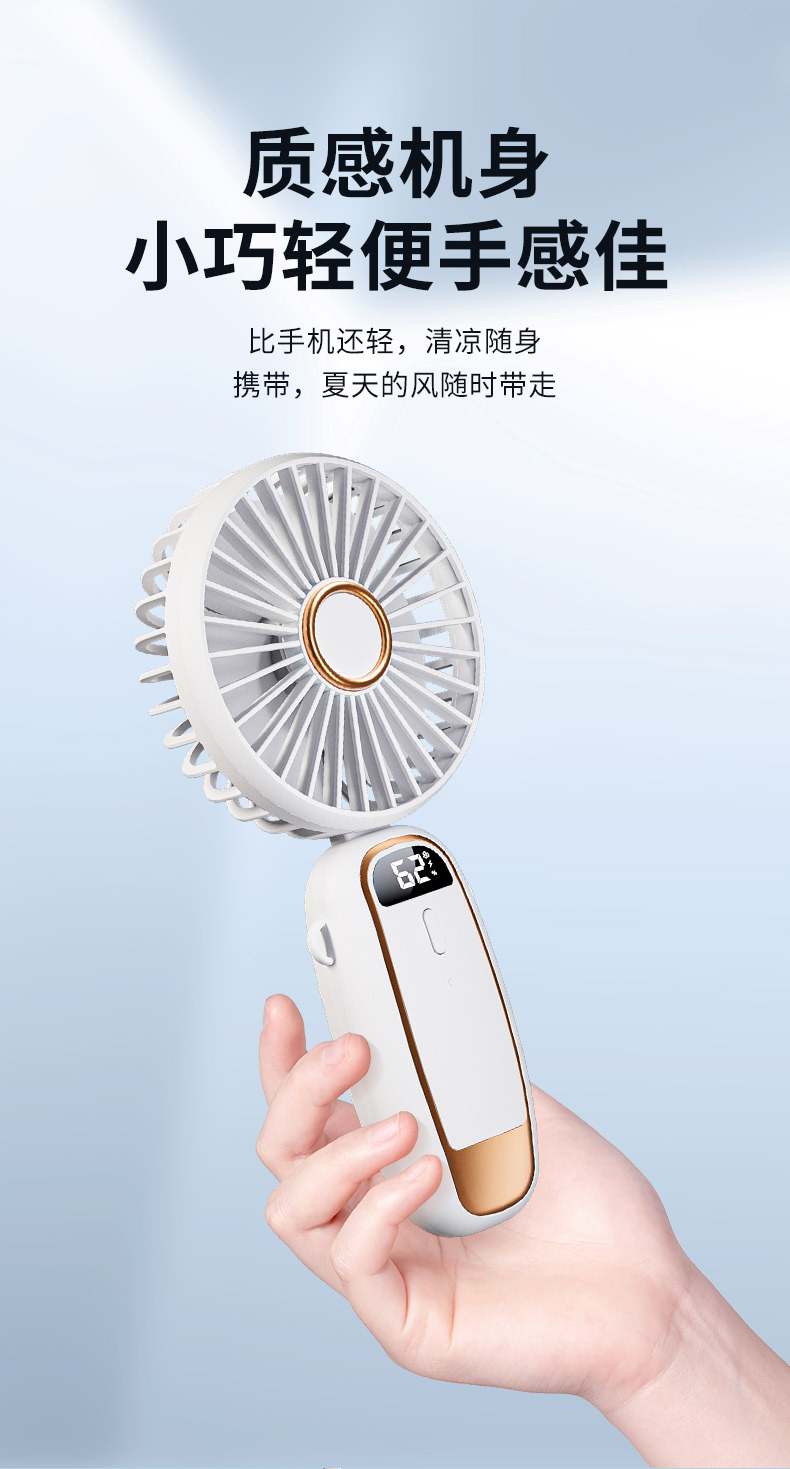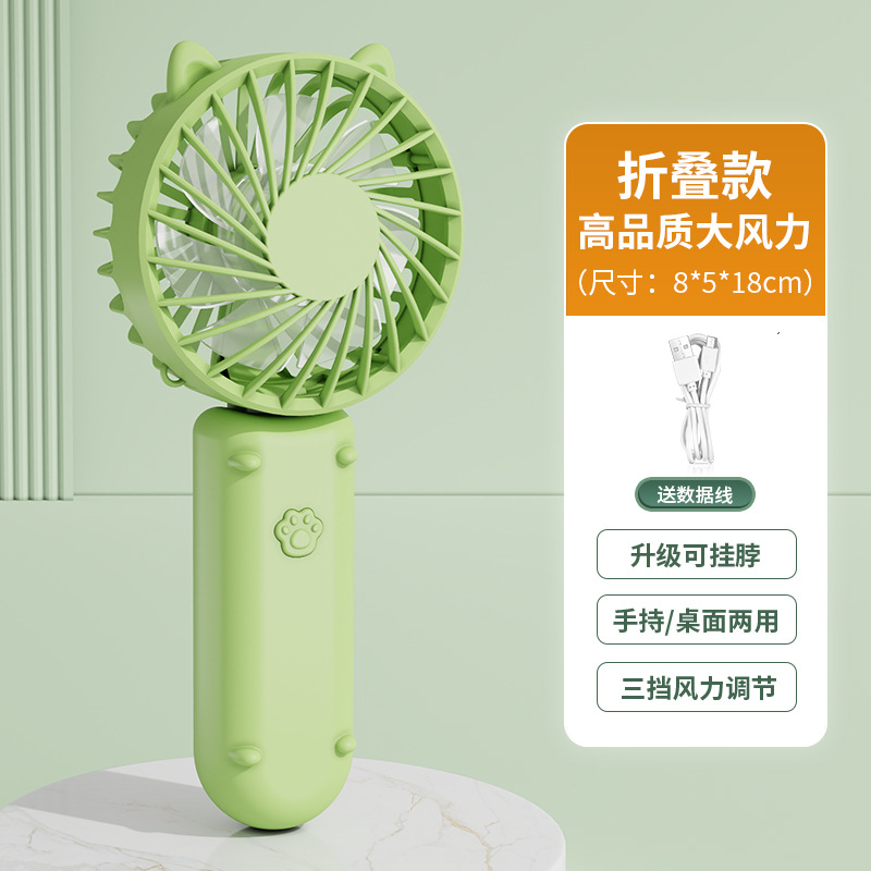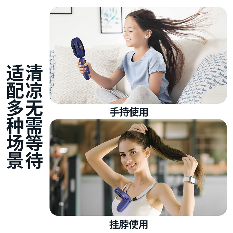 2024垮境USB迷你手持折叠风扇多功能便携5档劲风学生办公挂脖风扇