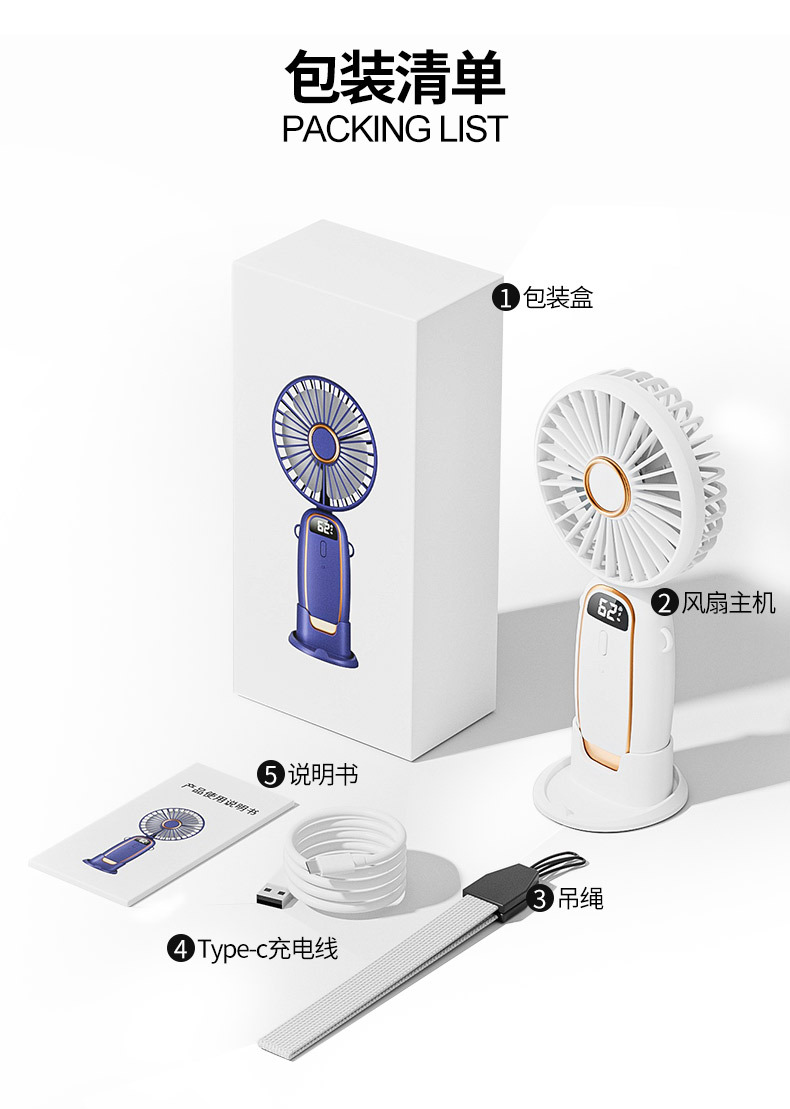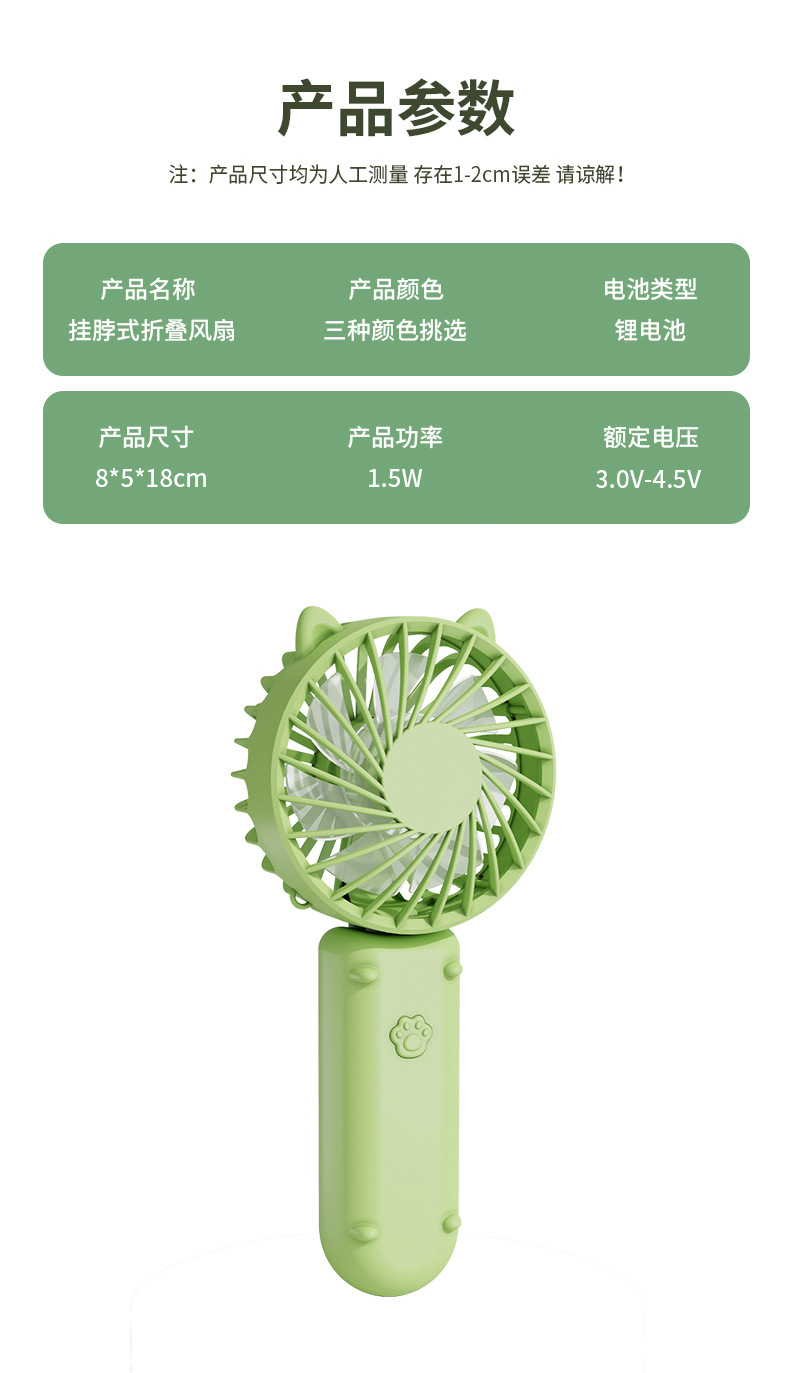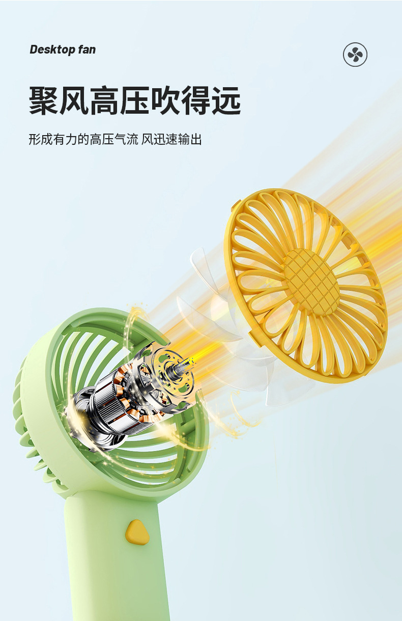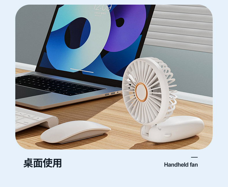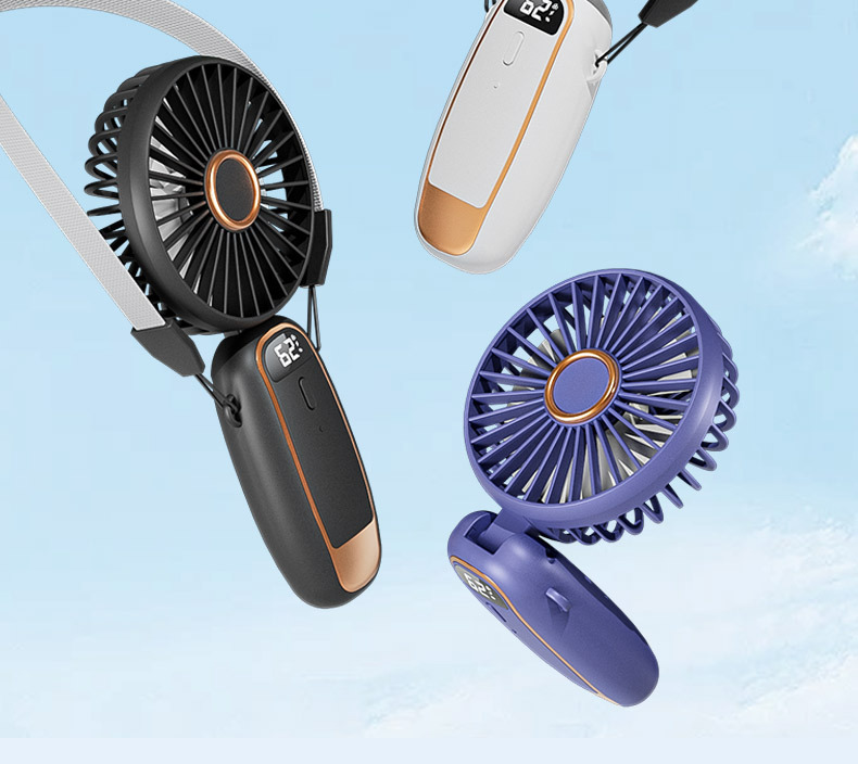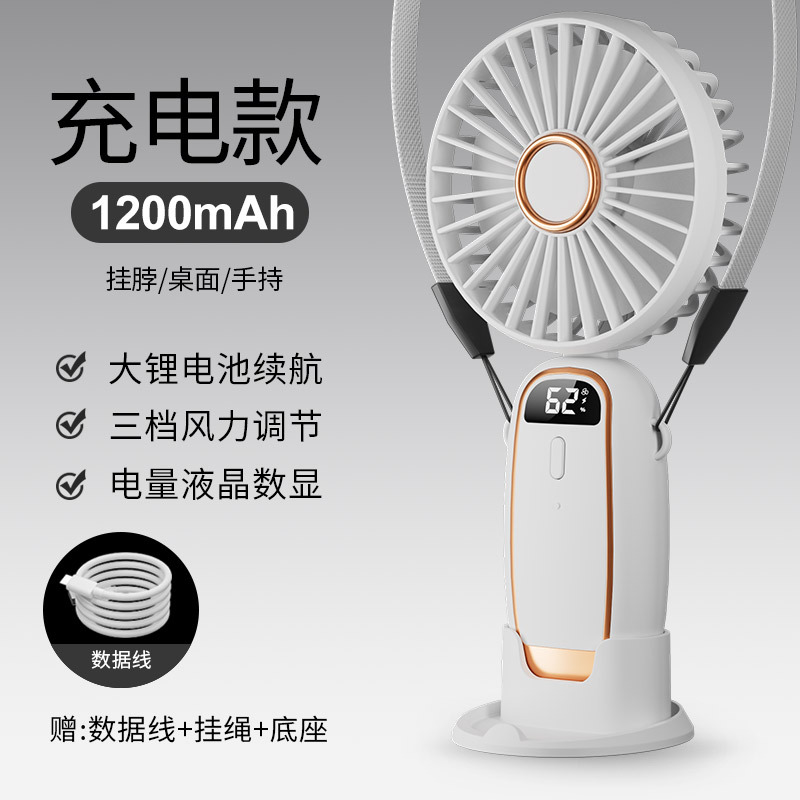 2024垮境USB迷你手持折叠风扇多功能便携5档劲风学生办公挂脖风扇