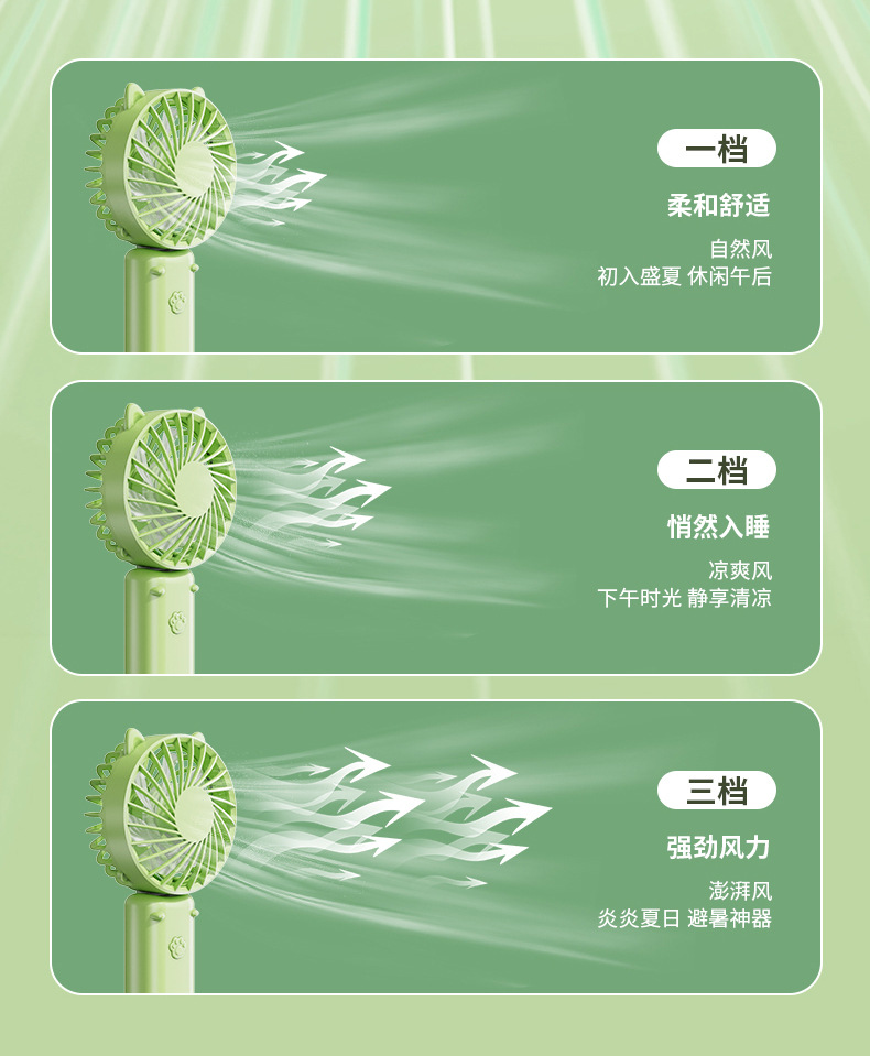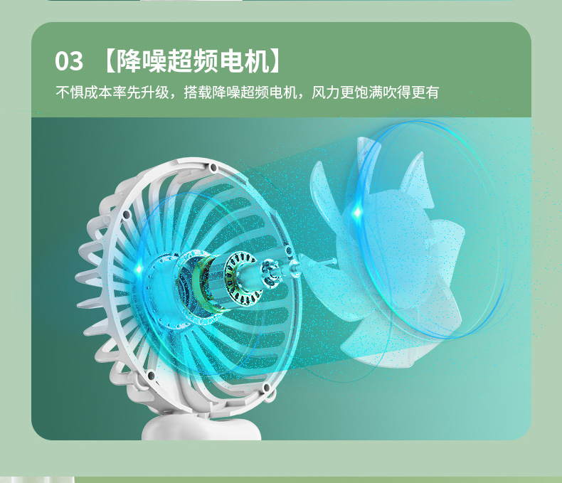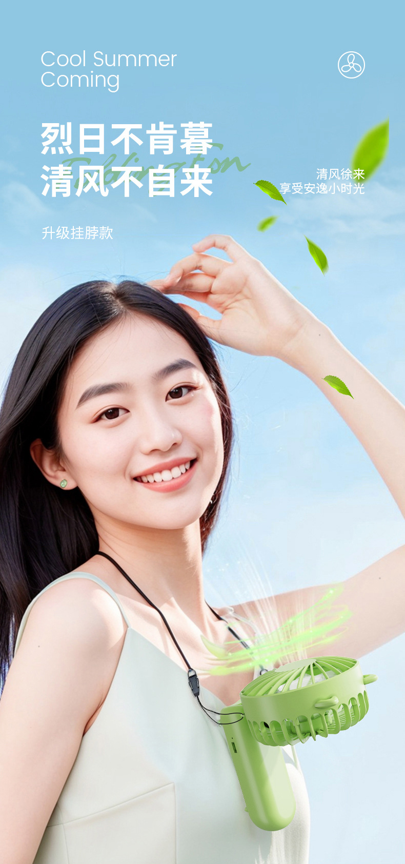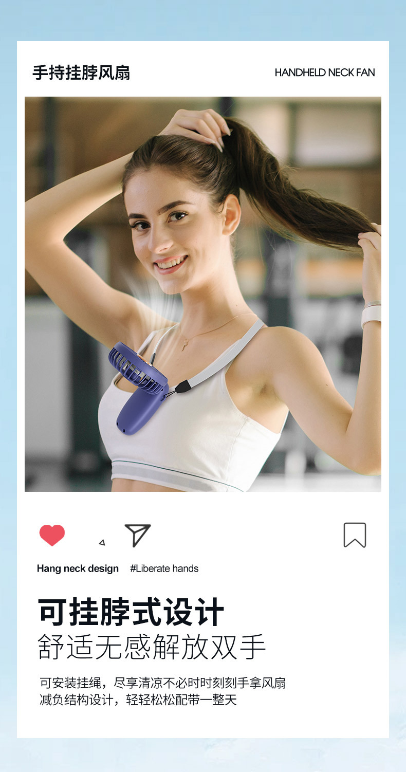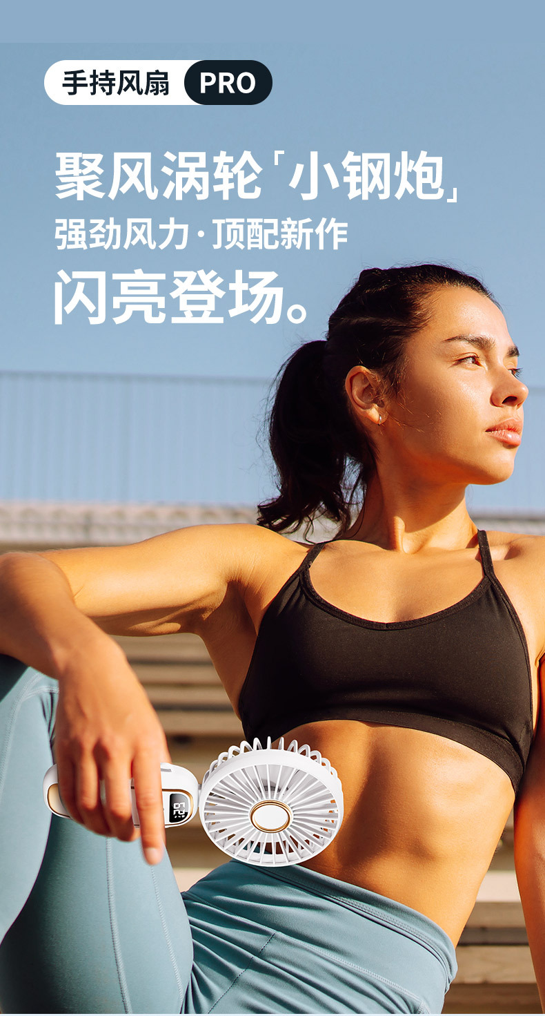 2024垮境USB迷你手持折叠风扇多功能便携5档劲风学生办公挂脖风扇