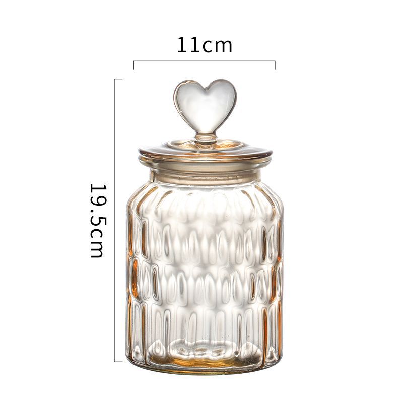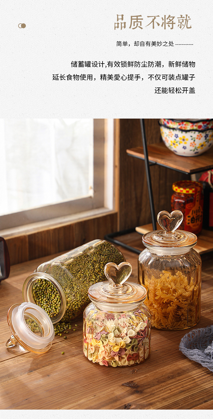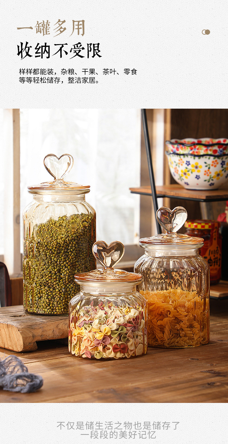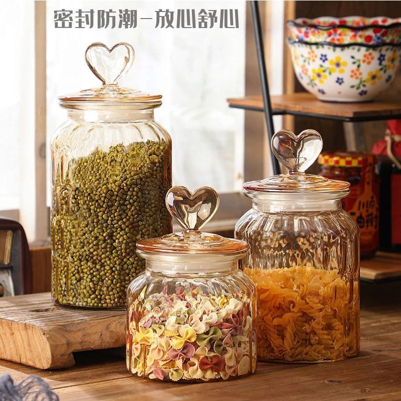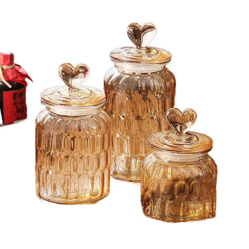 玻璃密封罐创意爱心储物罐透明琥珀色高颜值零食糖果杂粮收纳瓶子