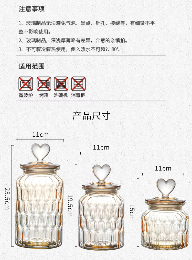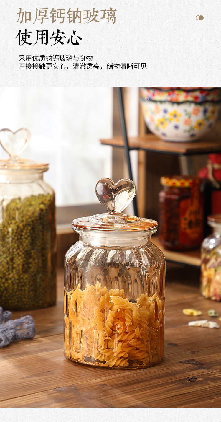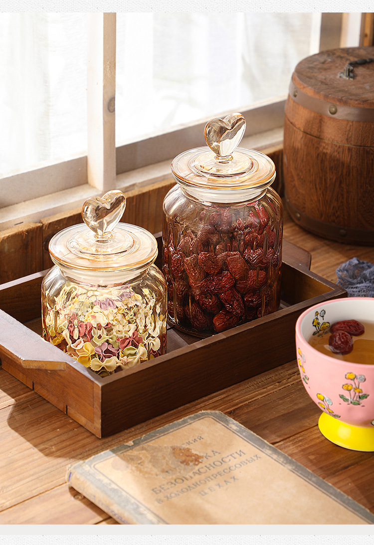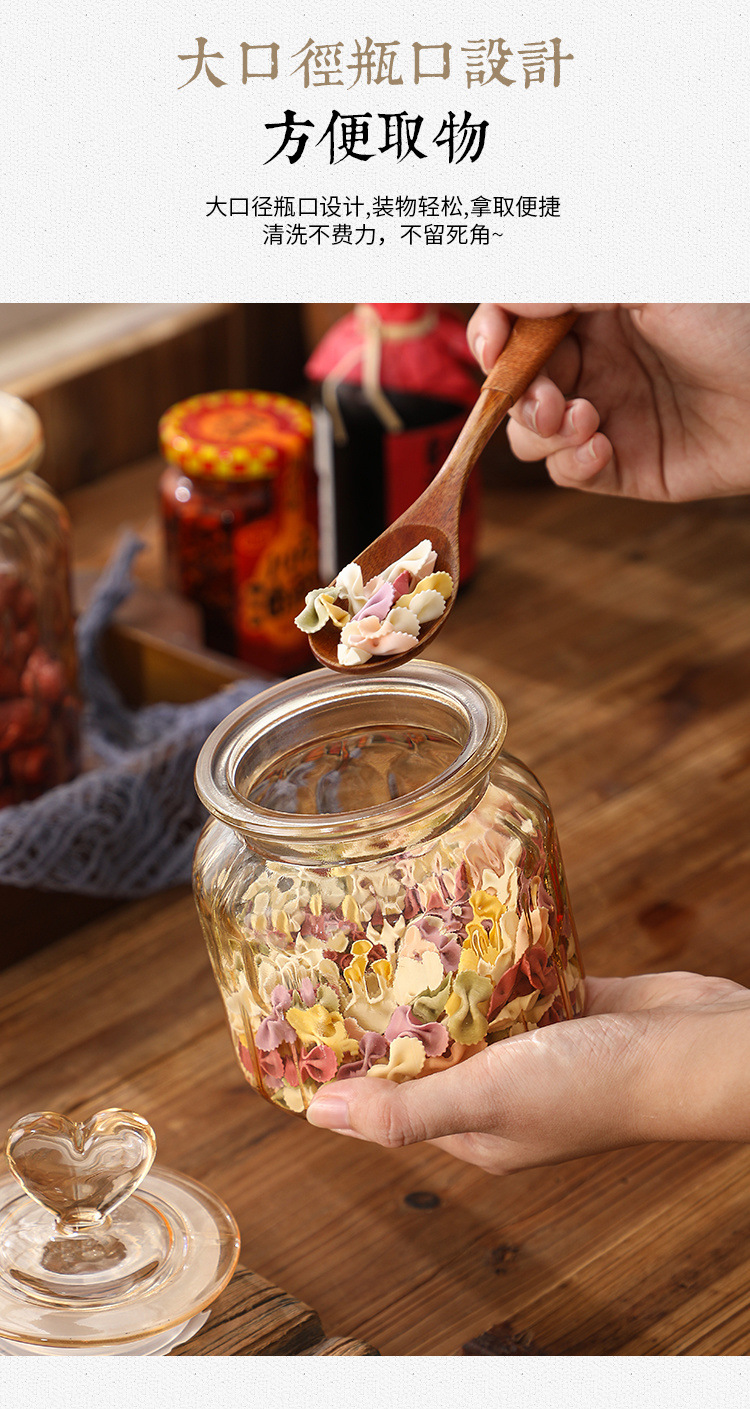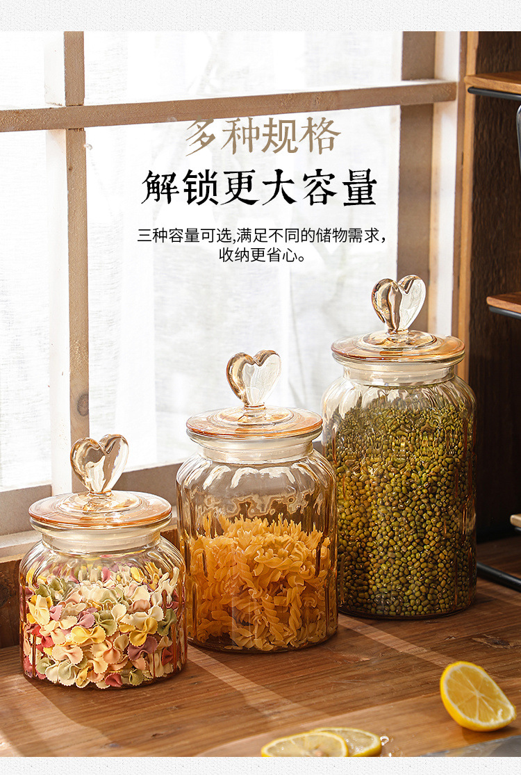 玻璃密封罐创意爱心储物罐透明琥珀色高颜值零食糖果杂粮收纳瓶子