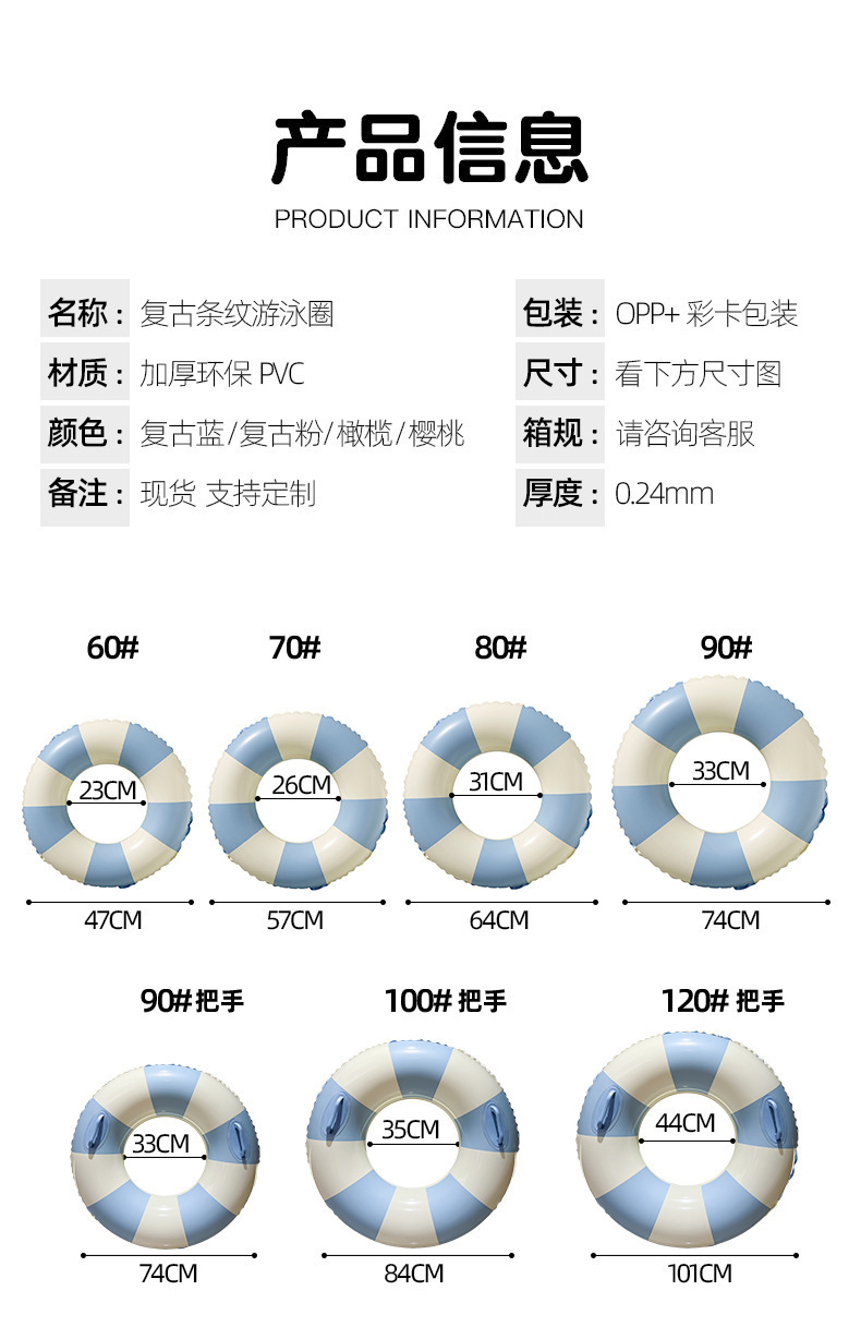 厂家网红爆款成人游泳圈ins风复古条纹腋下泳圈pvc充气游泳圈批发