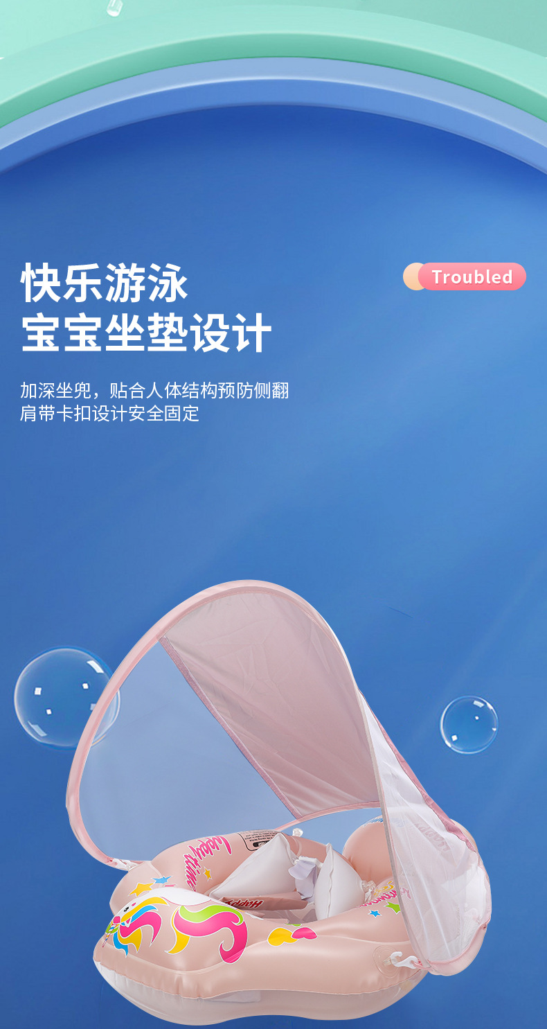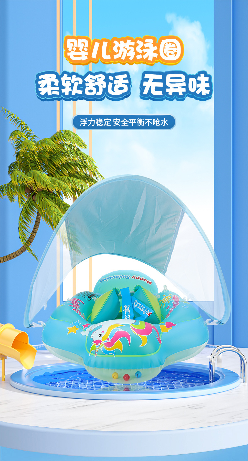 新款带顶棚婴儿趴圈儿童游泳圈加高气囊防侧翻遮阳宝宝充气座圈
