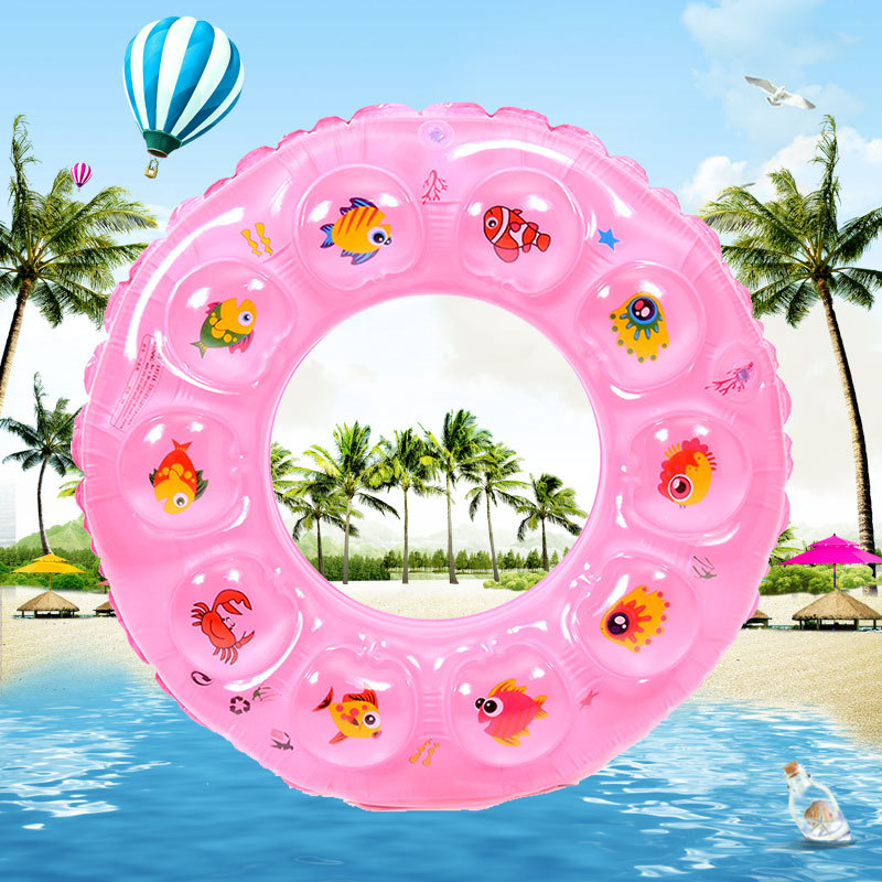pvc充气游泳圈批发成人双层水晶救生圈腋下圈卡通加厚儿童游泳圈